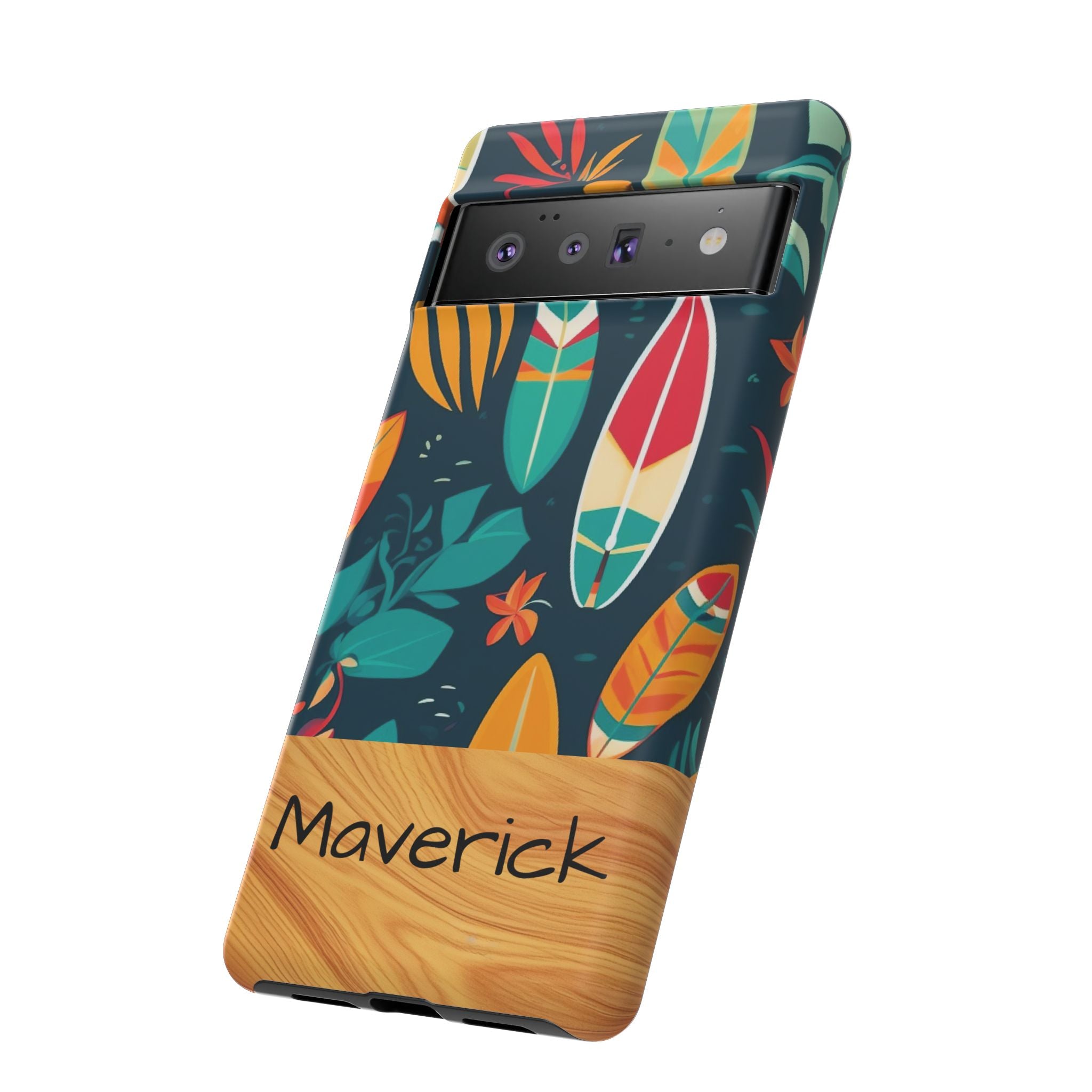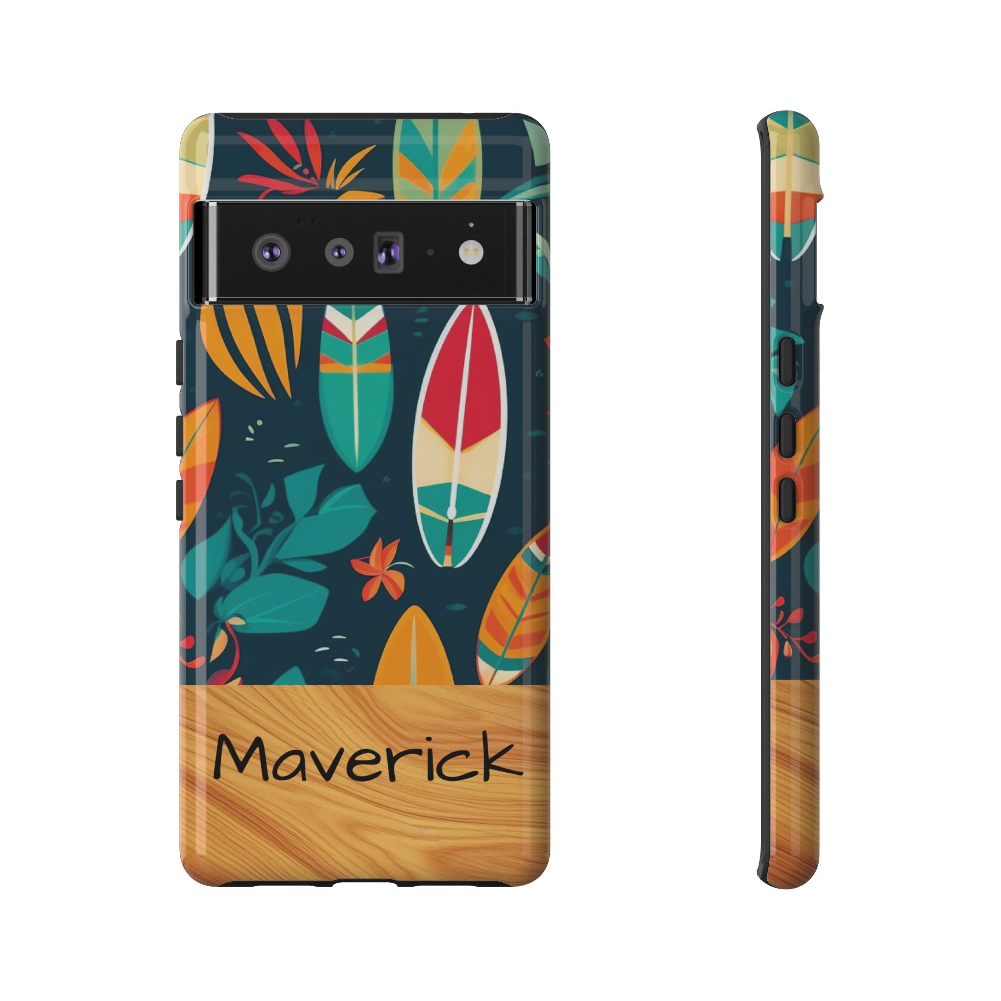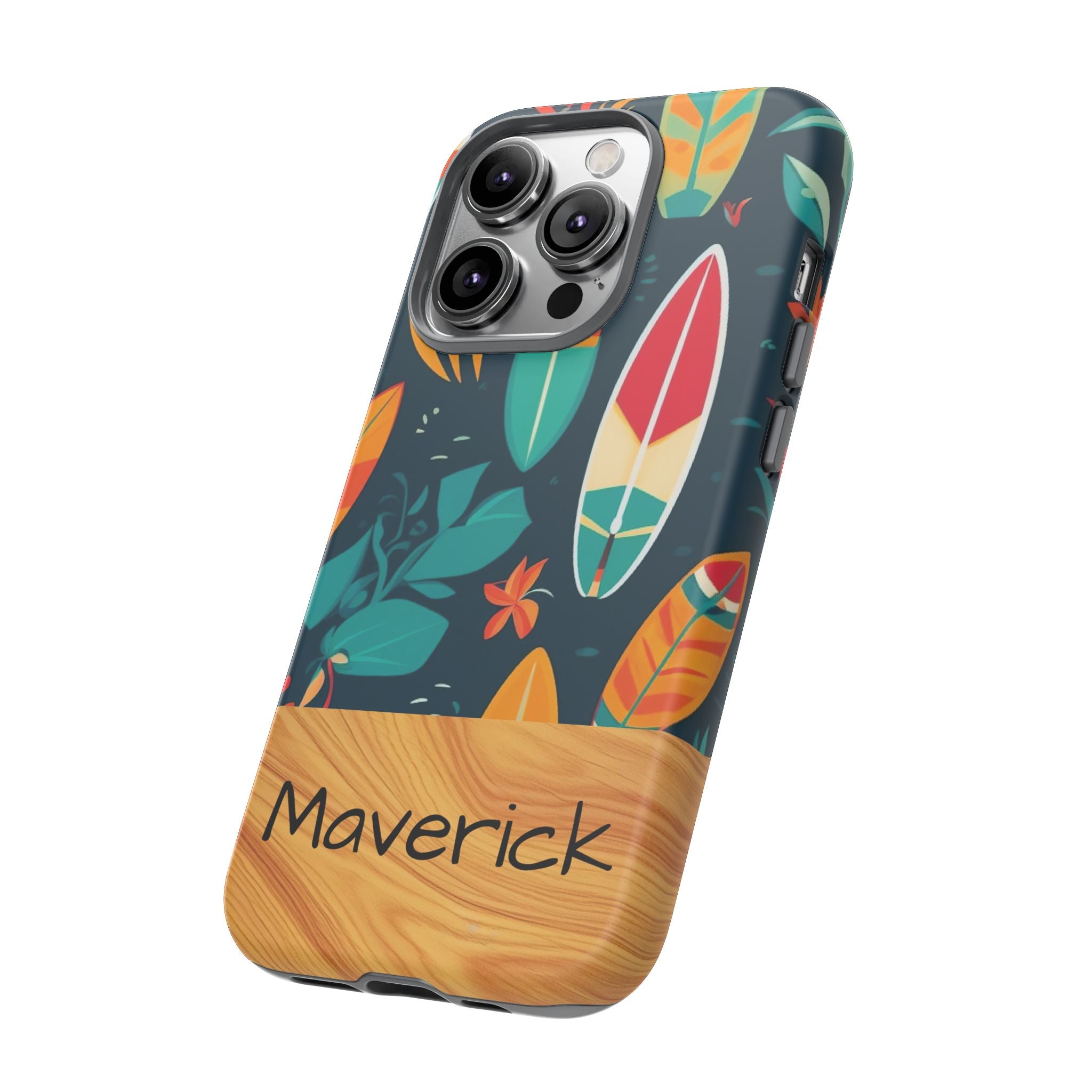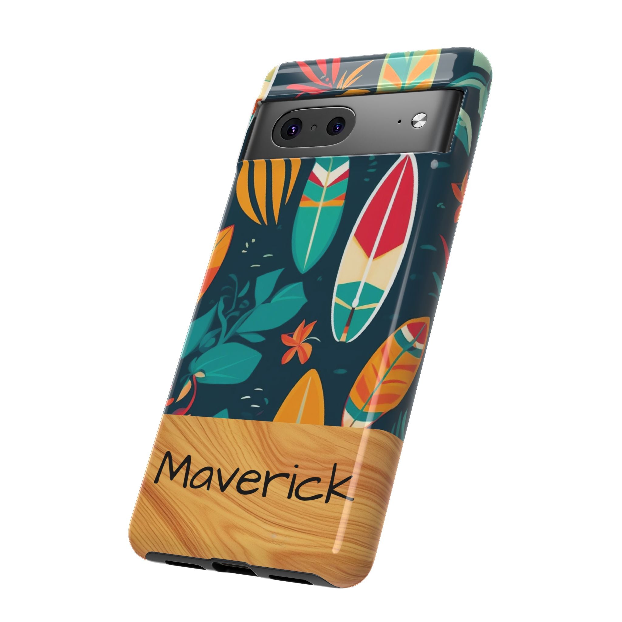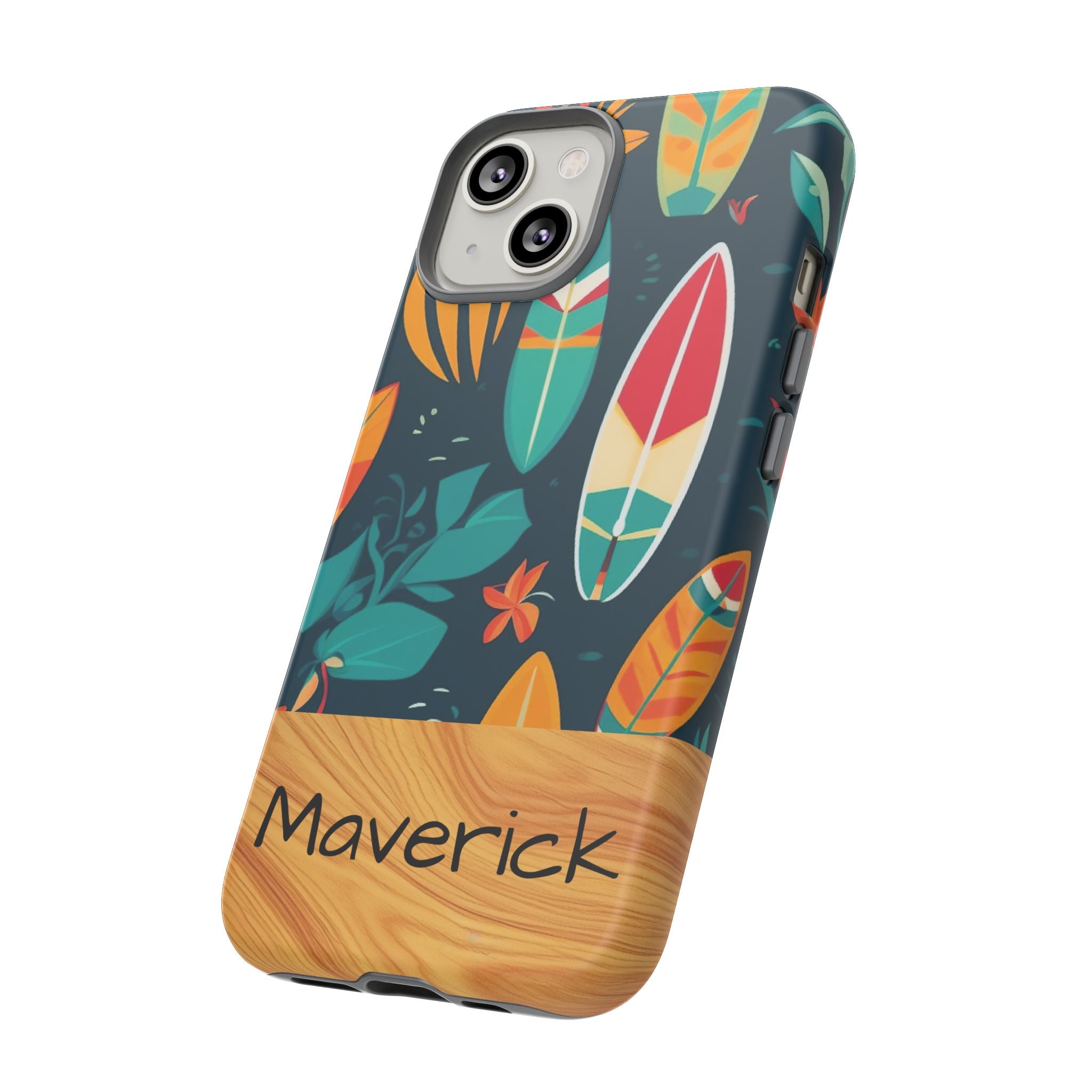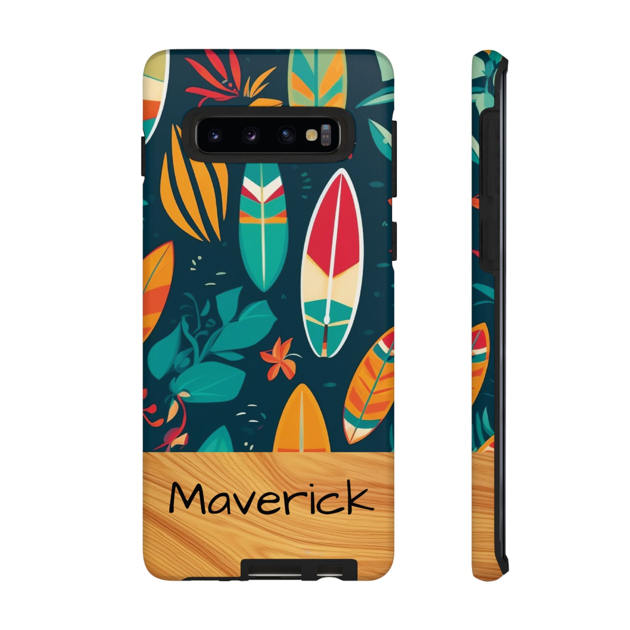 Custom Phone Tough Case Hawaii Surf Boards with Woodgrain Personalize with Name