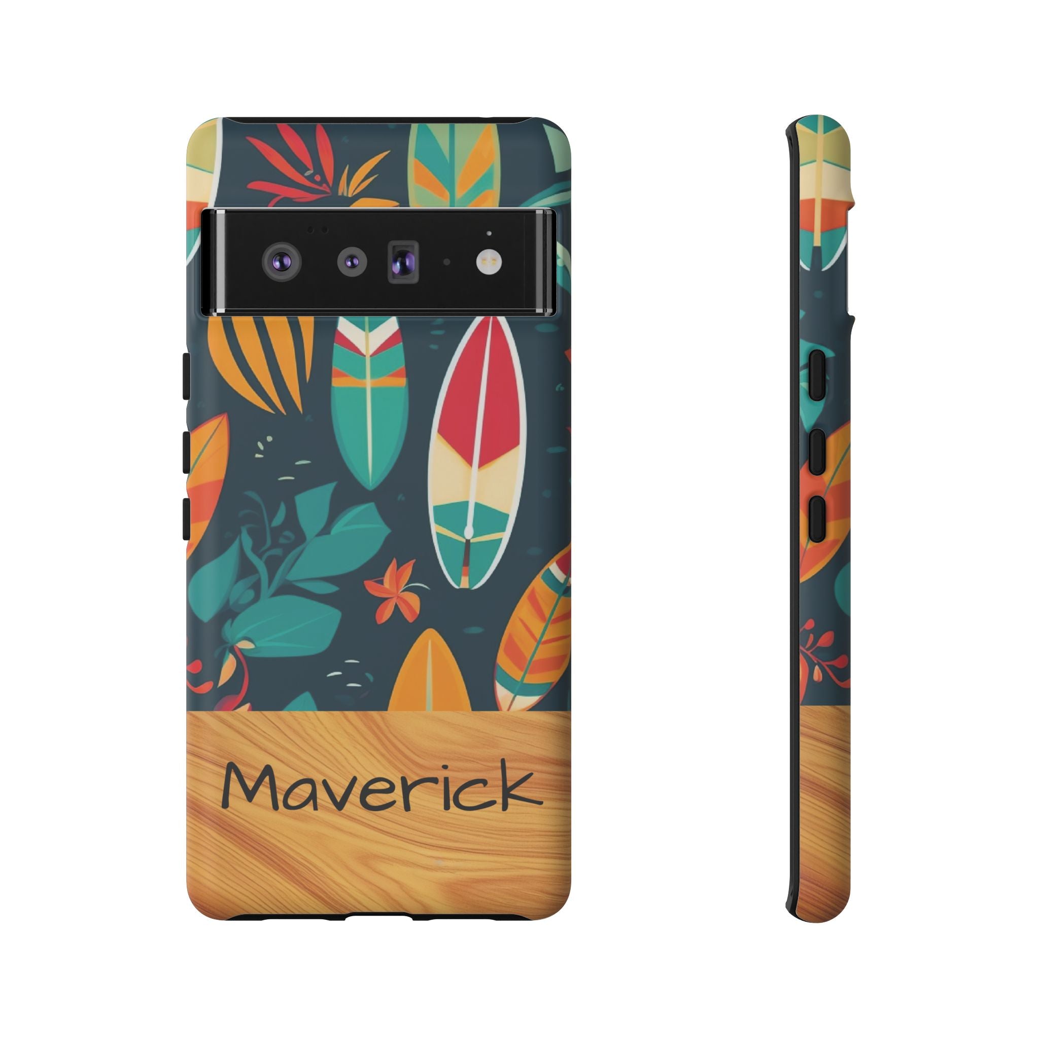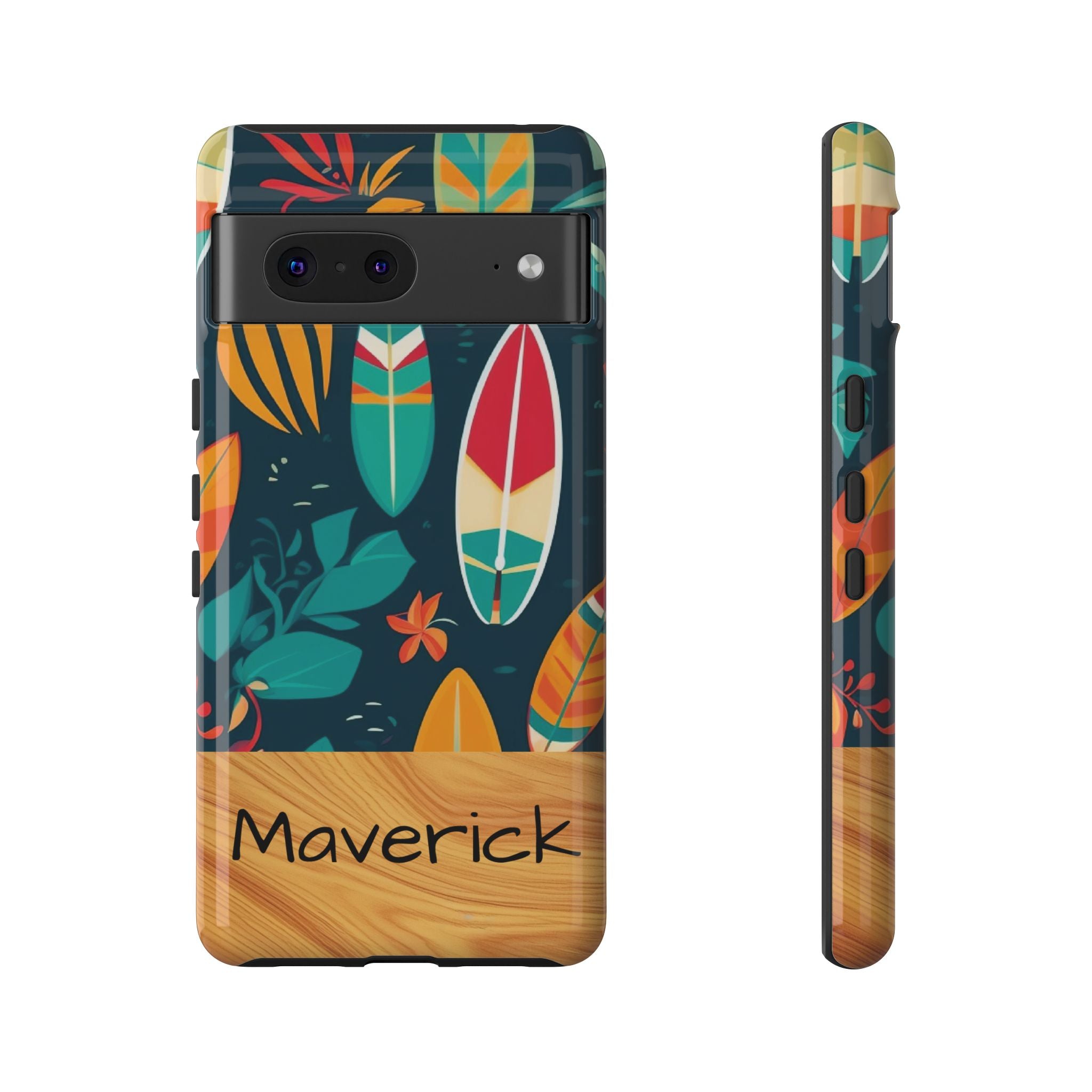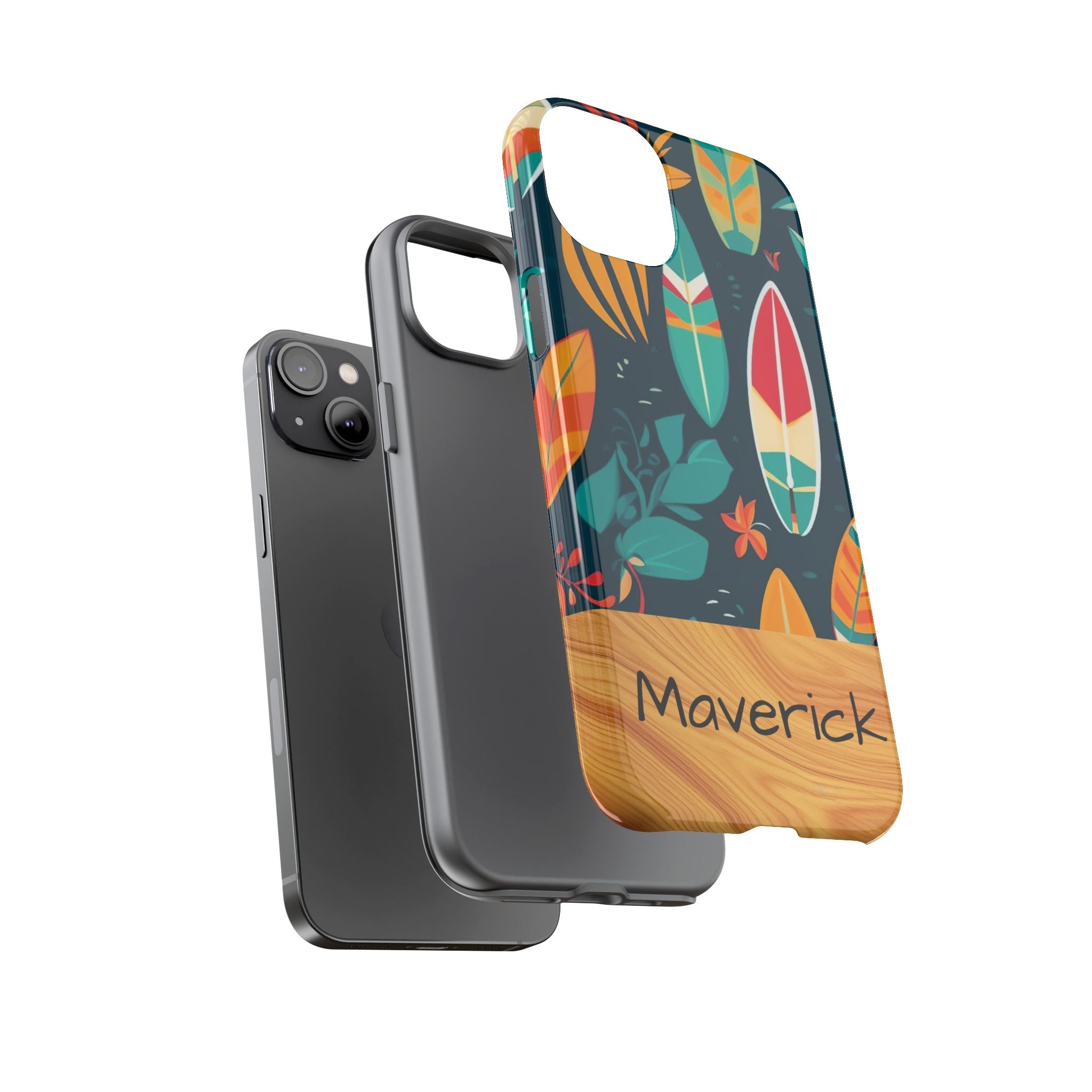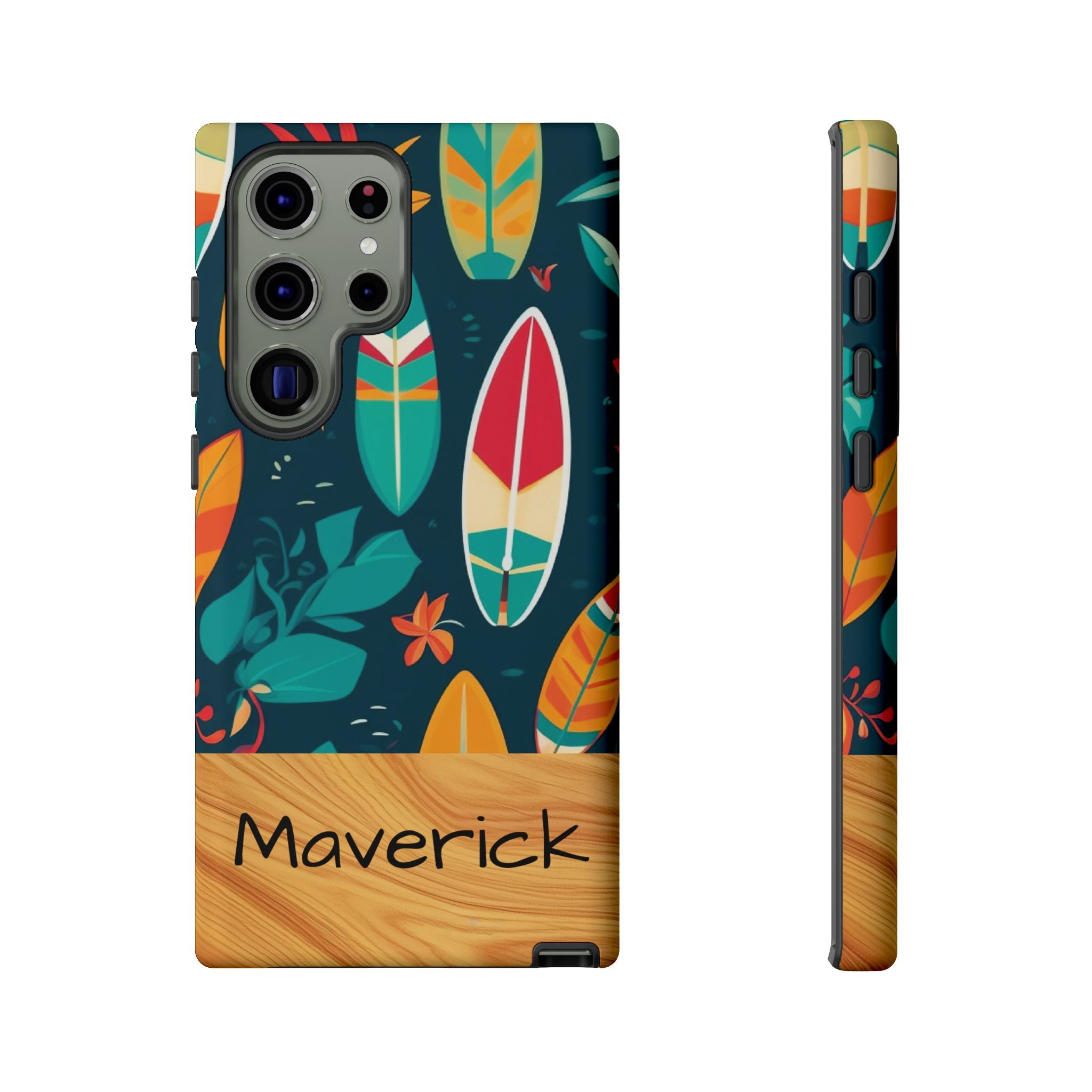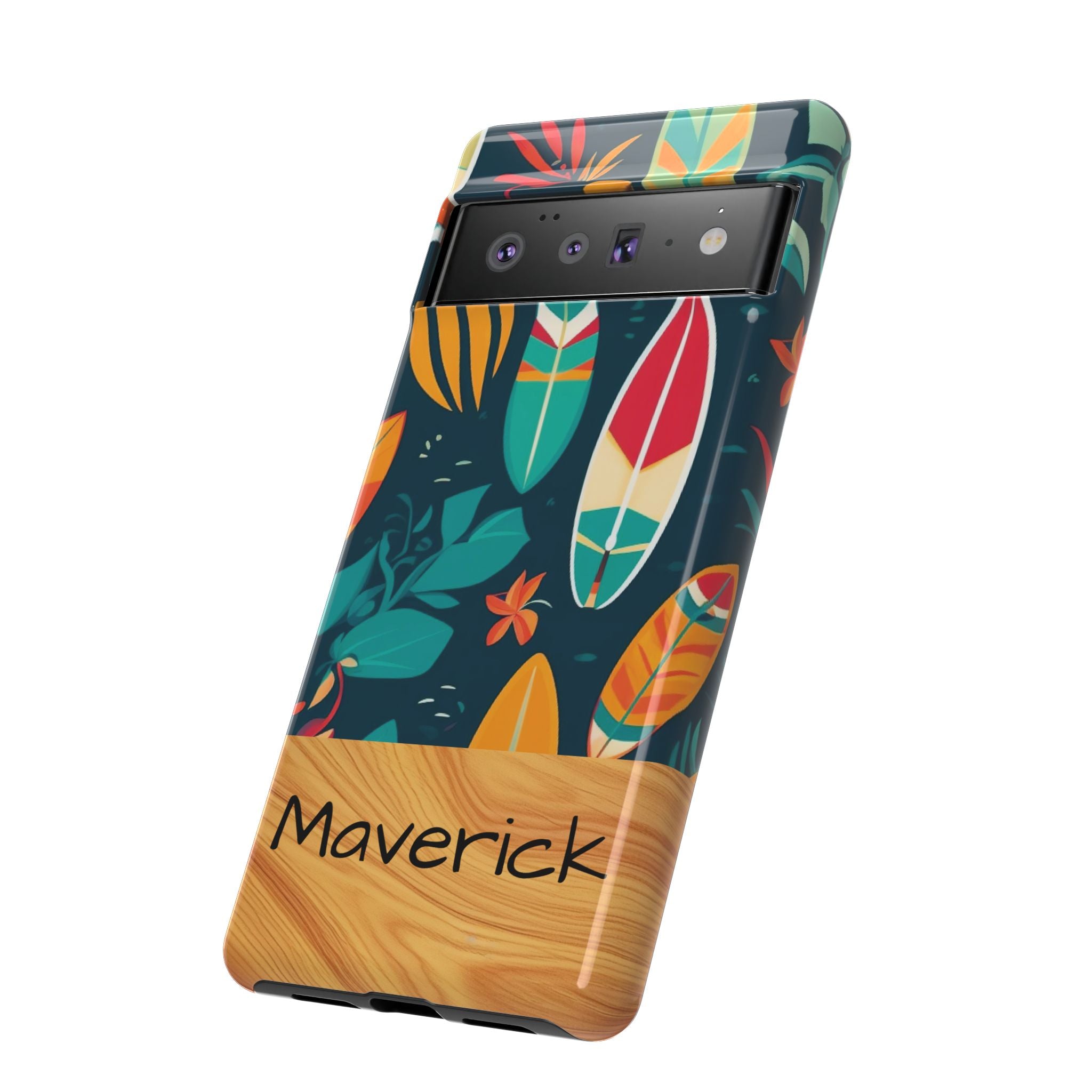 Custom Phone Tough Case Hawaii Surf Boards with Woodgrain Personalize with Name