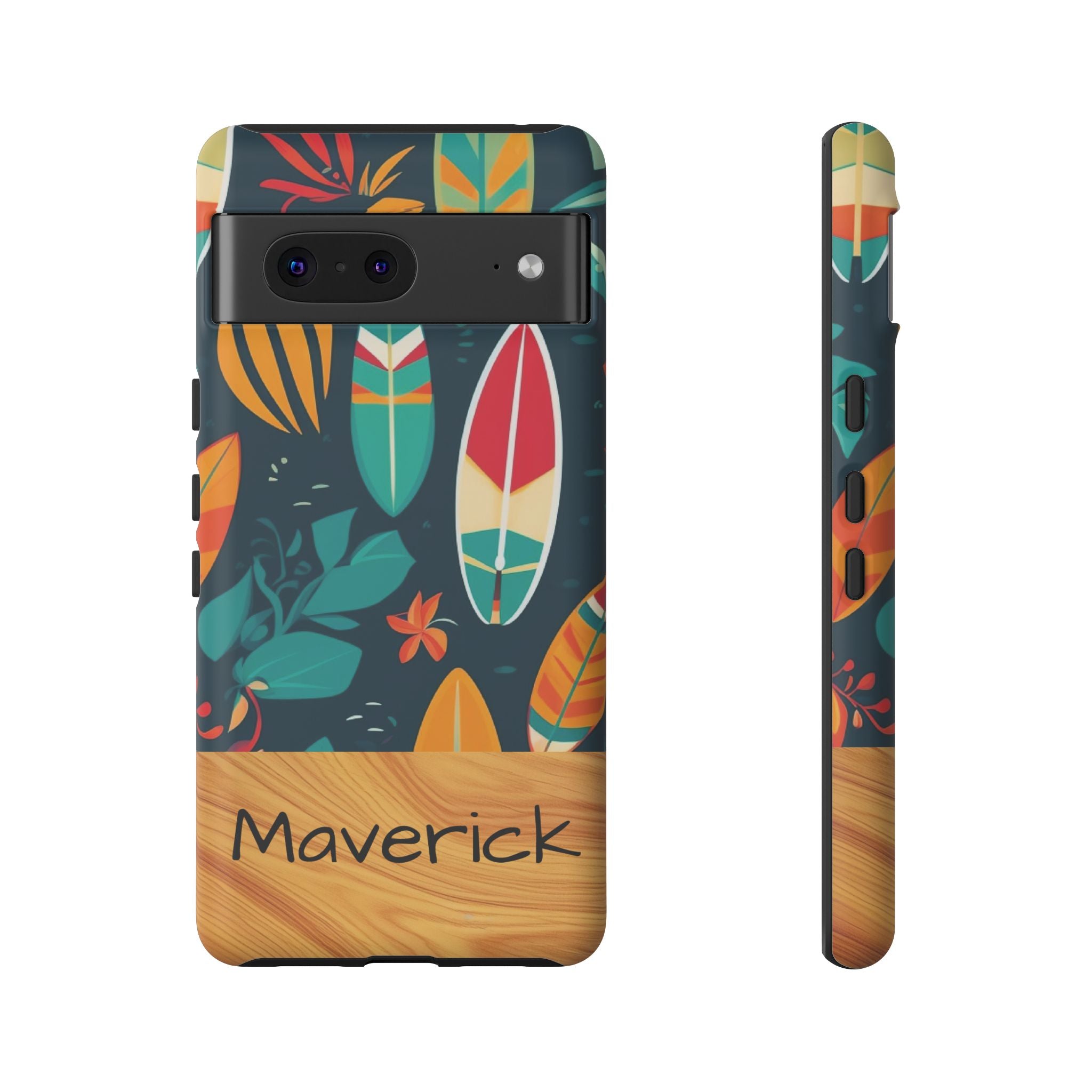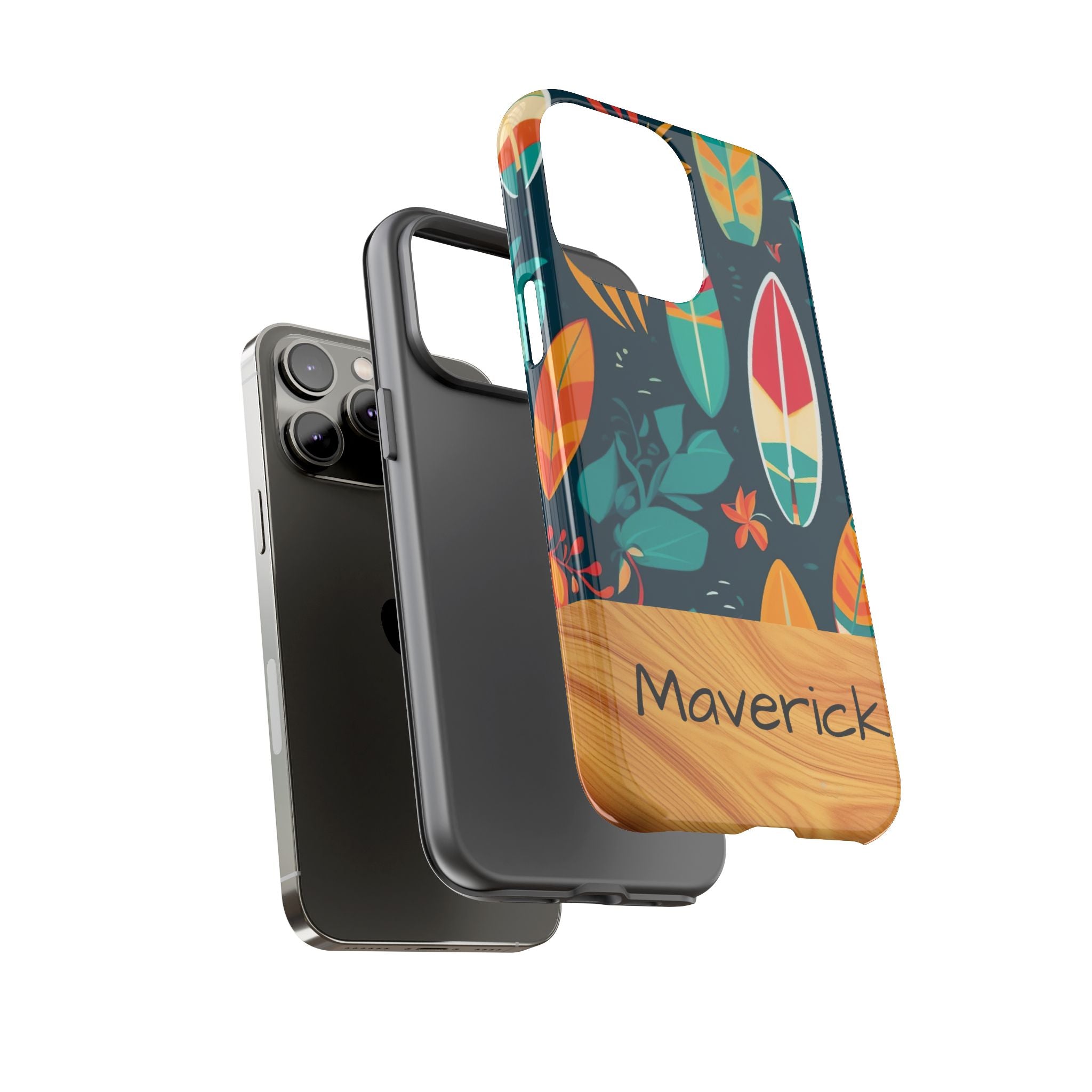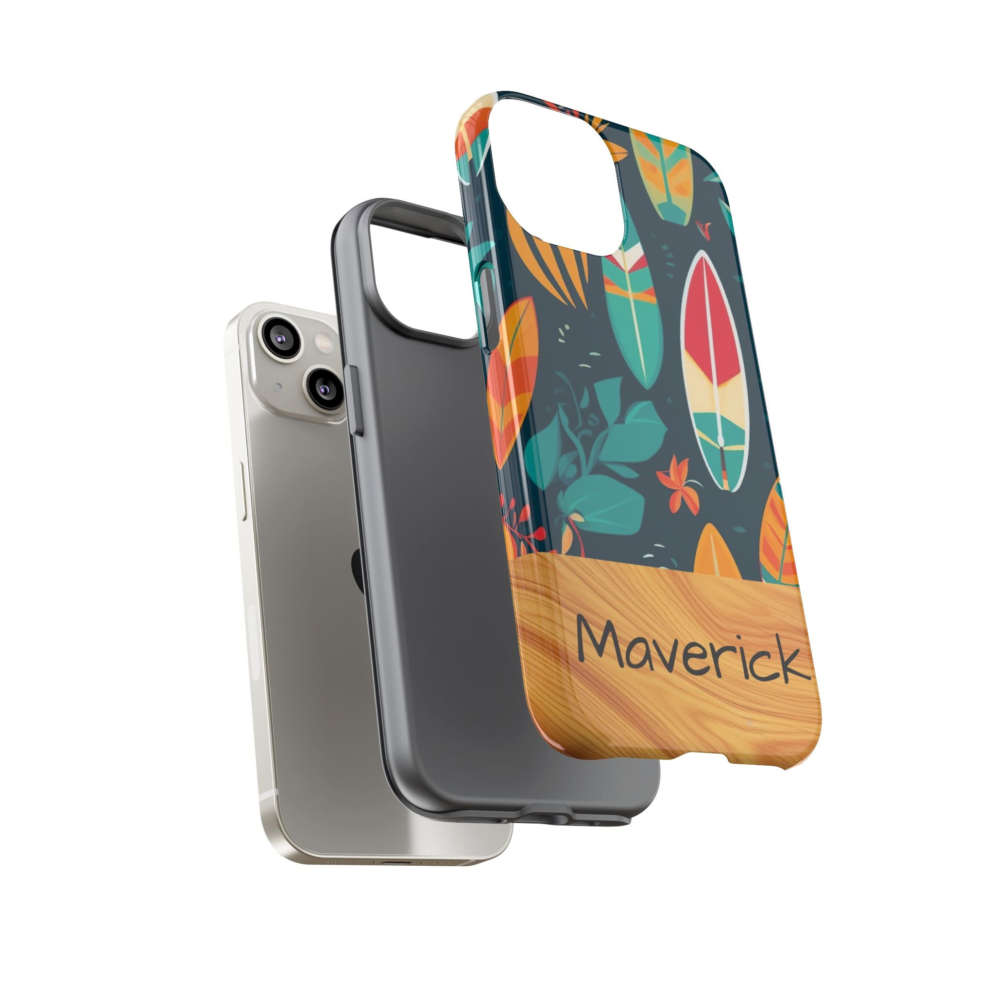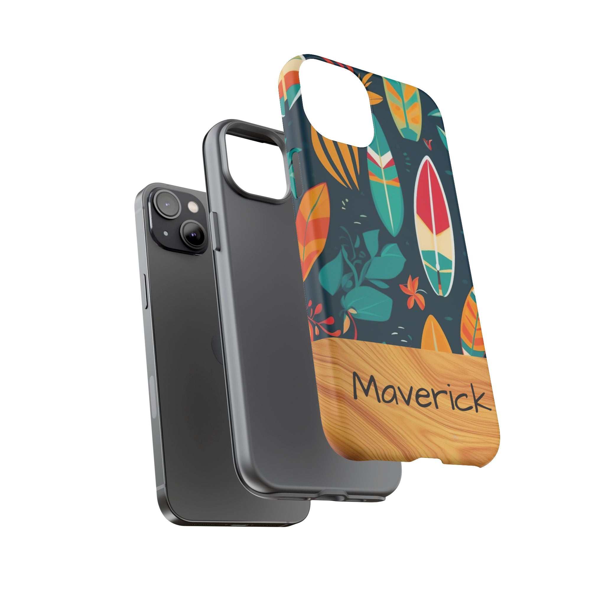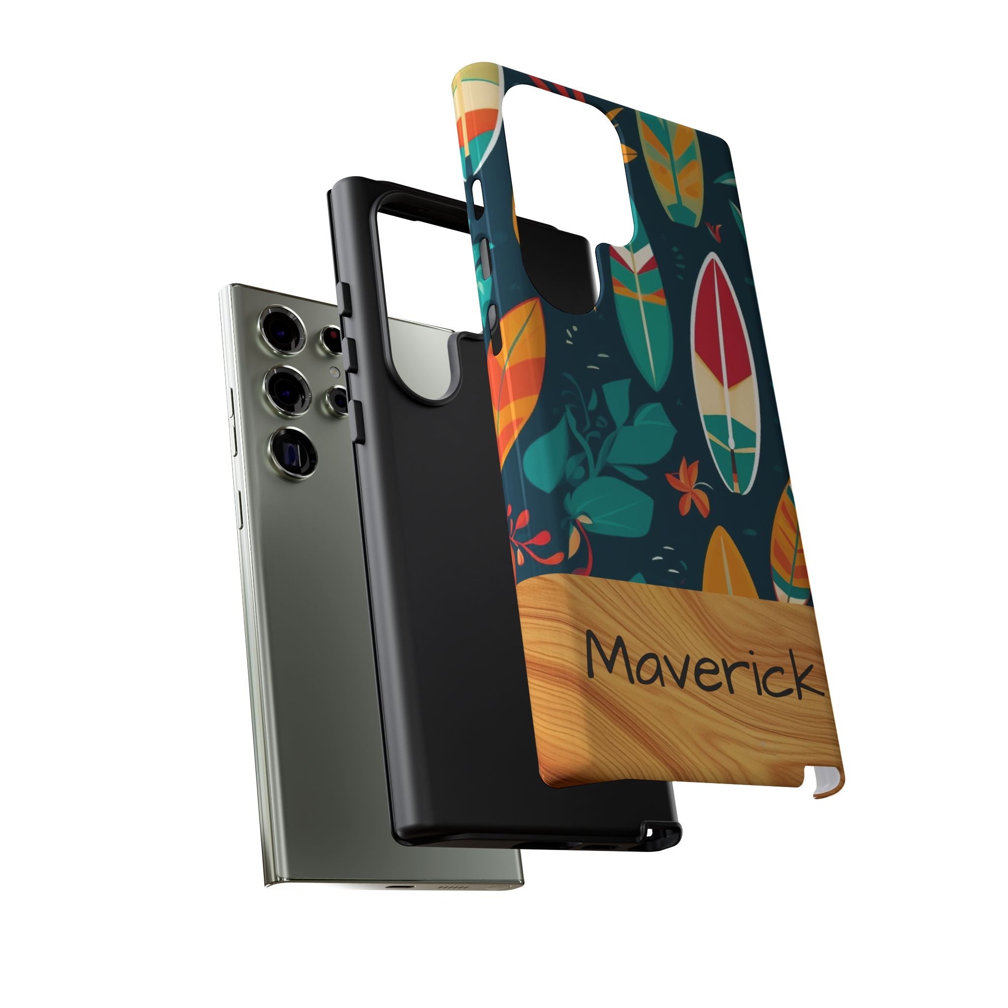Custom Phone Tough Case Hawaii Surf Boards with Woodgrain Personalize with Name