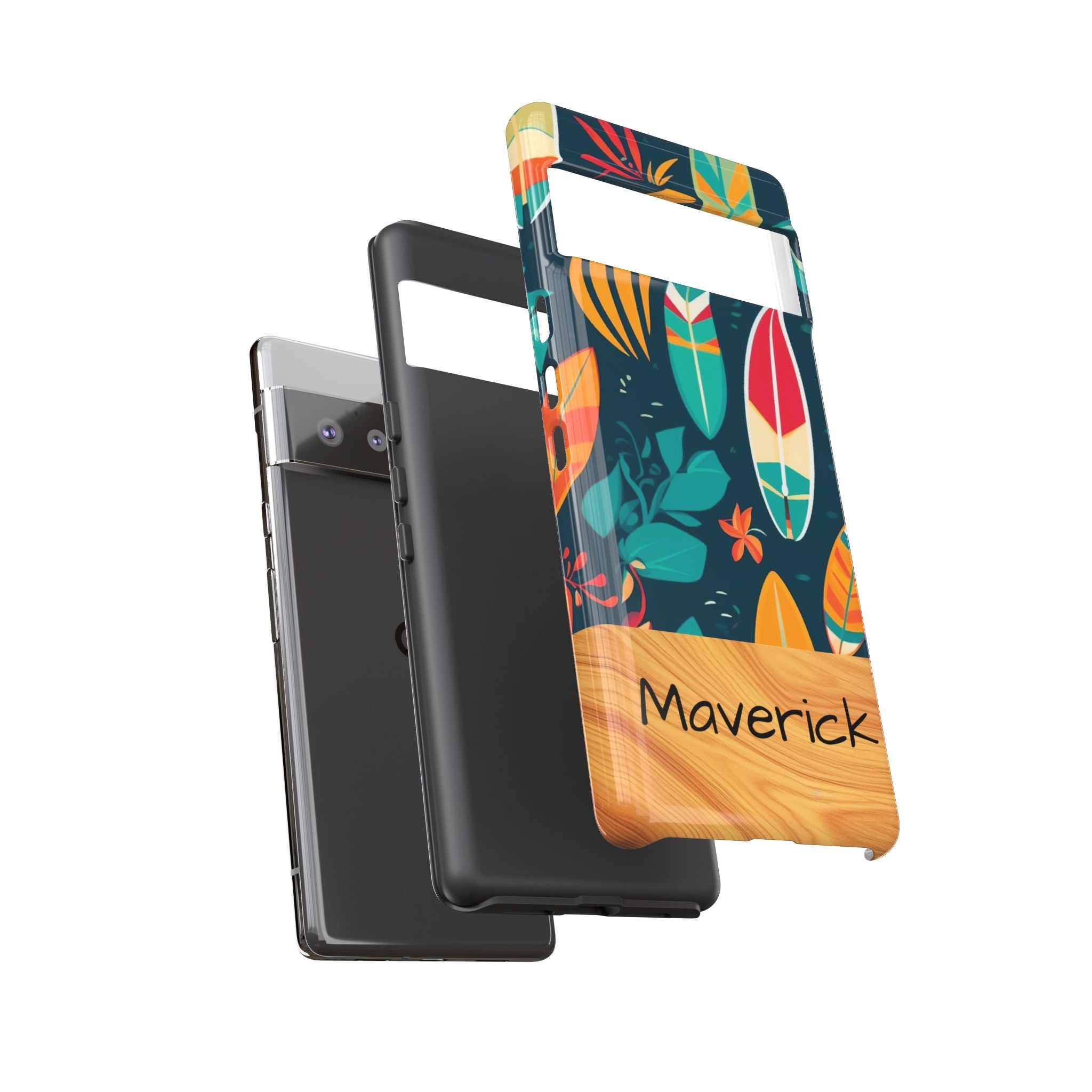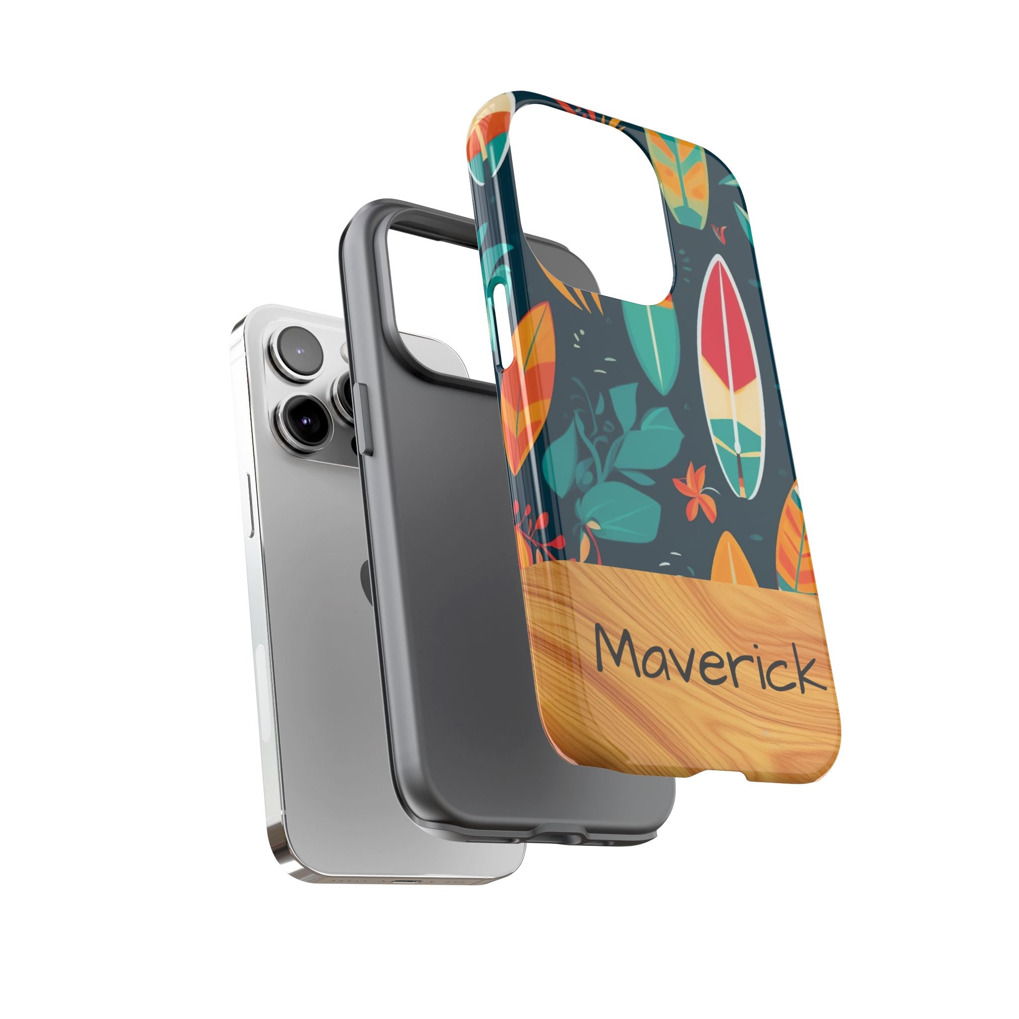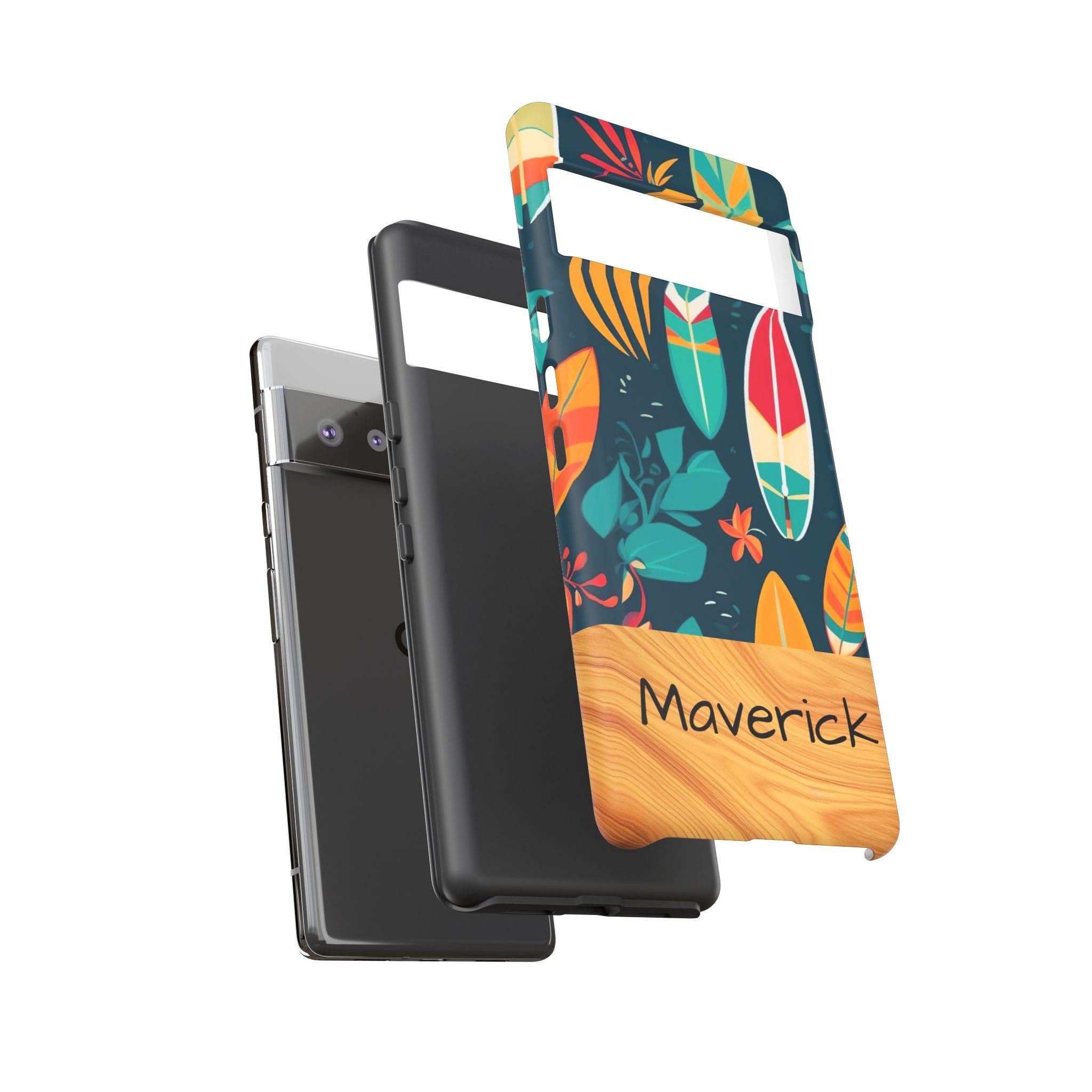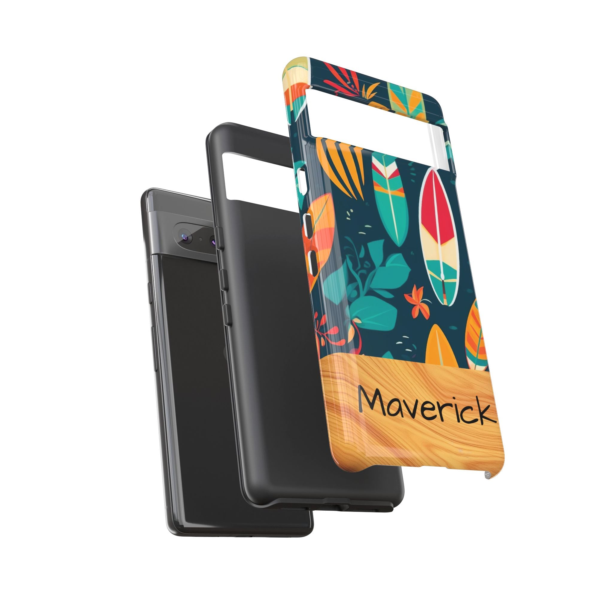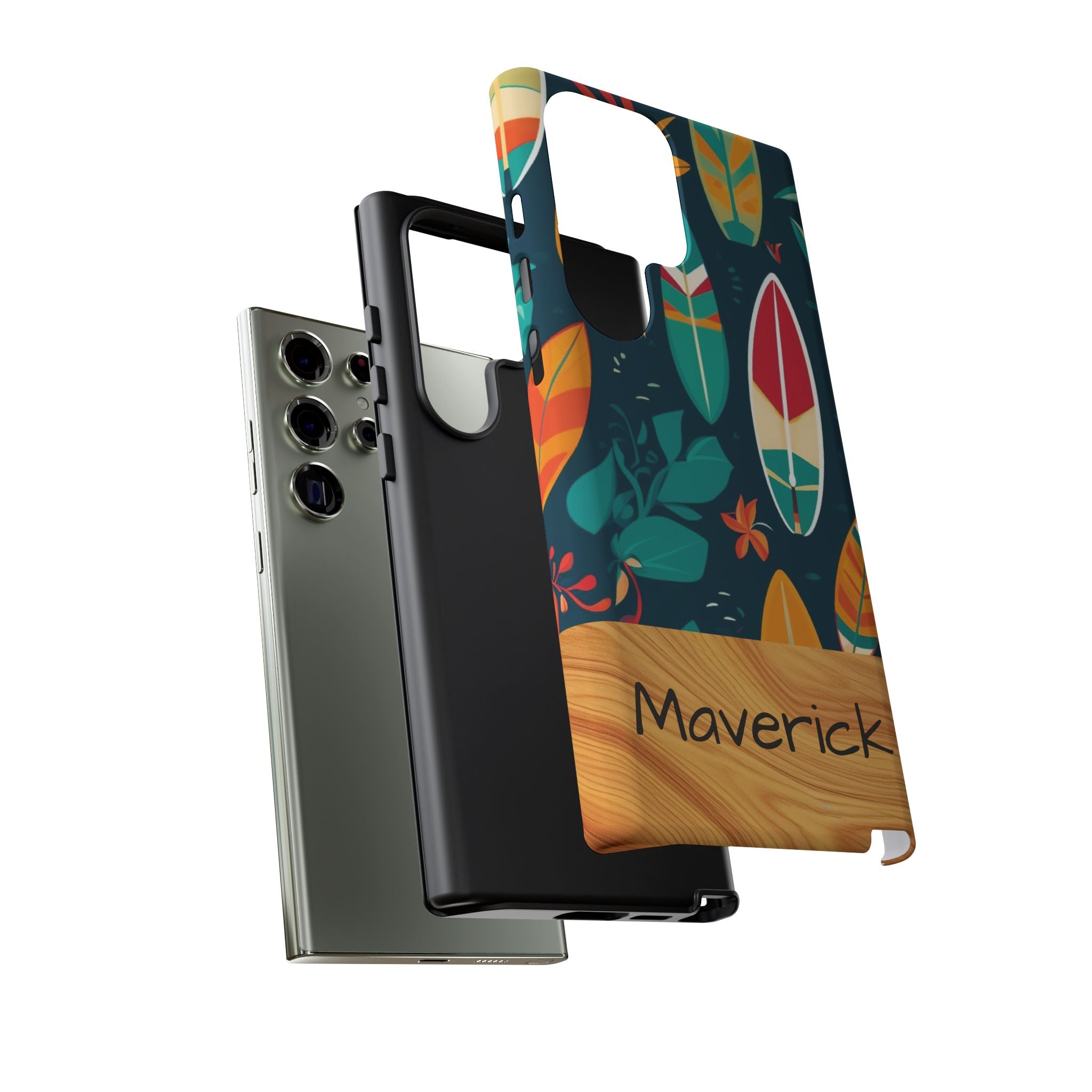 Custom Phone Tough Case Hawaii Surf Boards with Woodgrain Personalize with Name