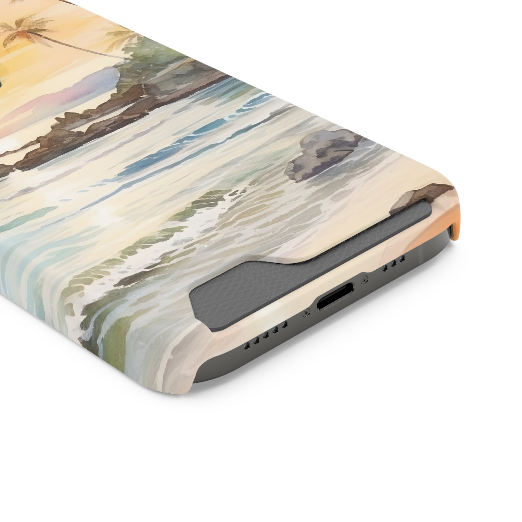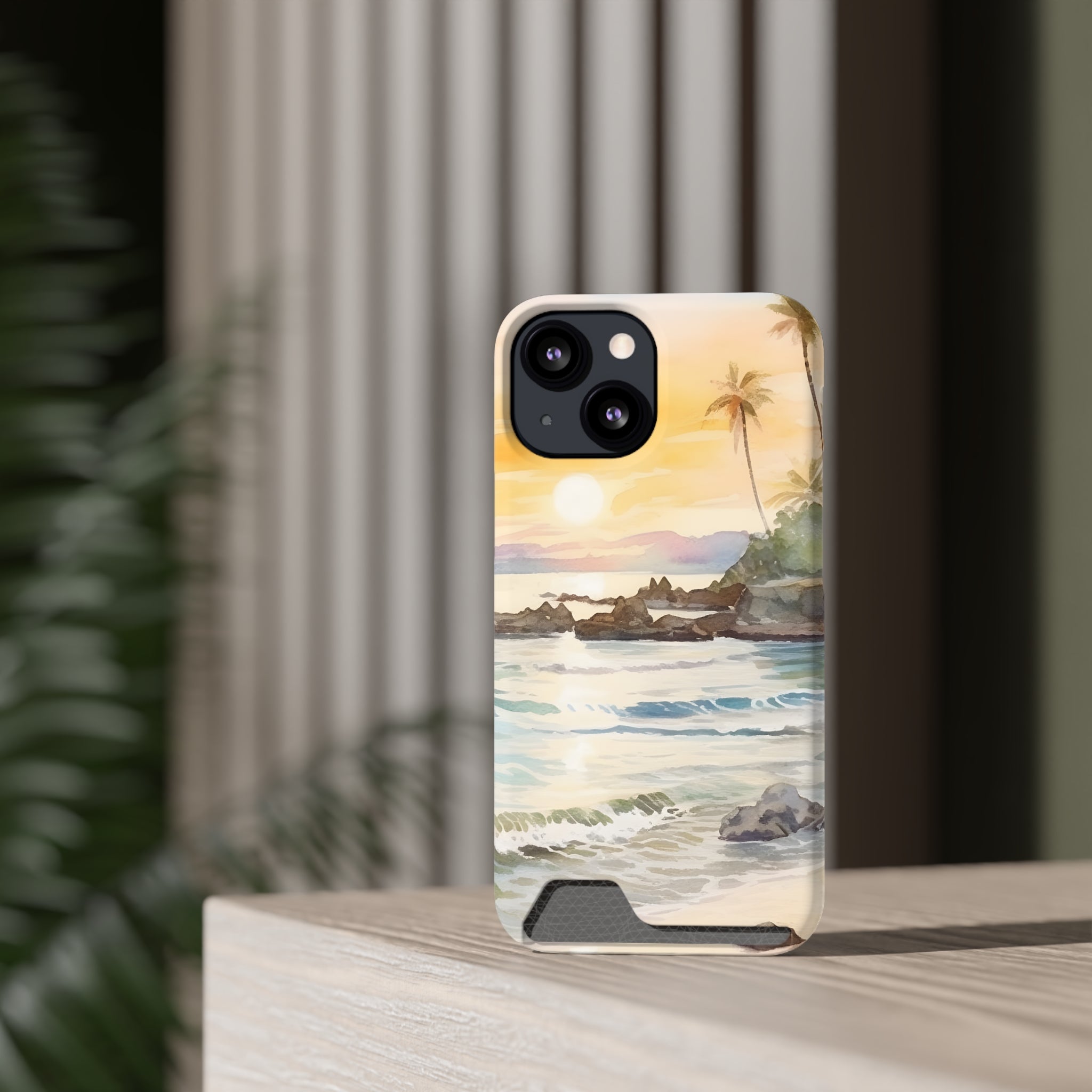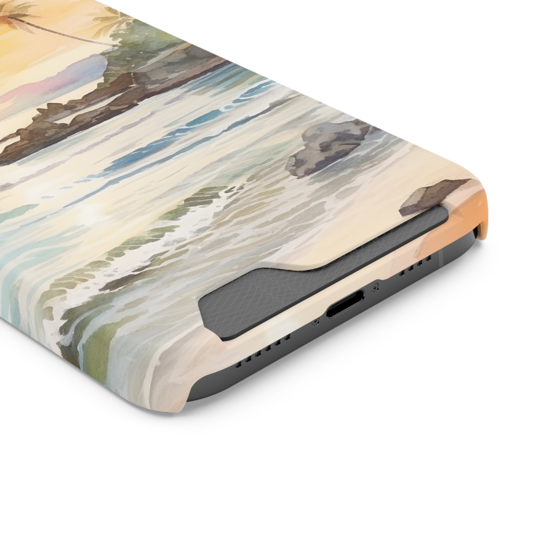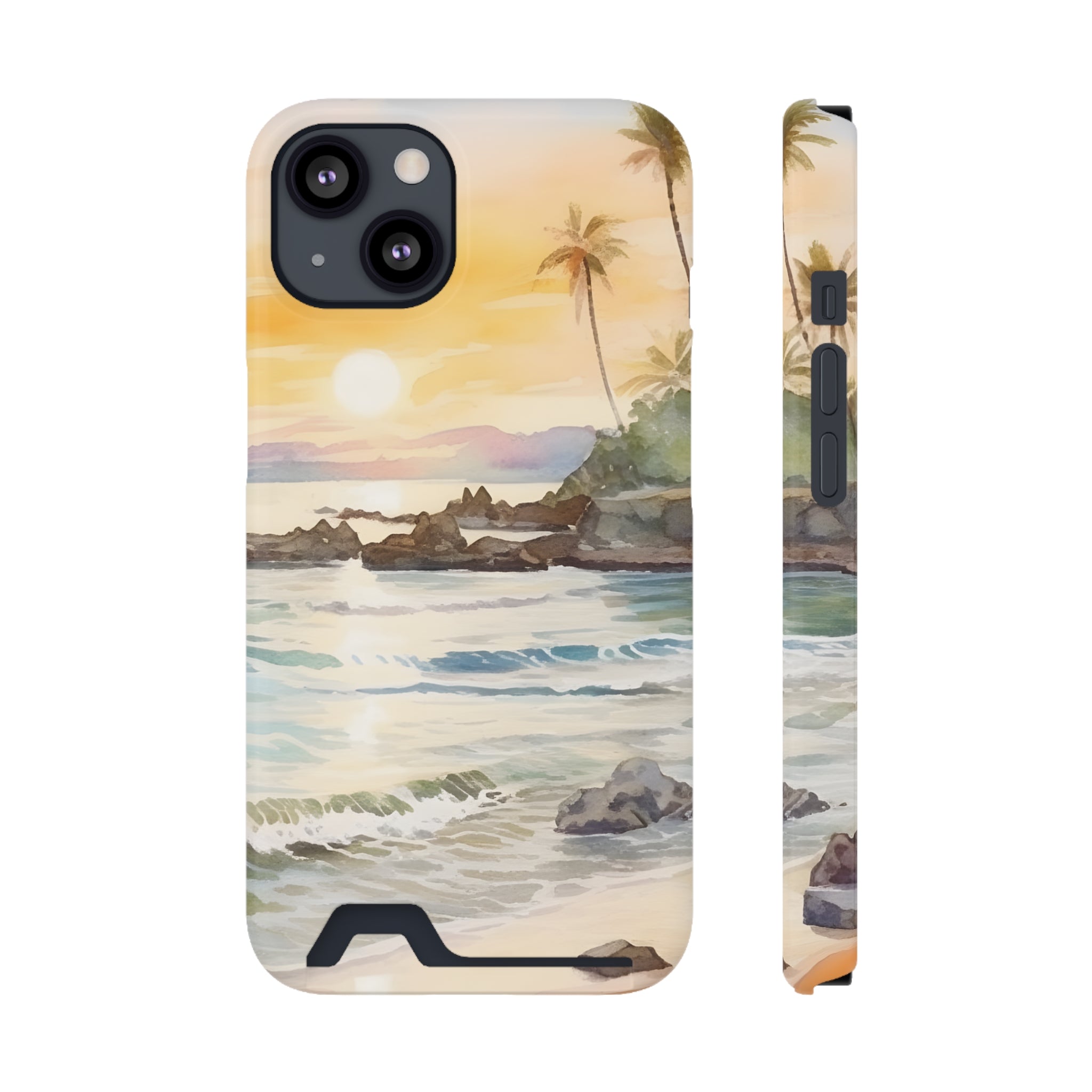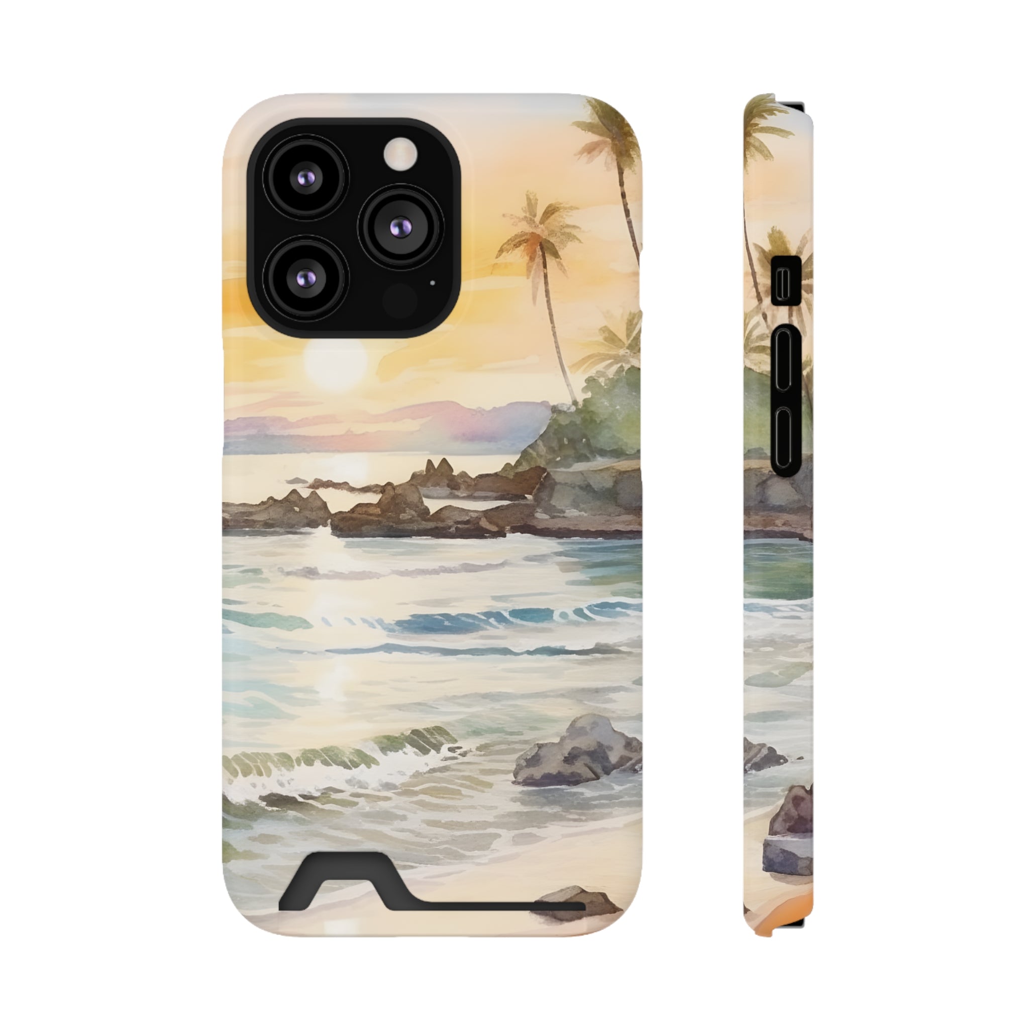 Hawaii Sunset Phone Case With Card Holder Tropical Beach