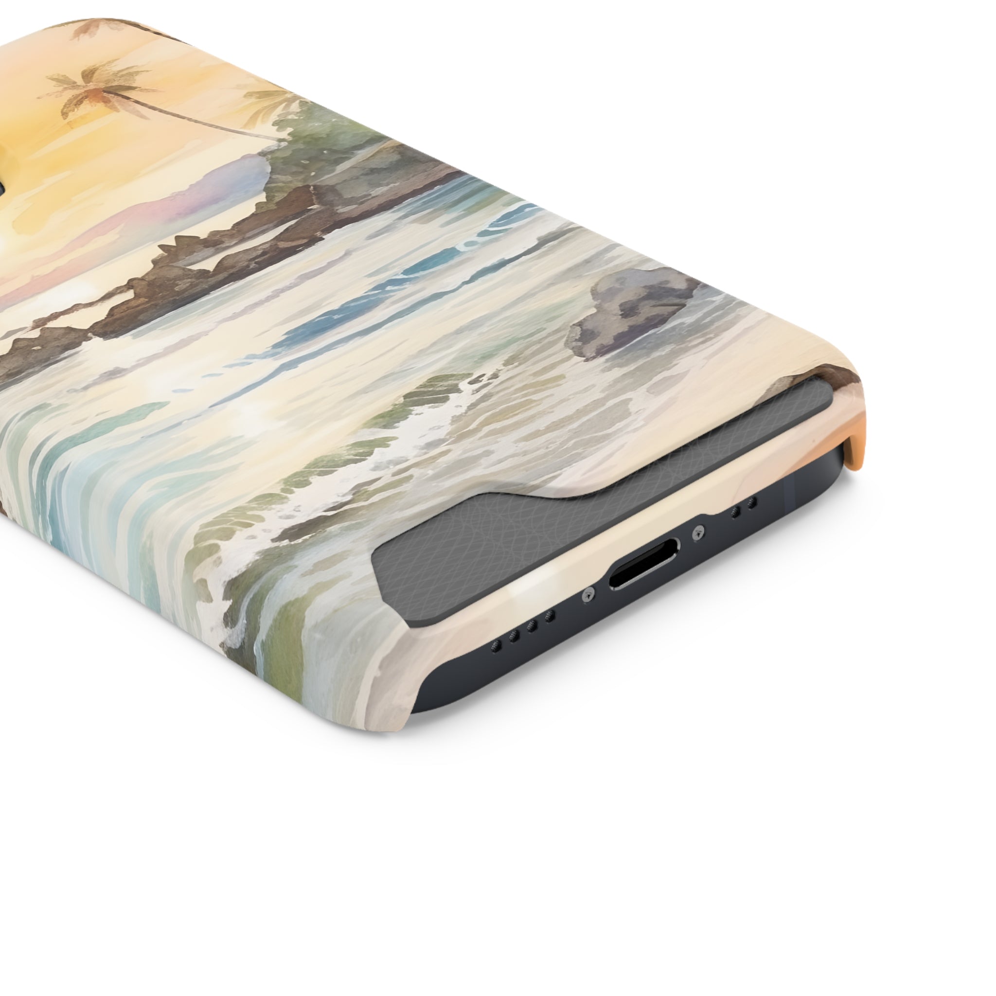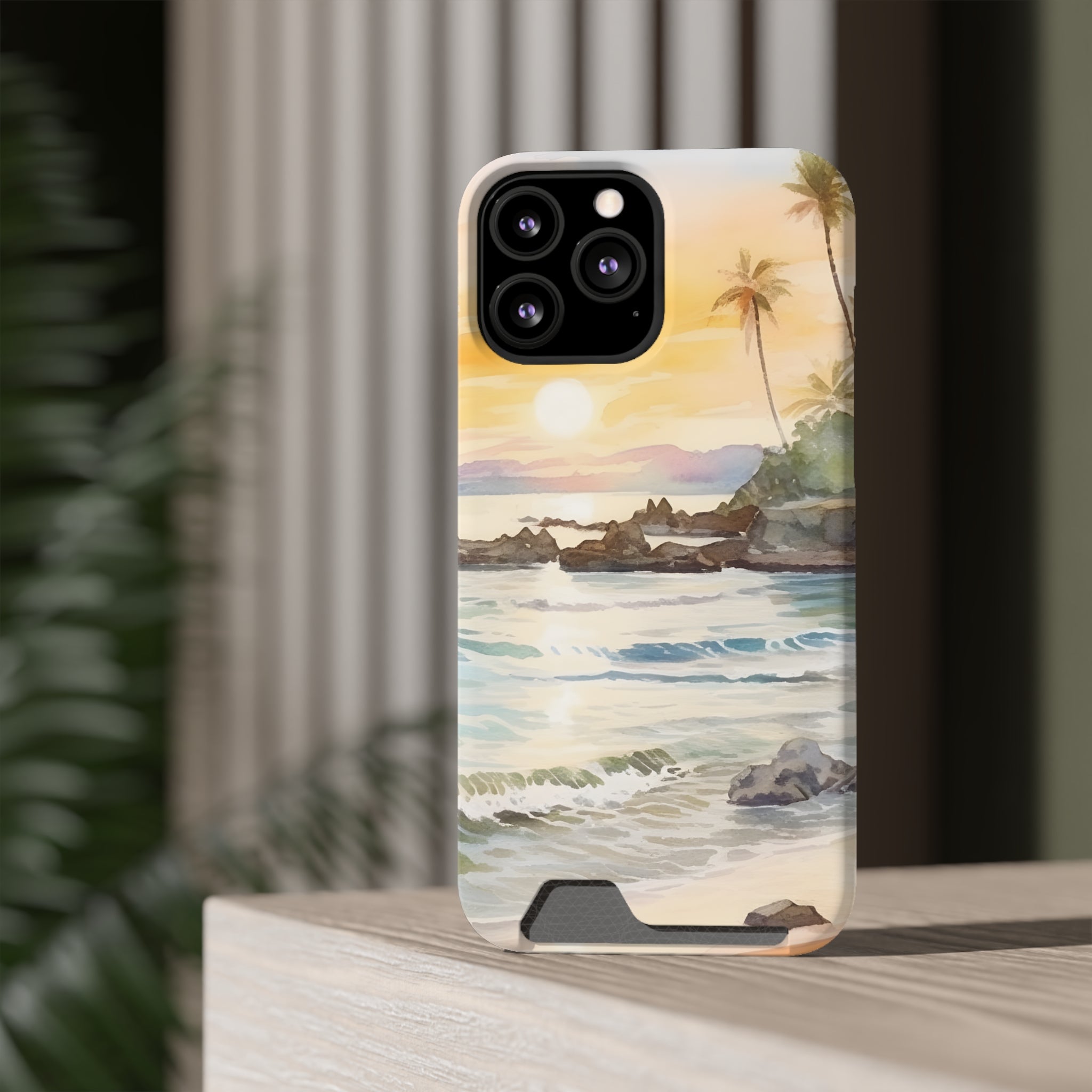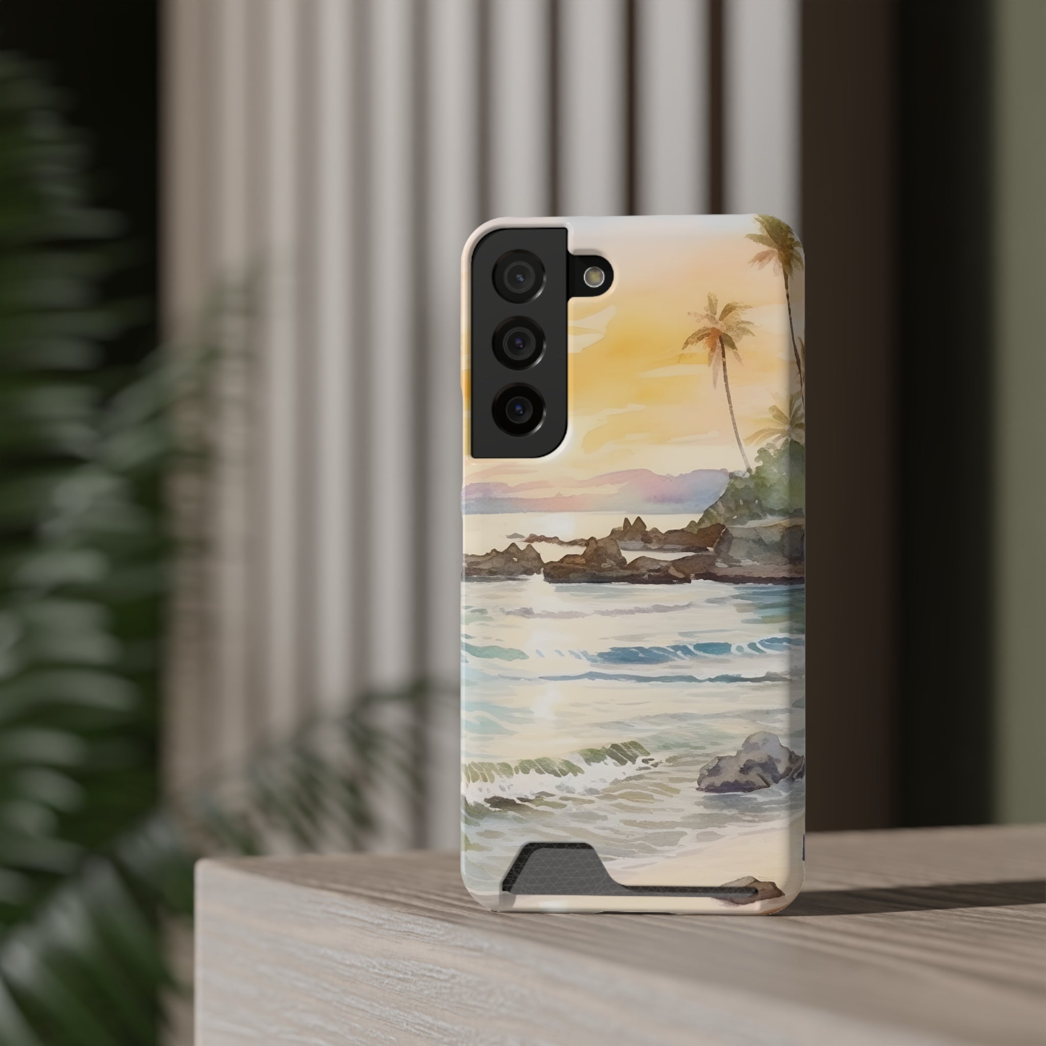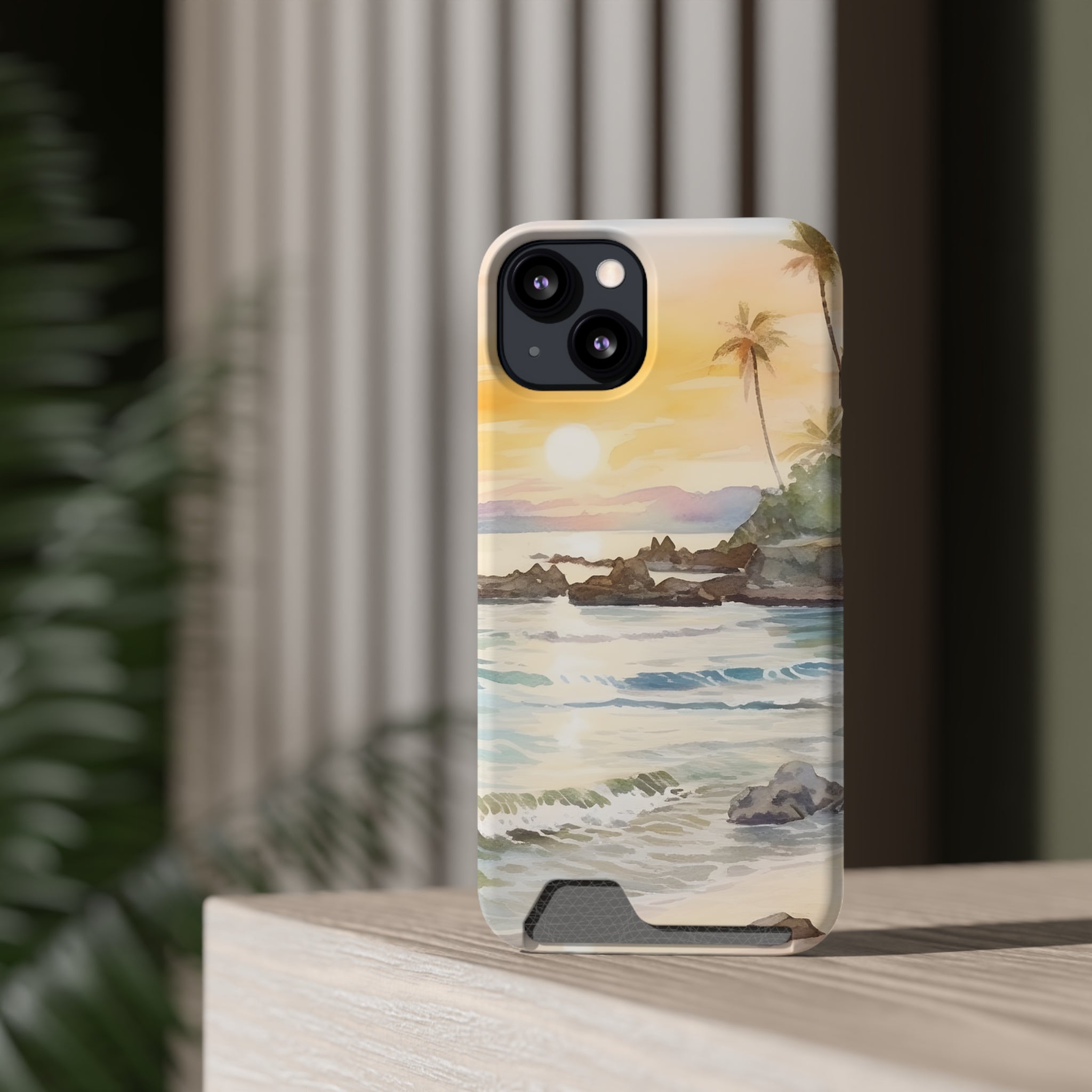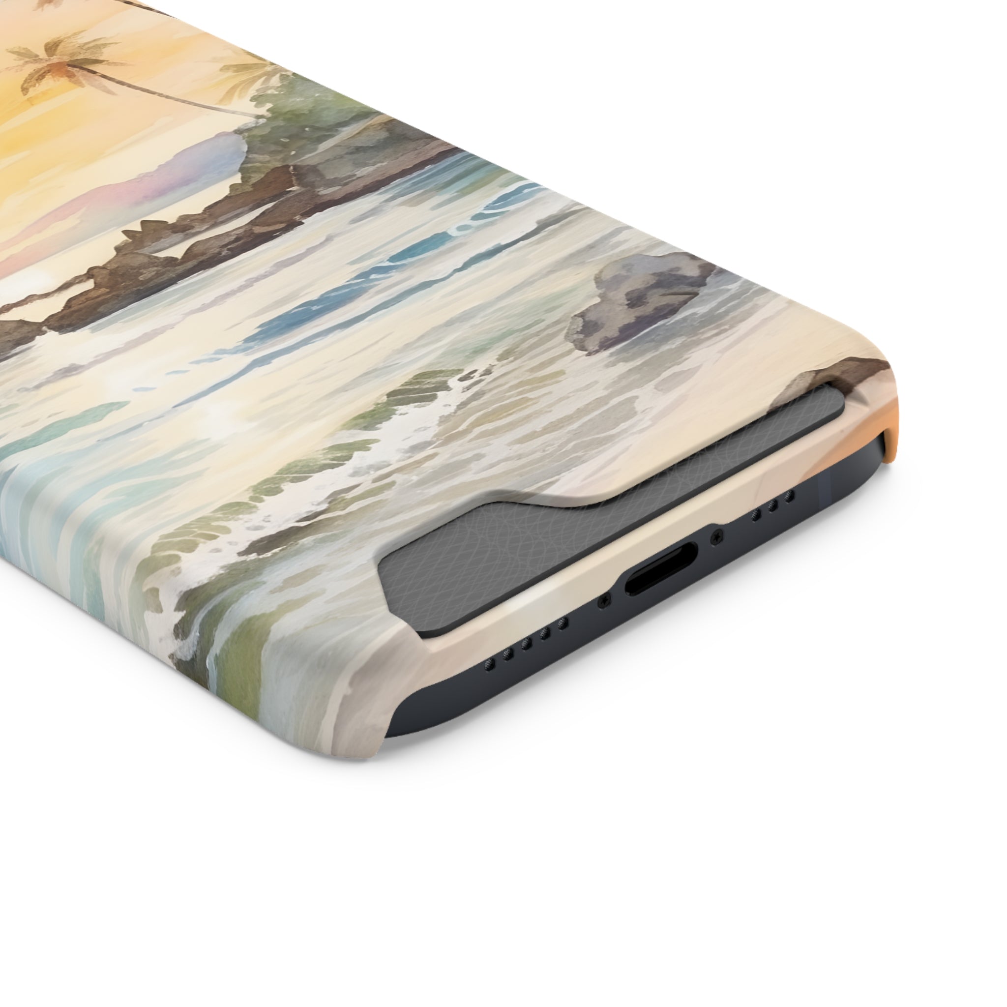 Hawaii Sunset Phone Case With Card Holder Tropical Beach
