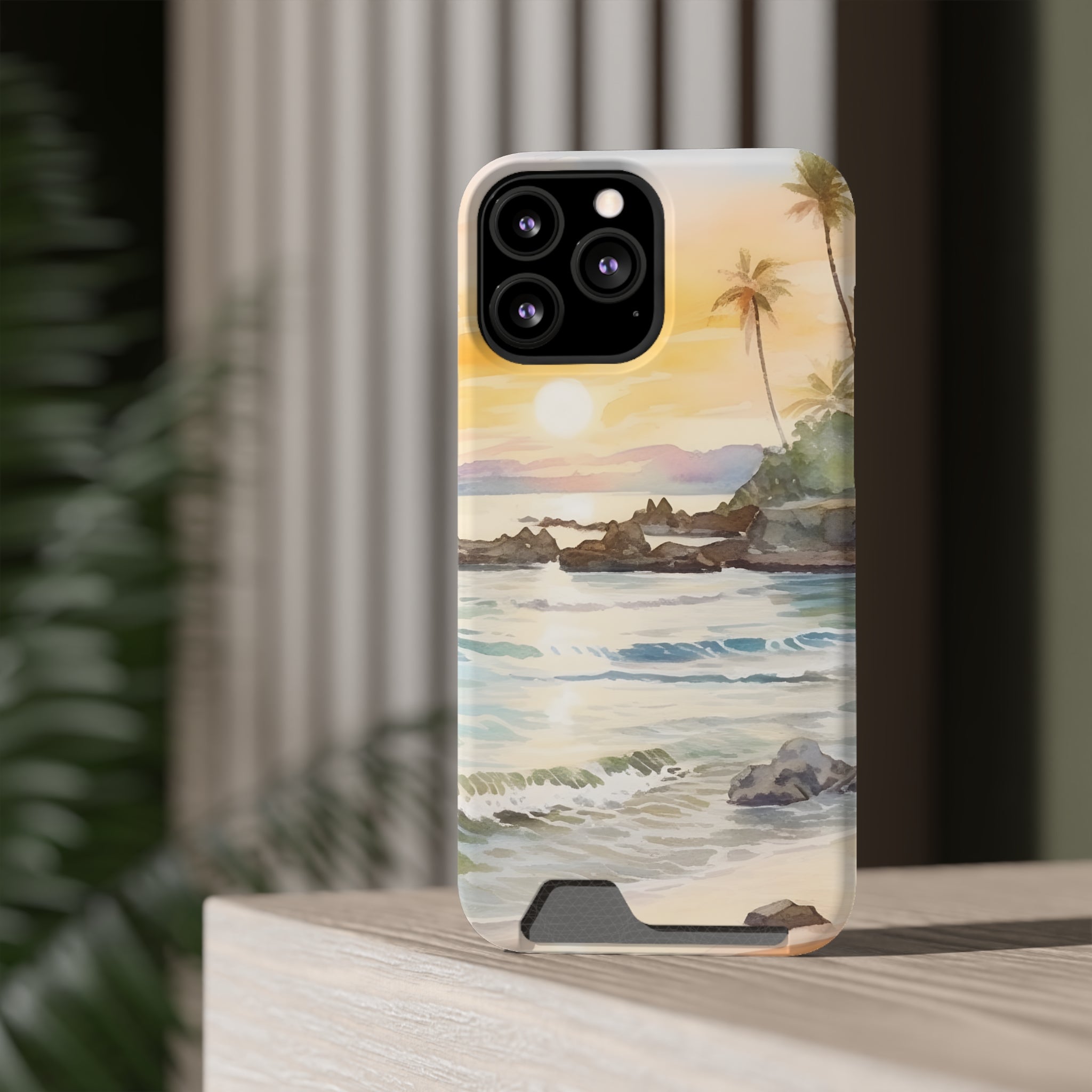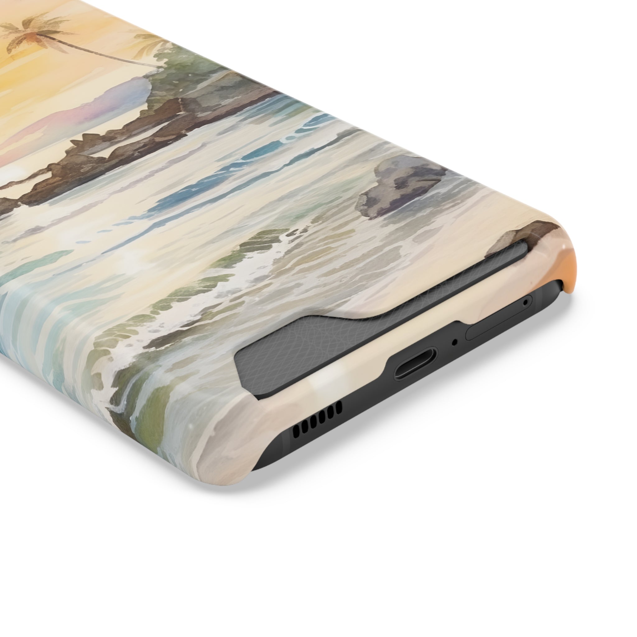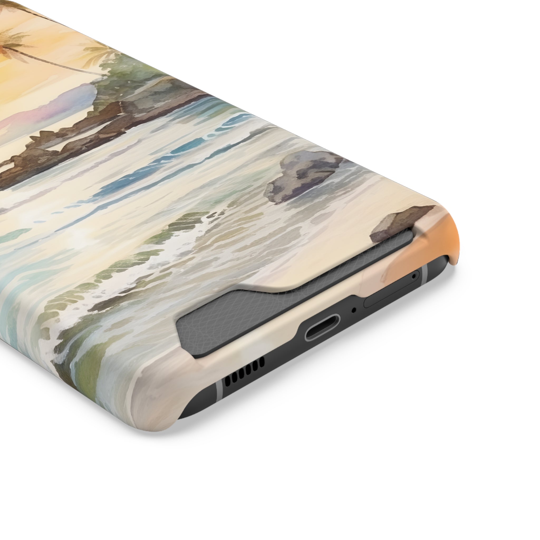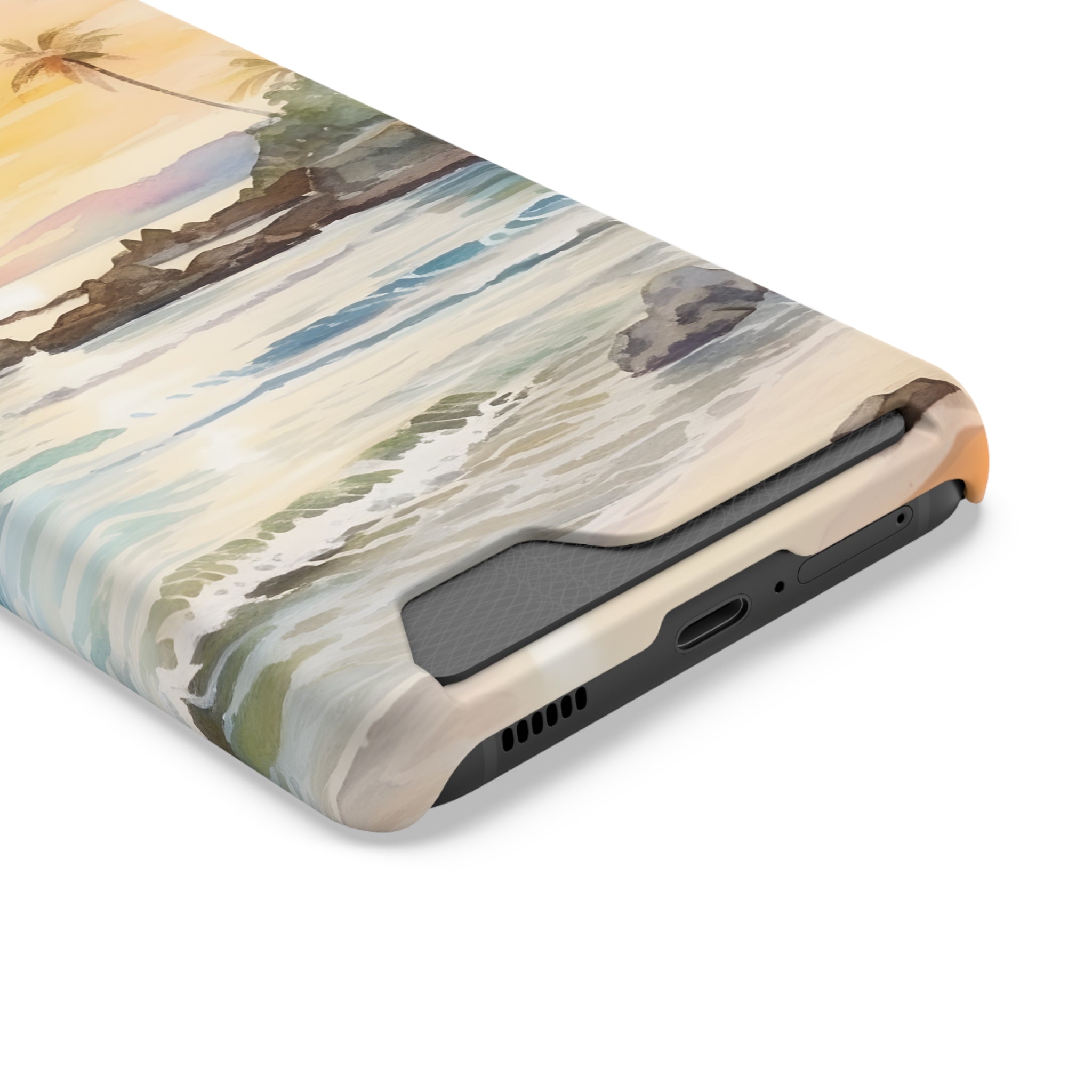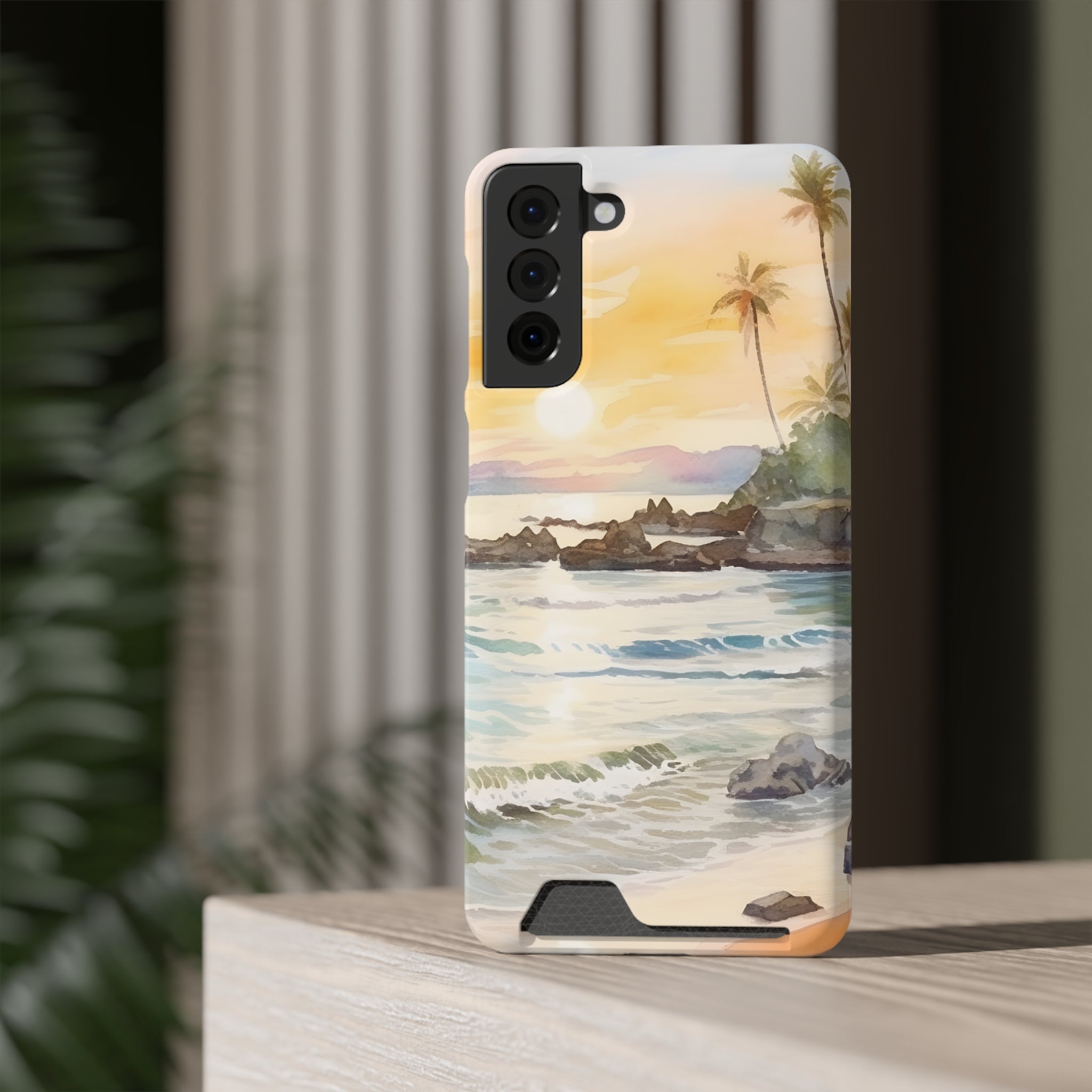Hawaii Sunset Phone Case With Card Holder Tropical Beach