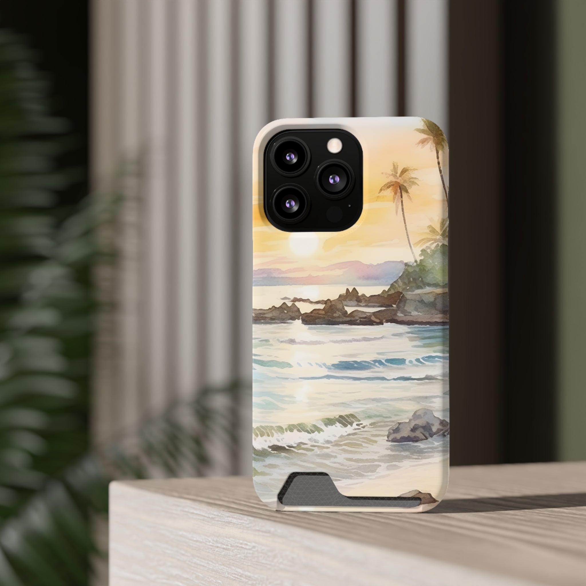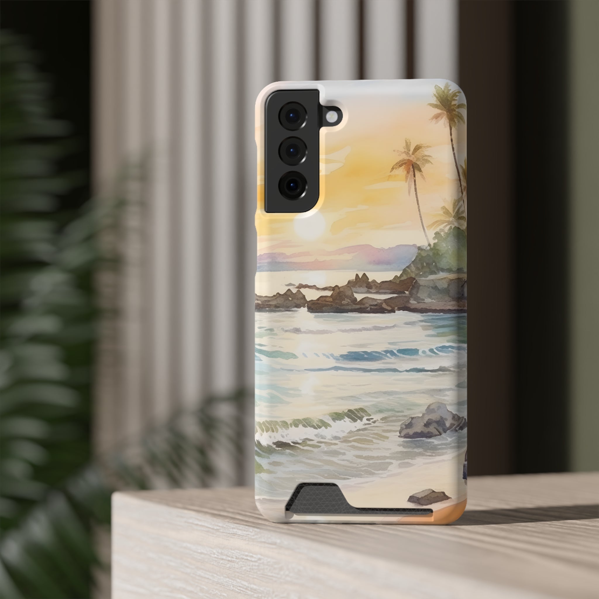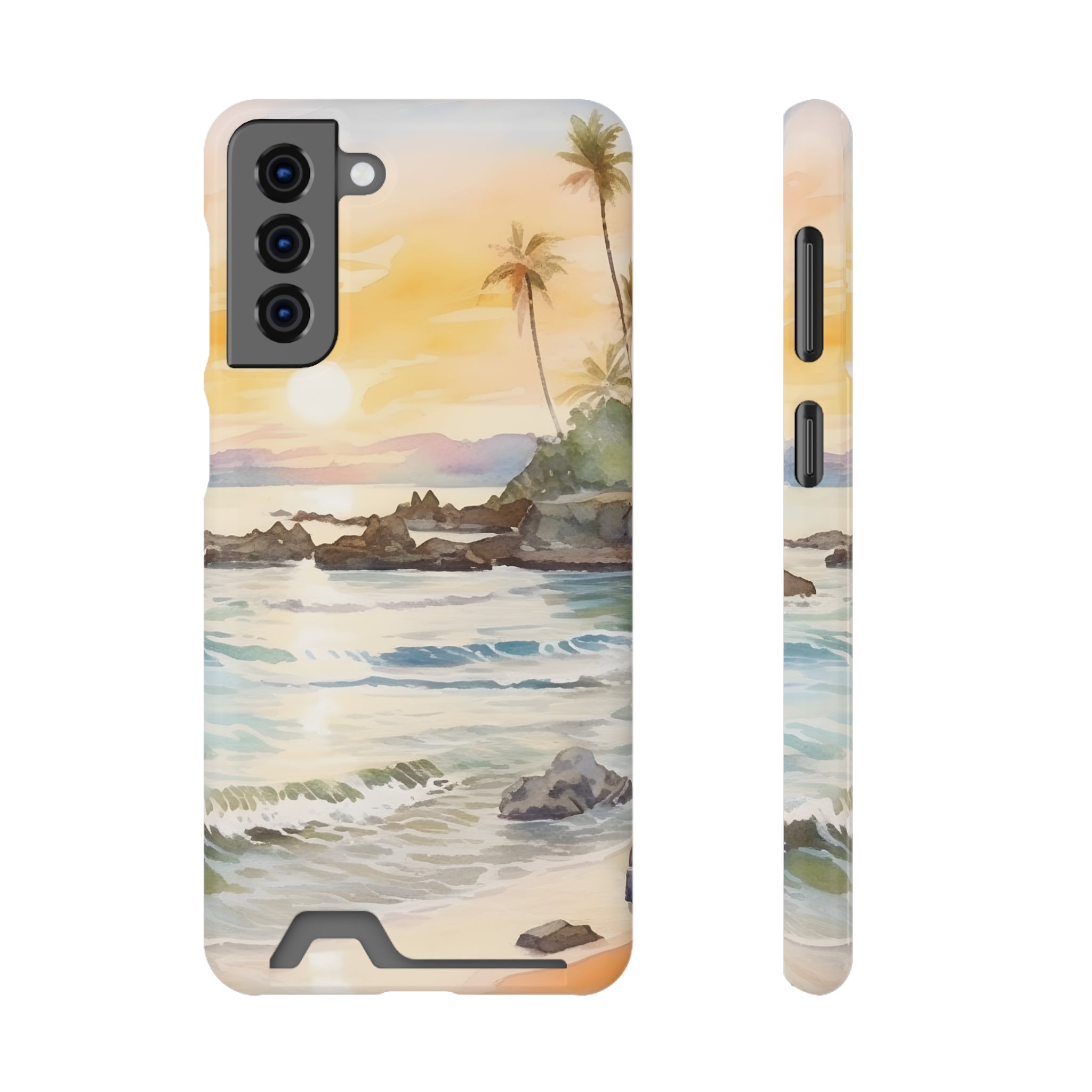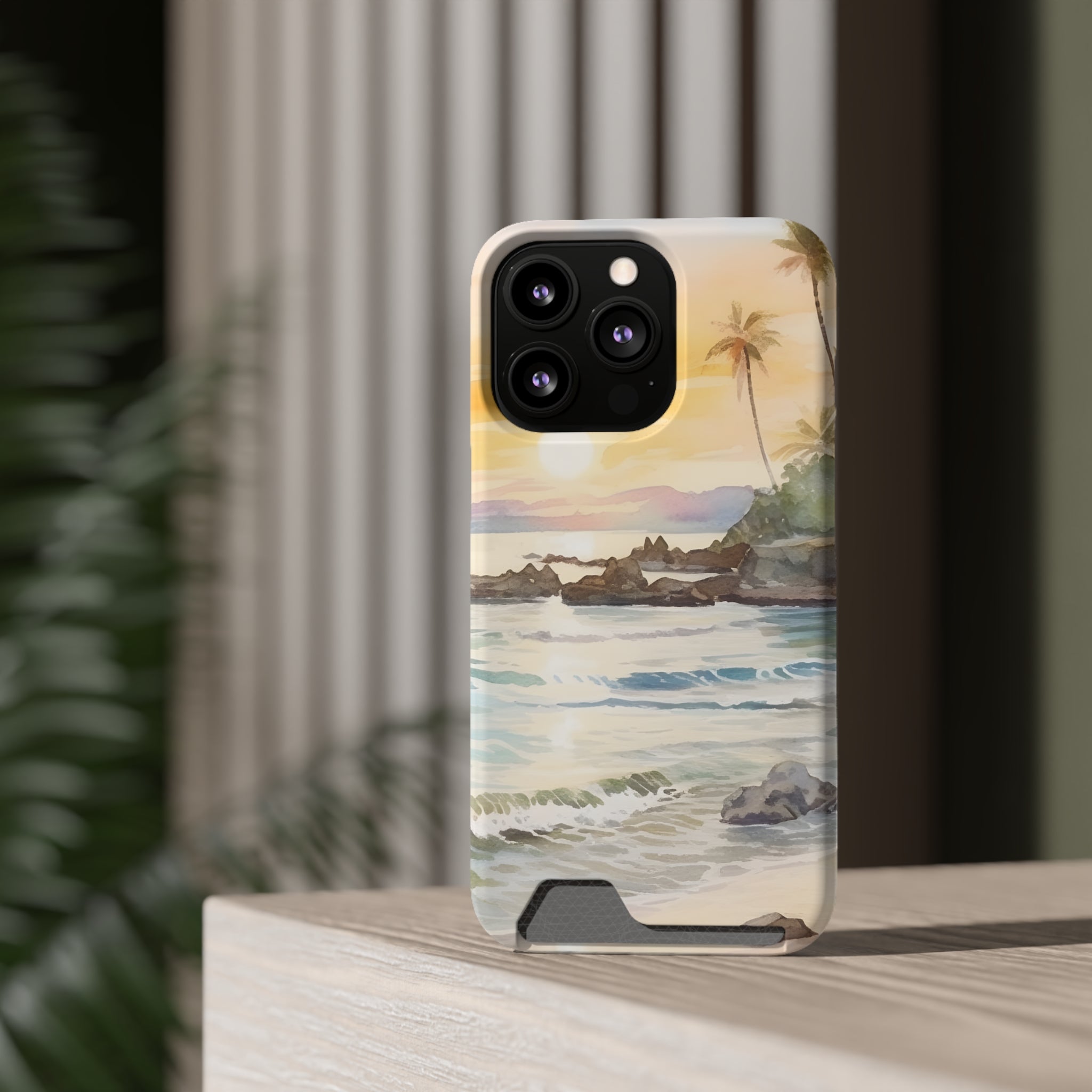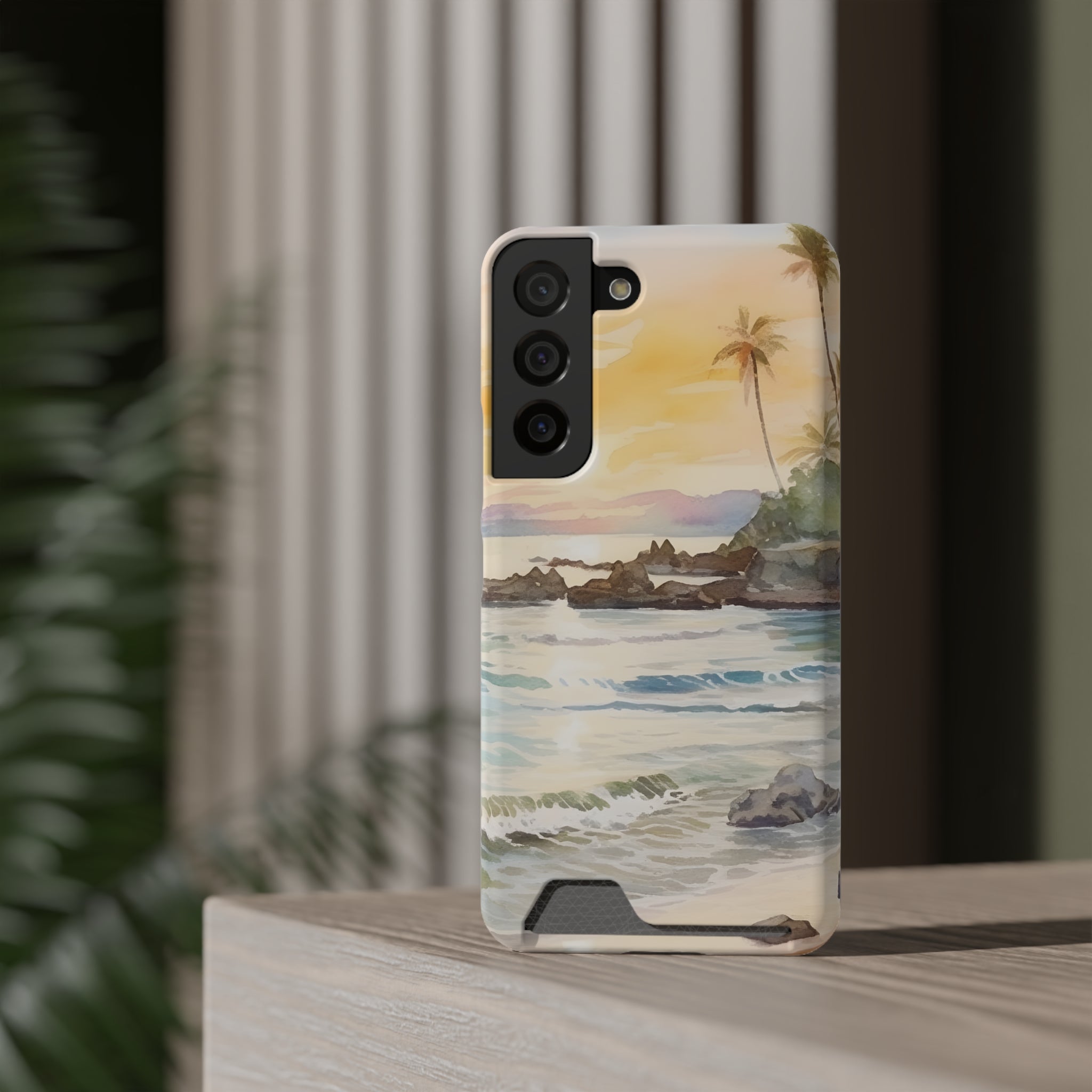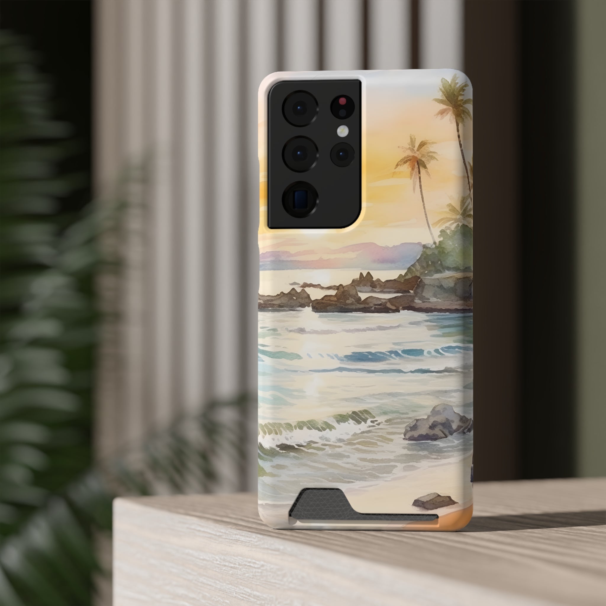 Hawaii Sunset Phone Case With Card Holder Tropical Beach