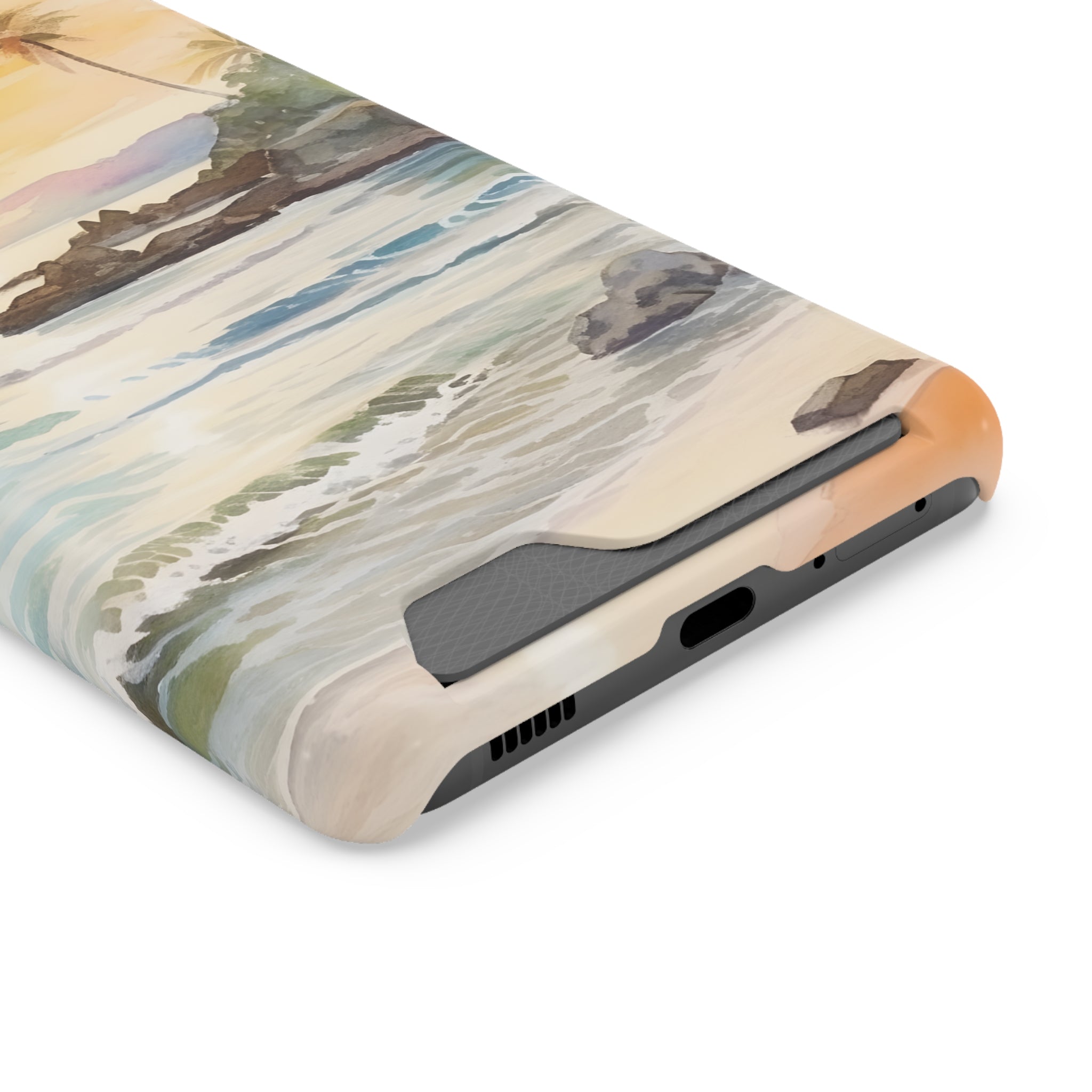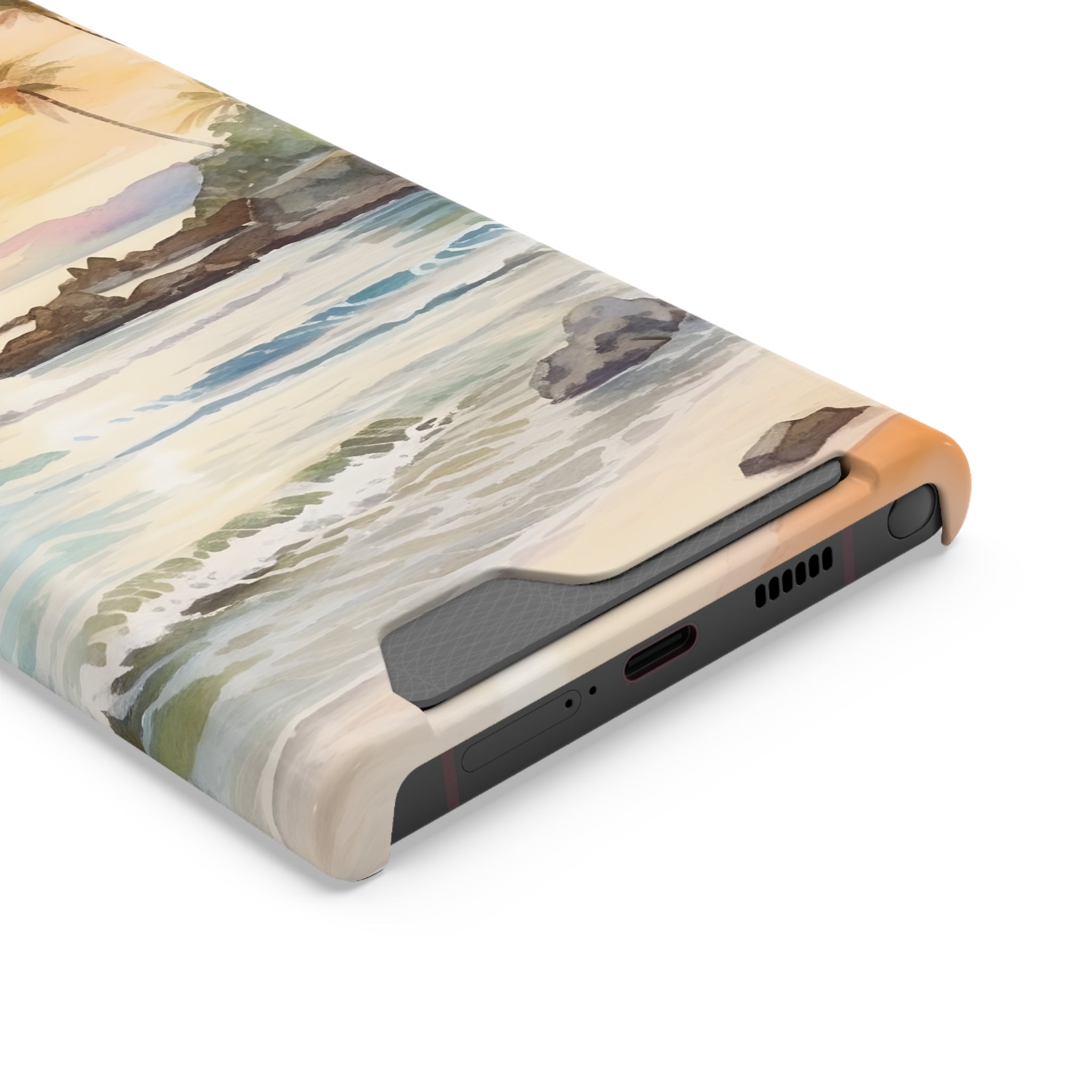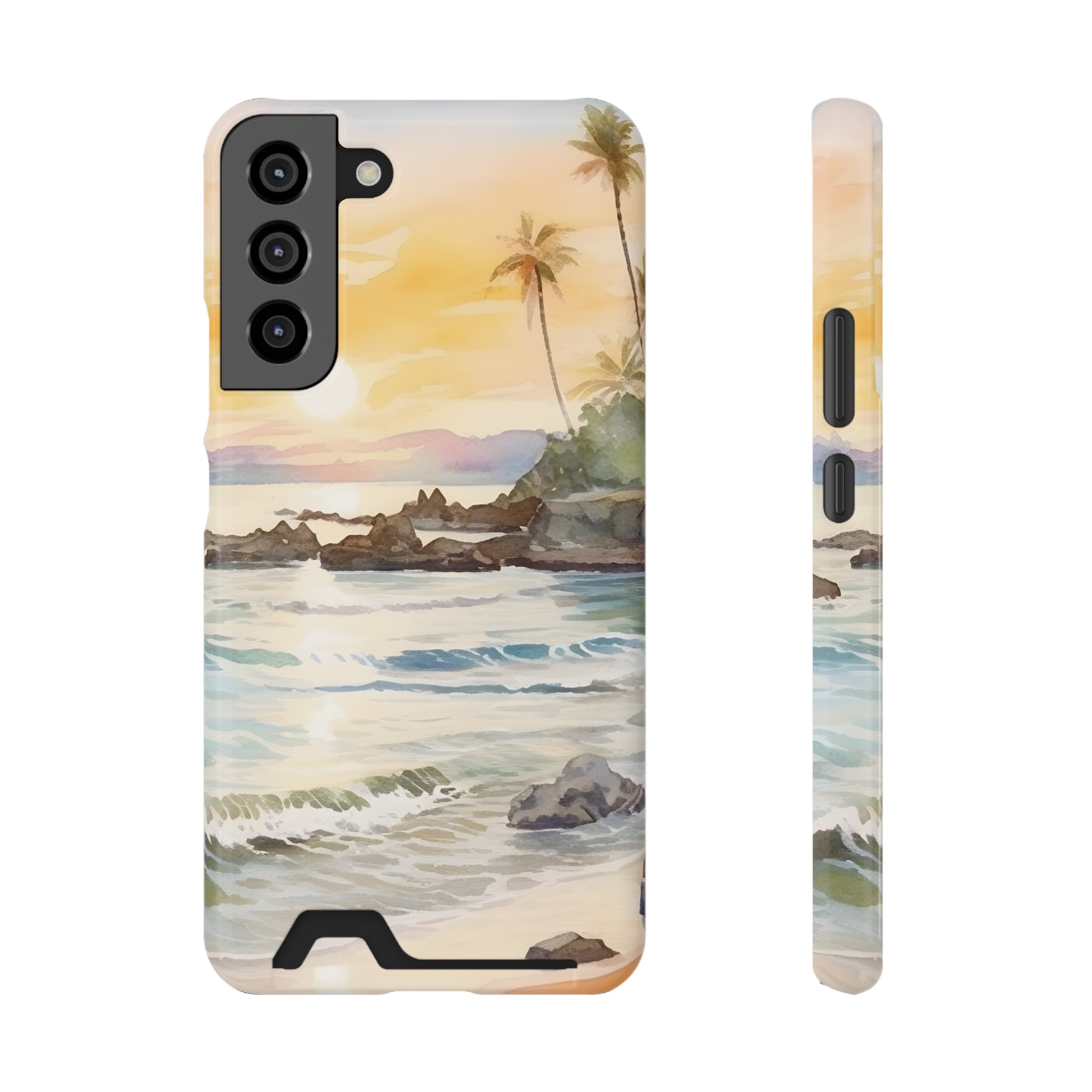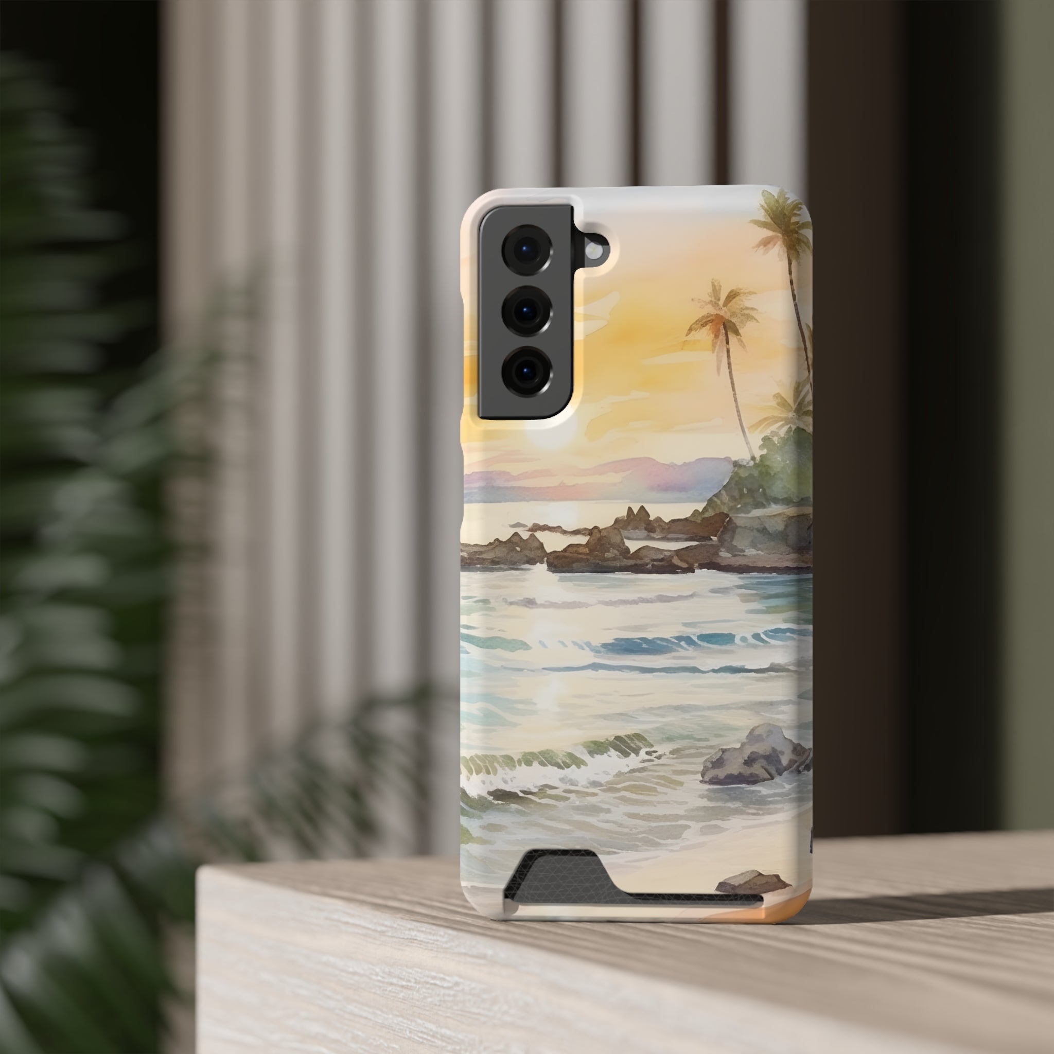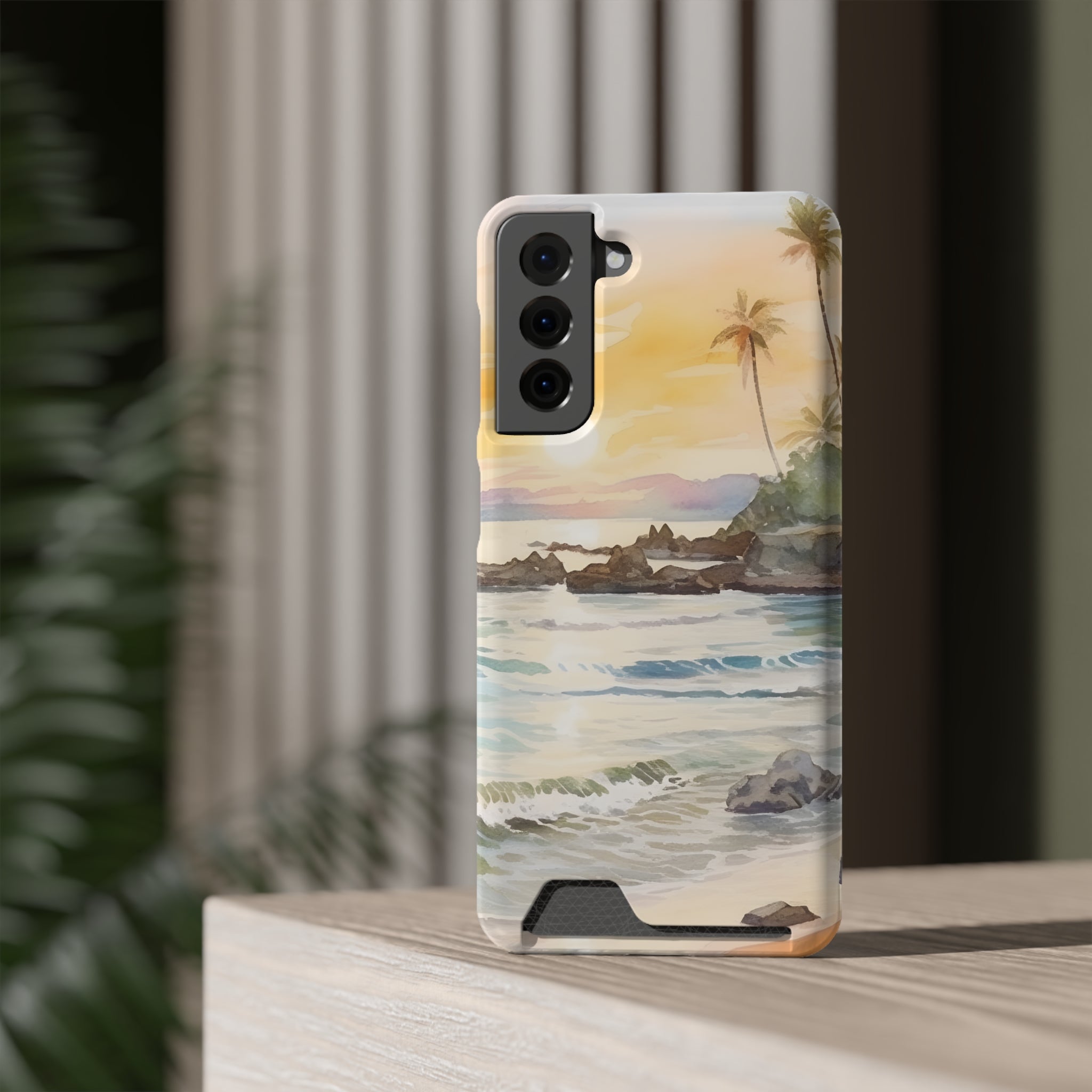Hawaii Sunset Phone Case With Card Holder Tropical Beach