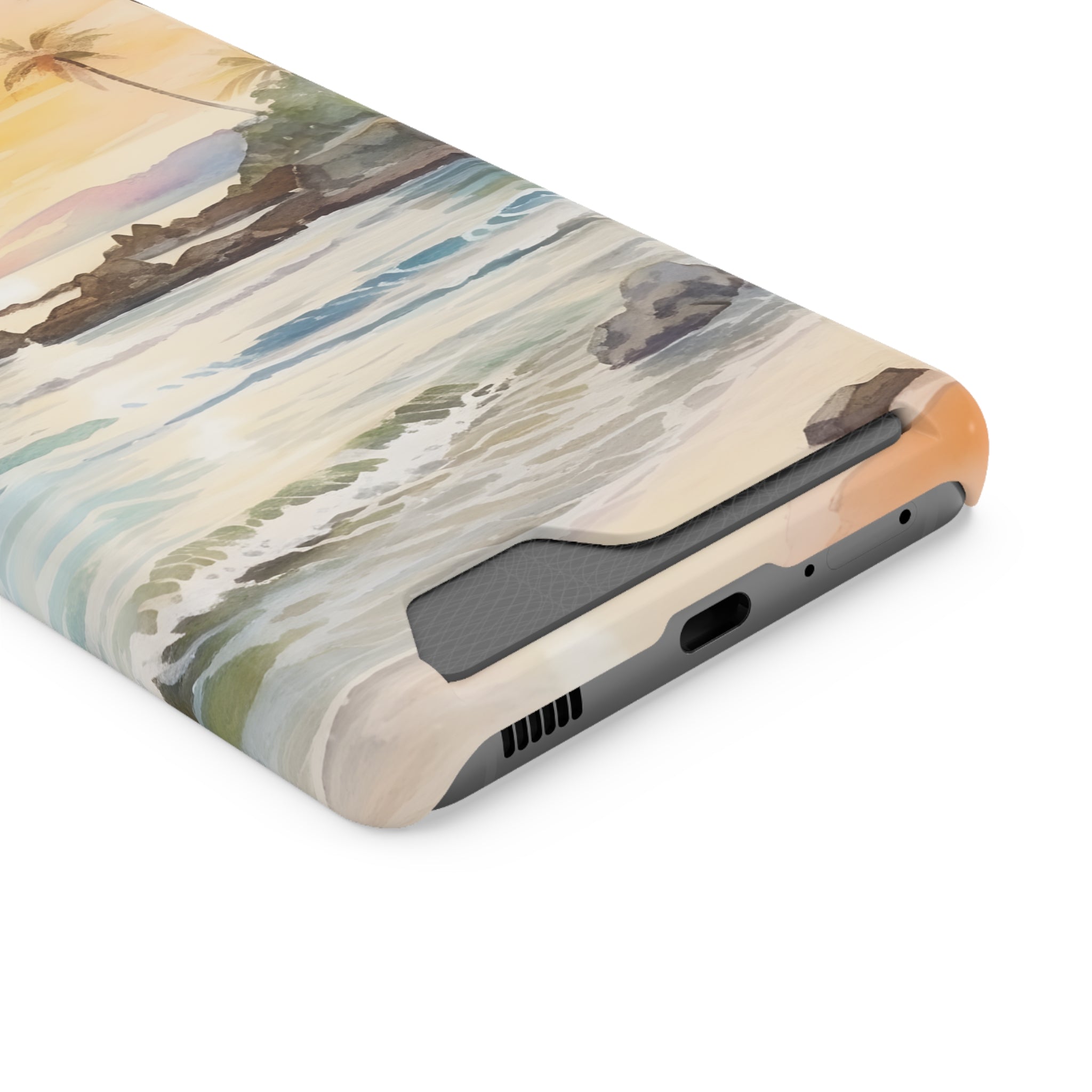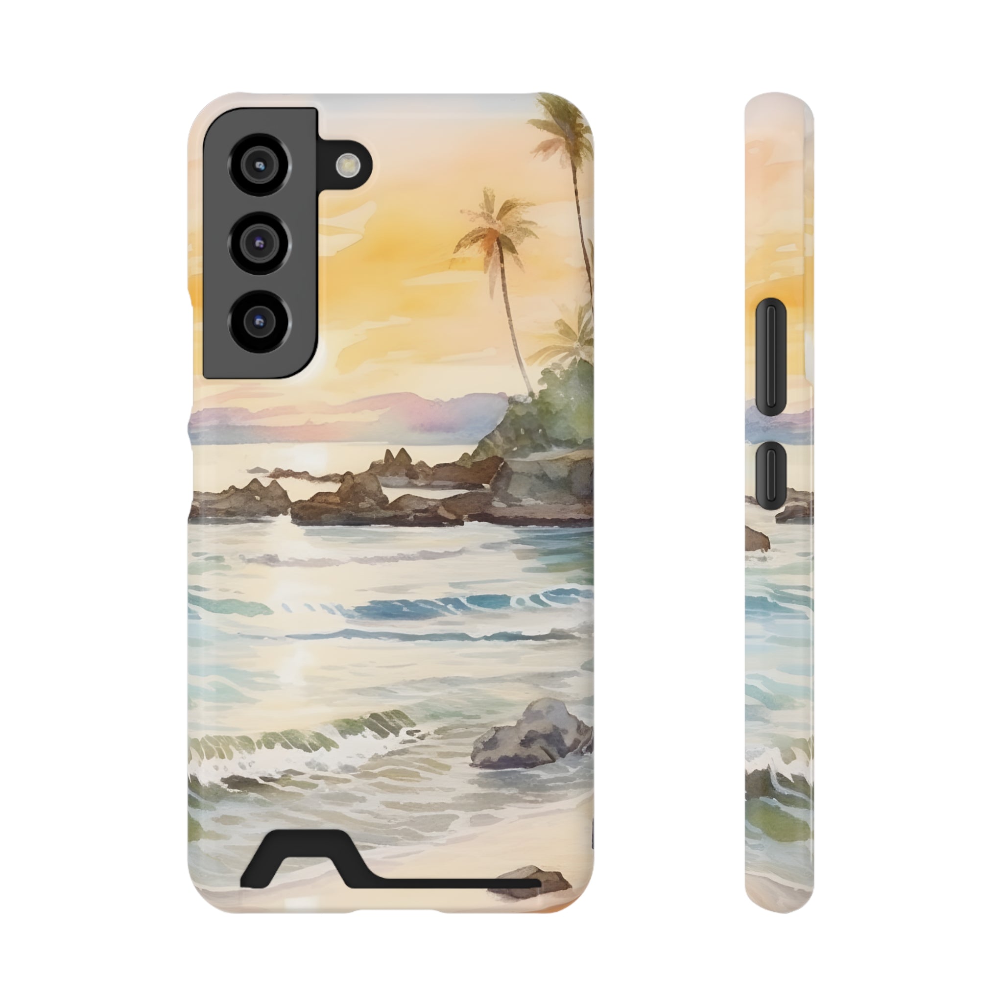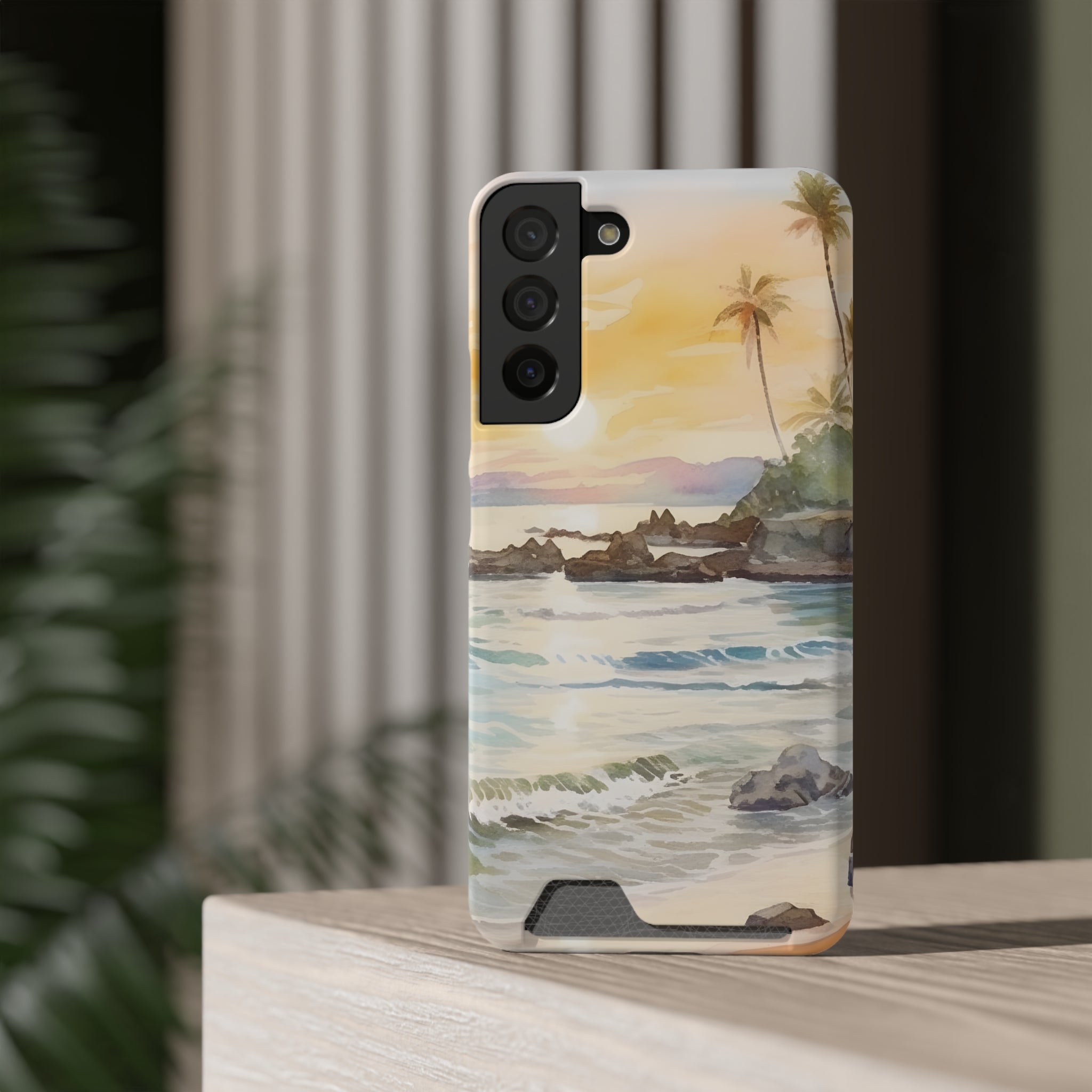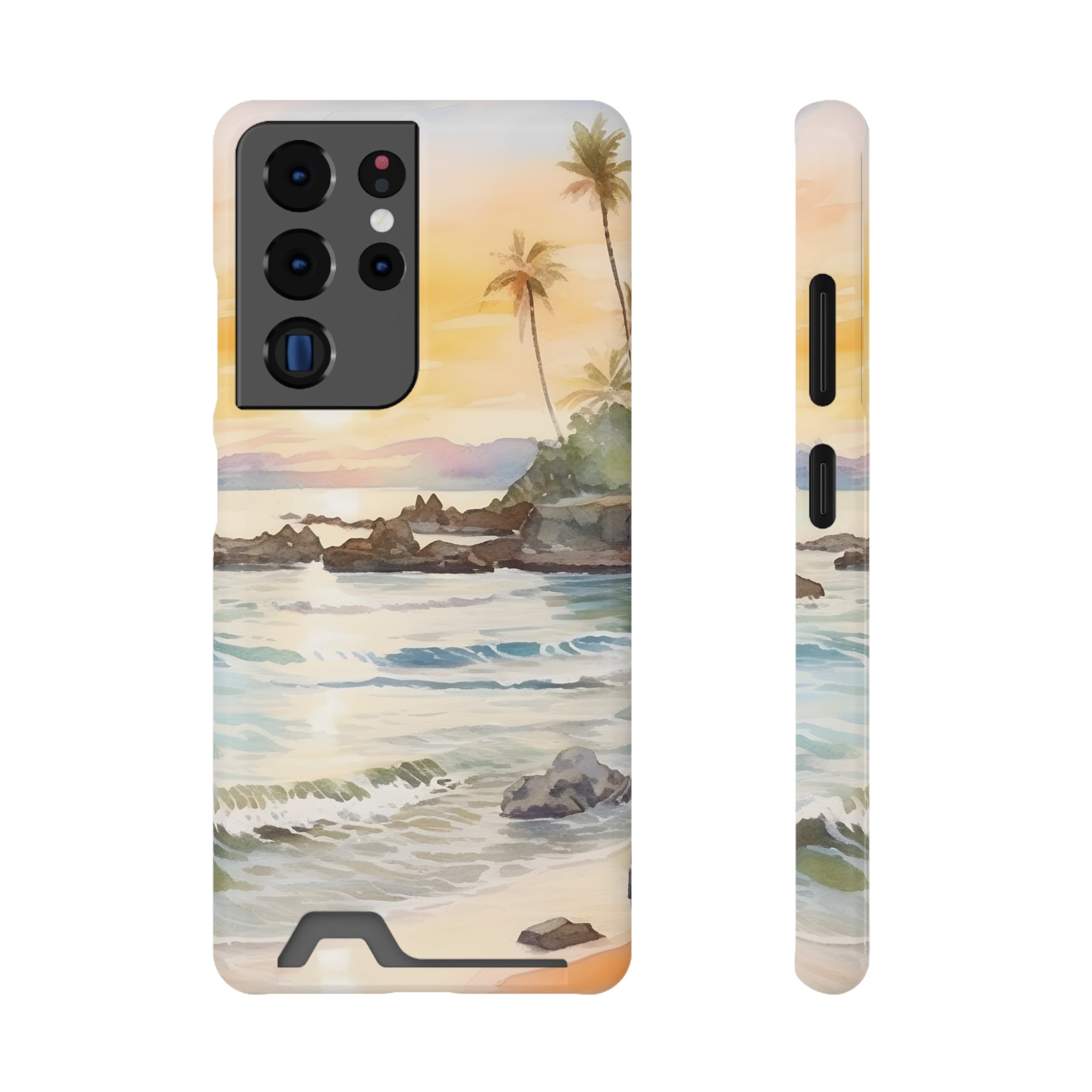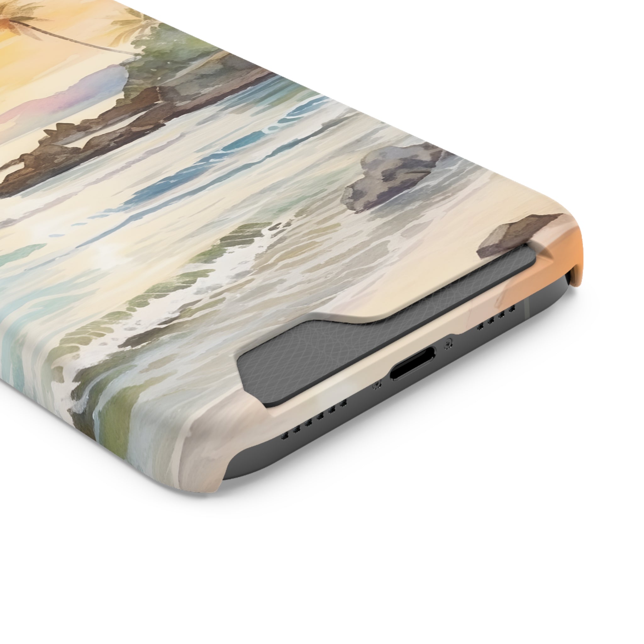 Hawaii Sunset Phone Case With Card Holder Tropical Beach
