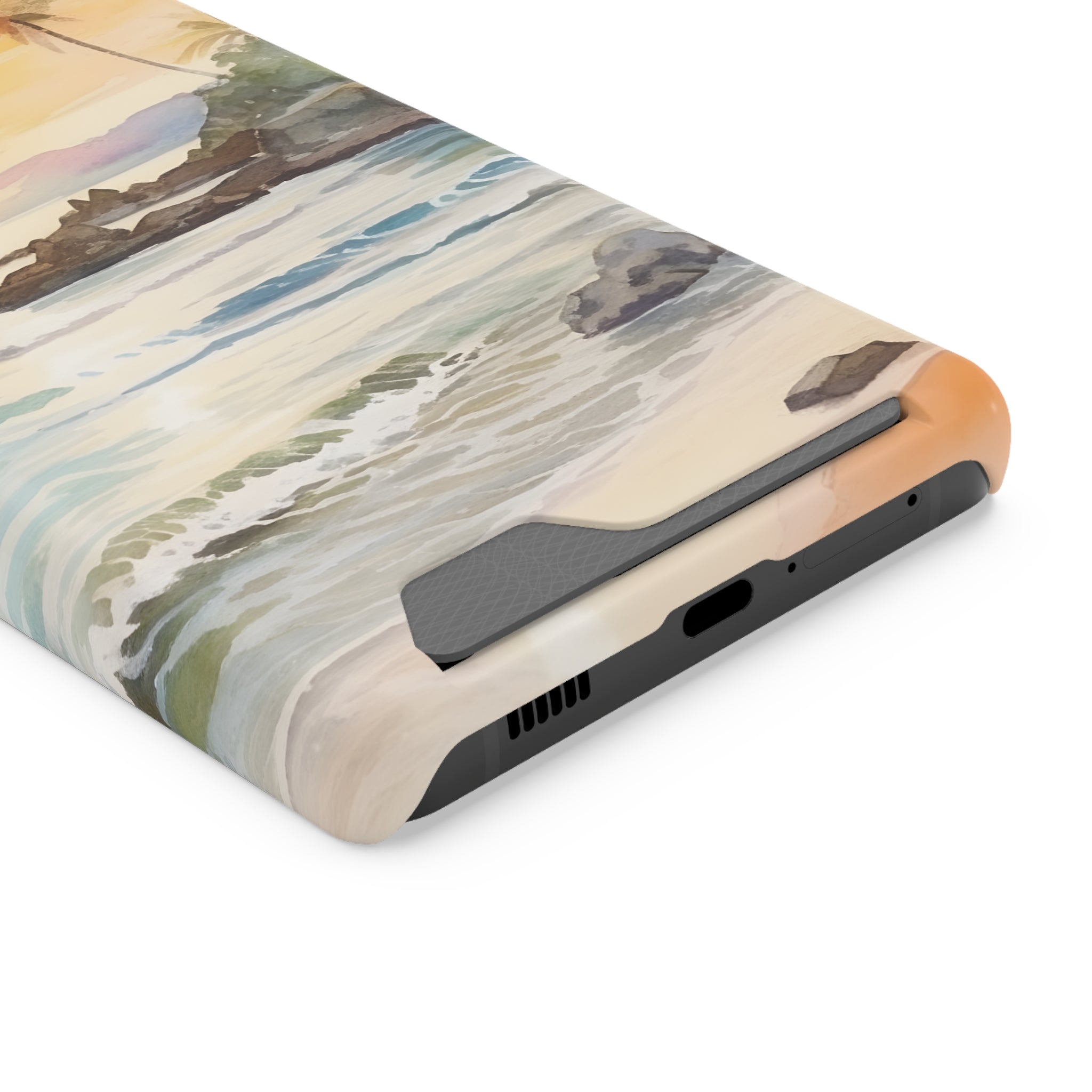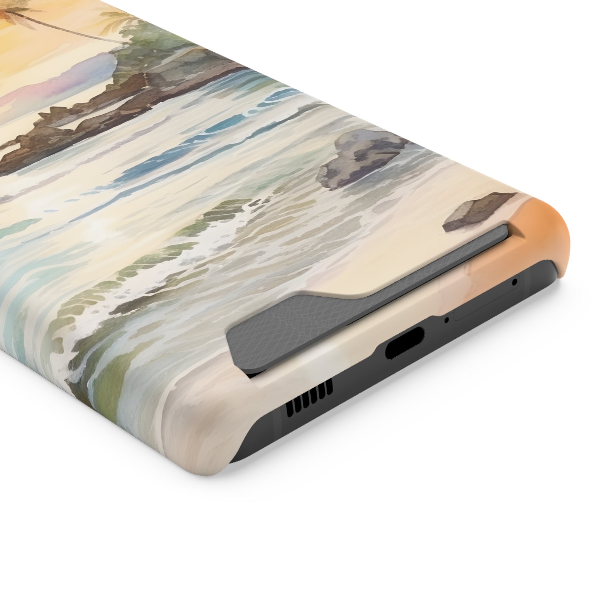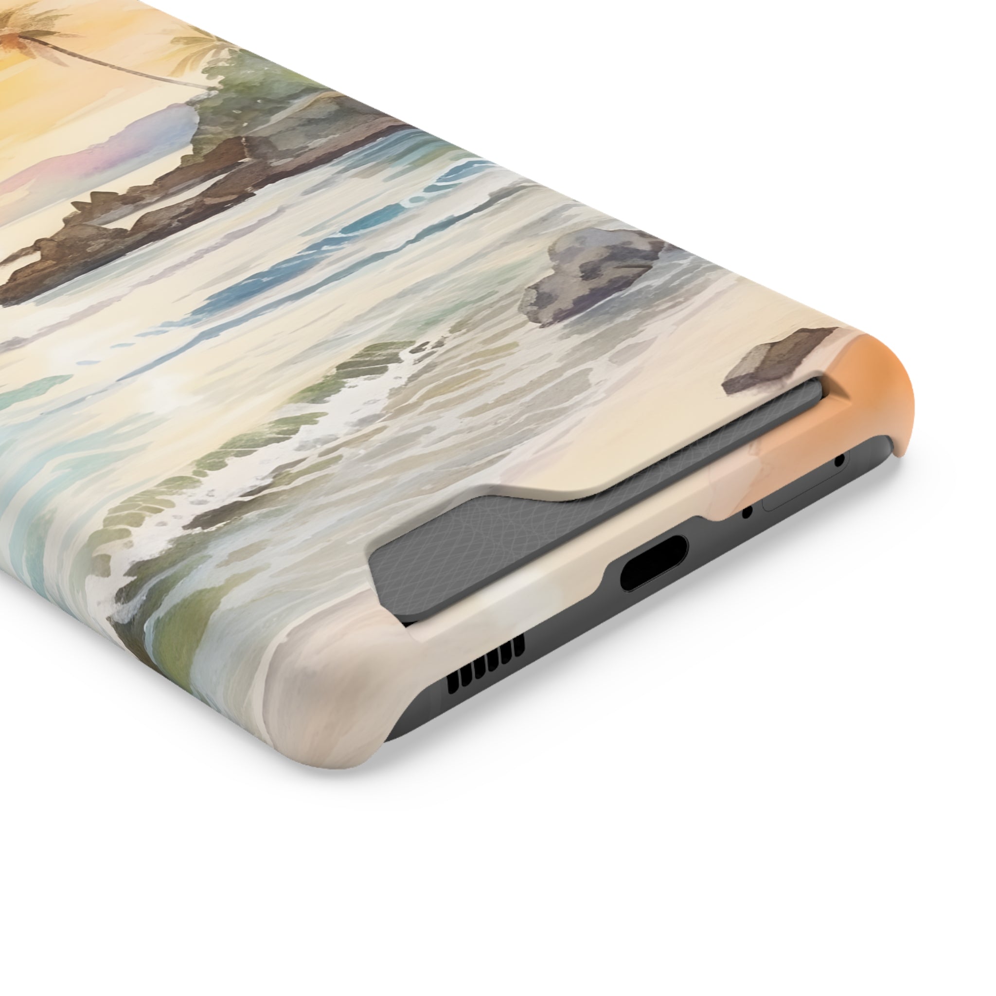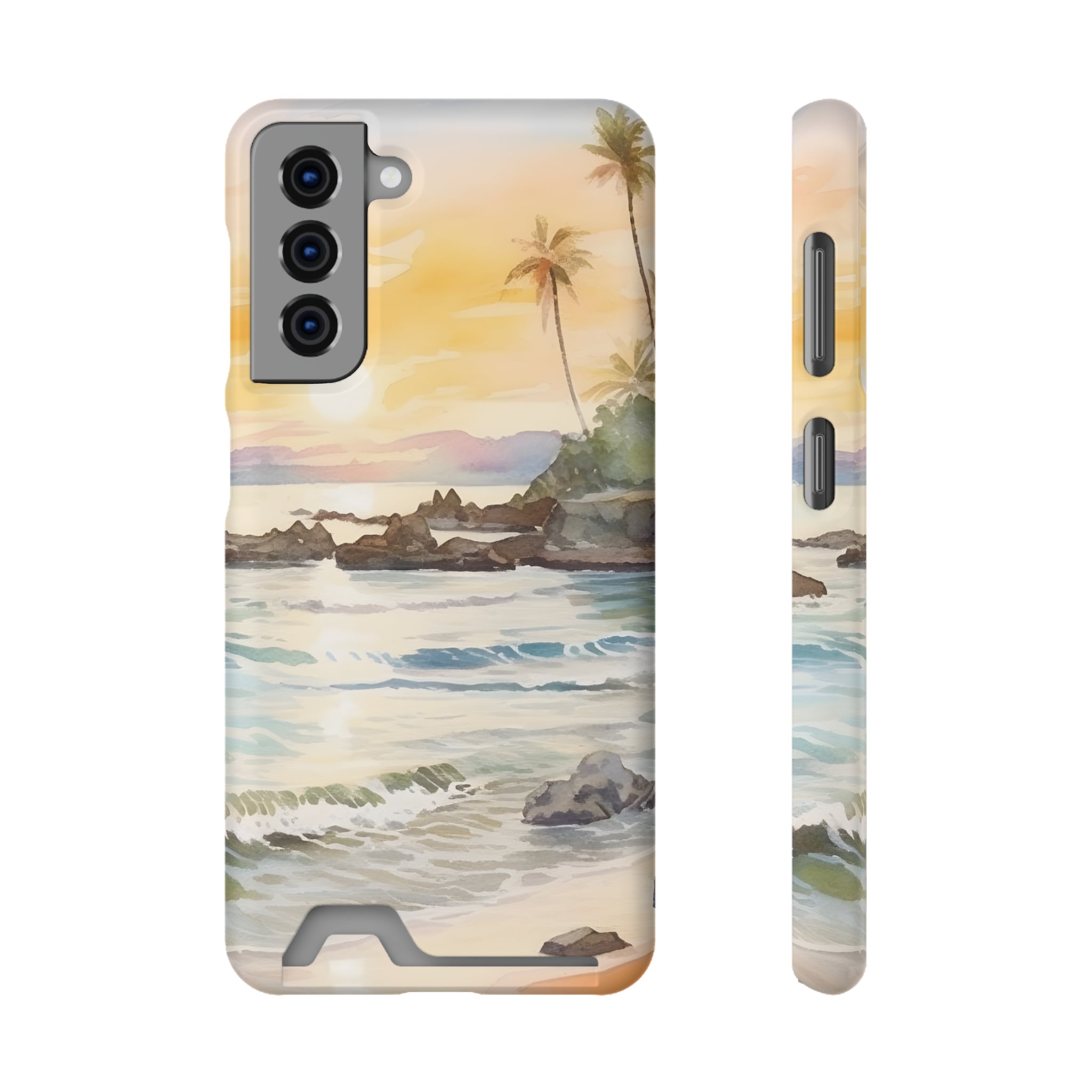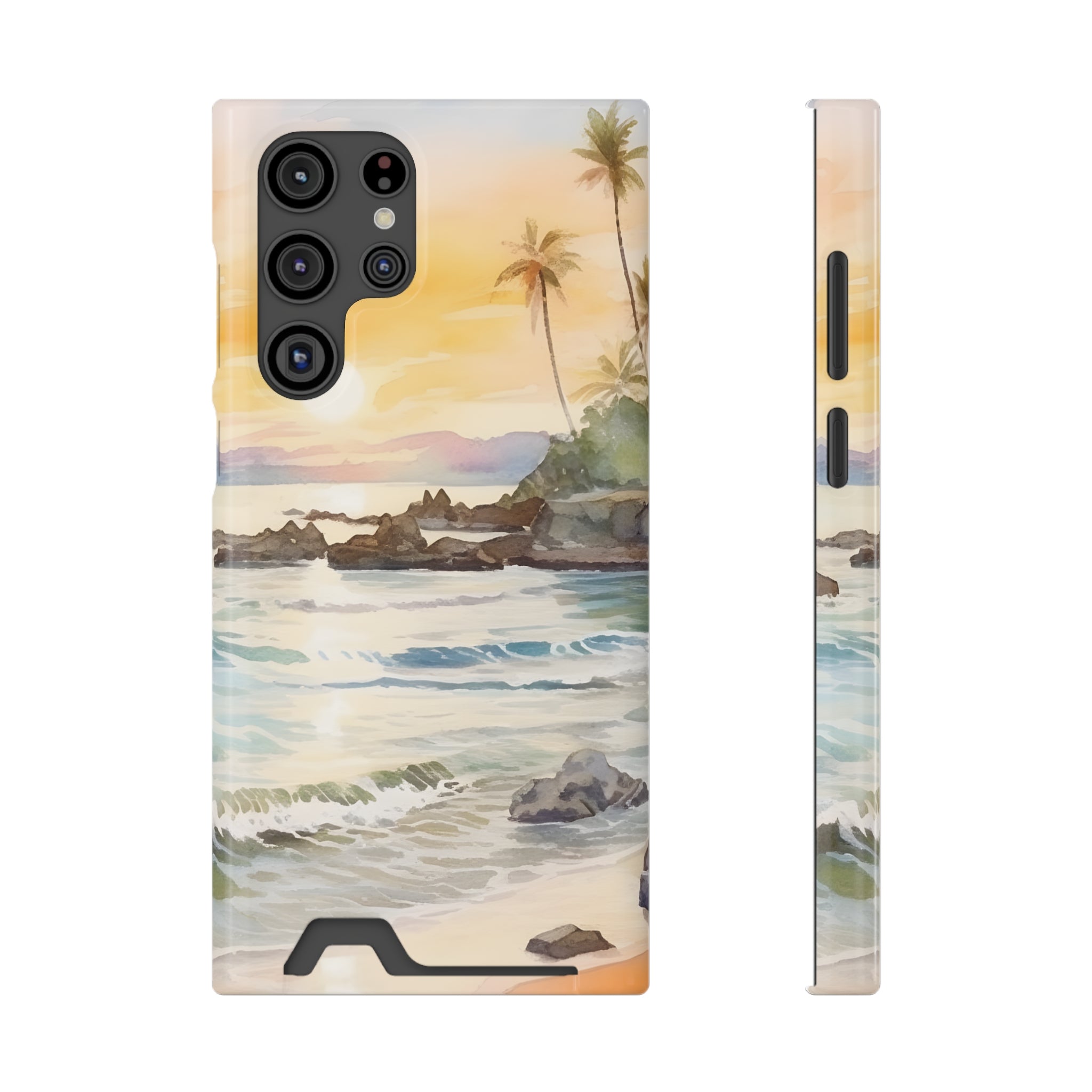 Hawaii Sunset Phone Case With Card Holder Tropical Beach