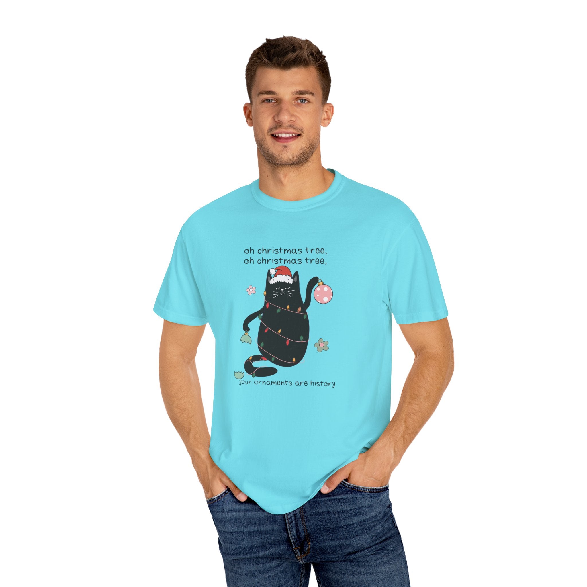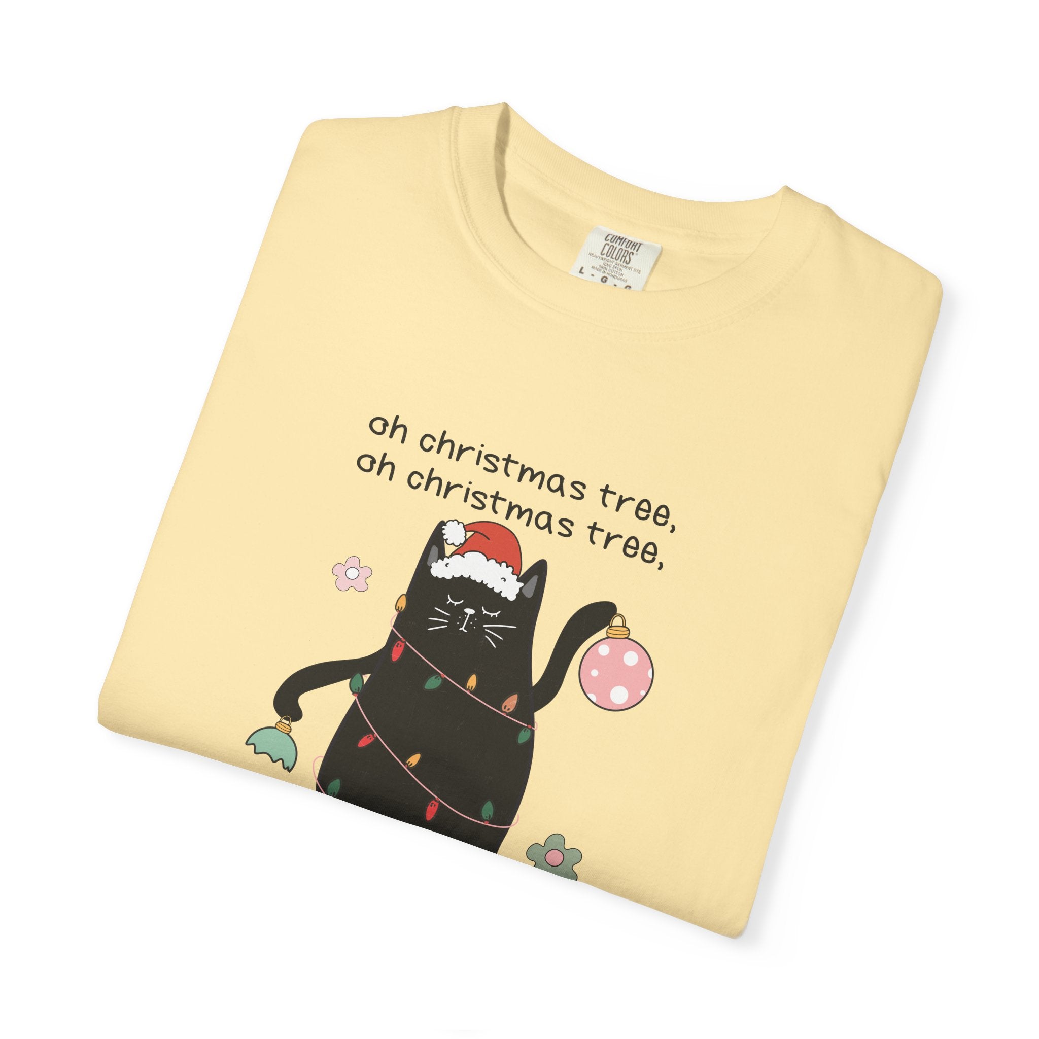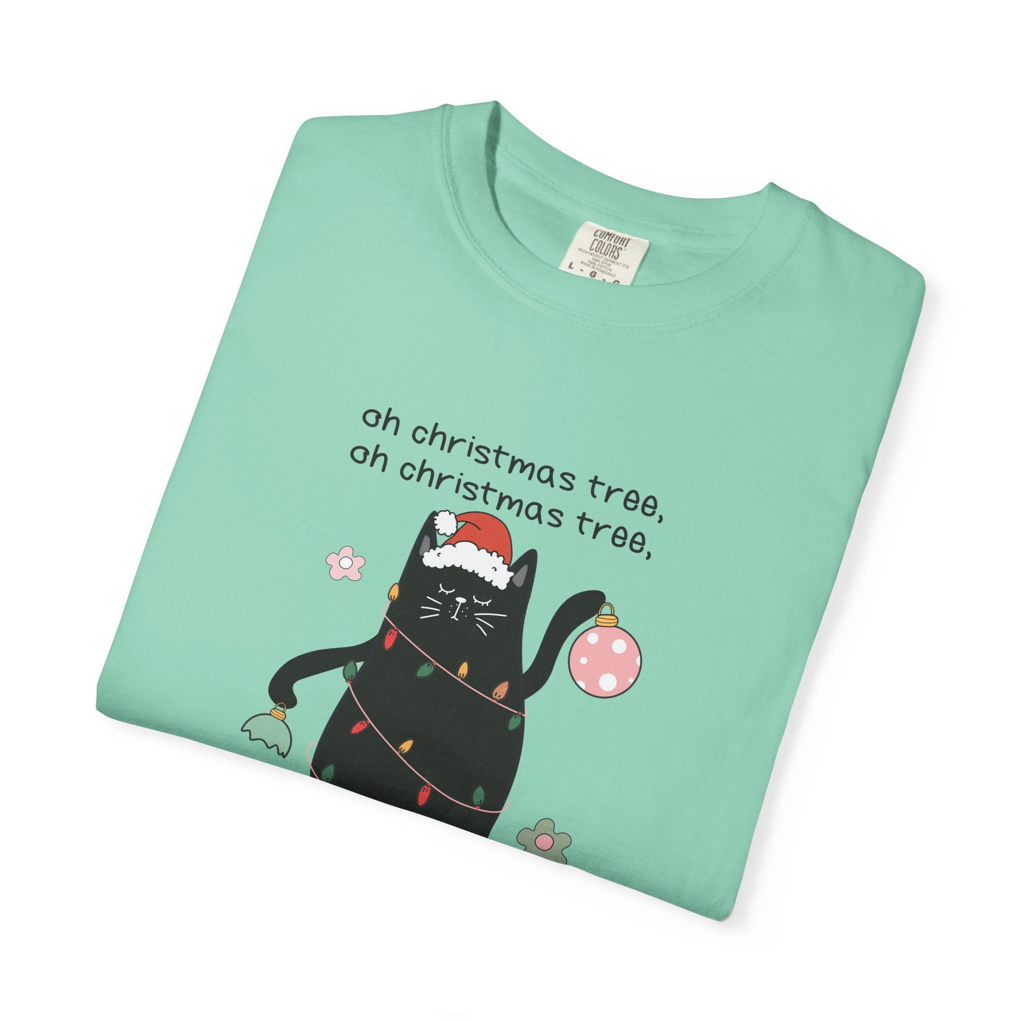 Funny Christmas Cat Unisex Garment-Dyed T-shirt for Cat Lovers