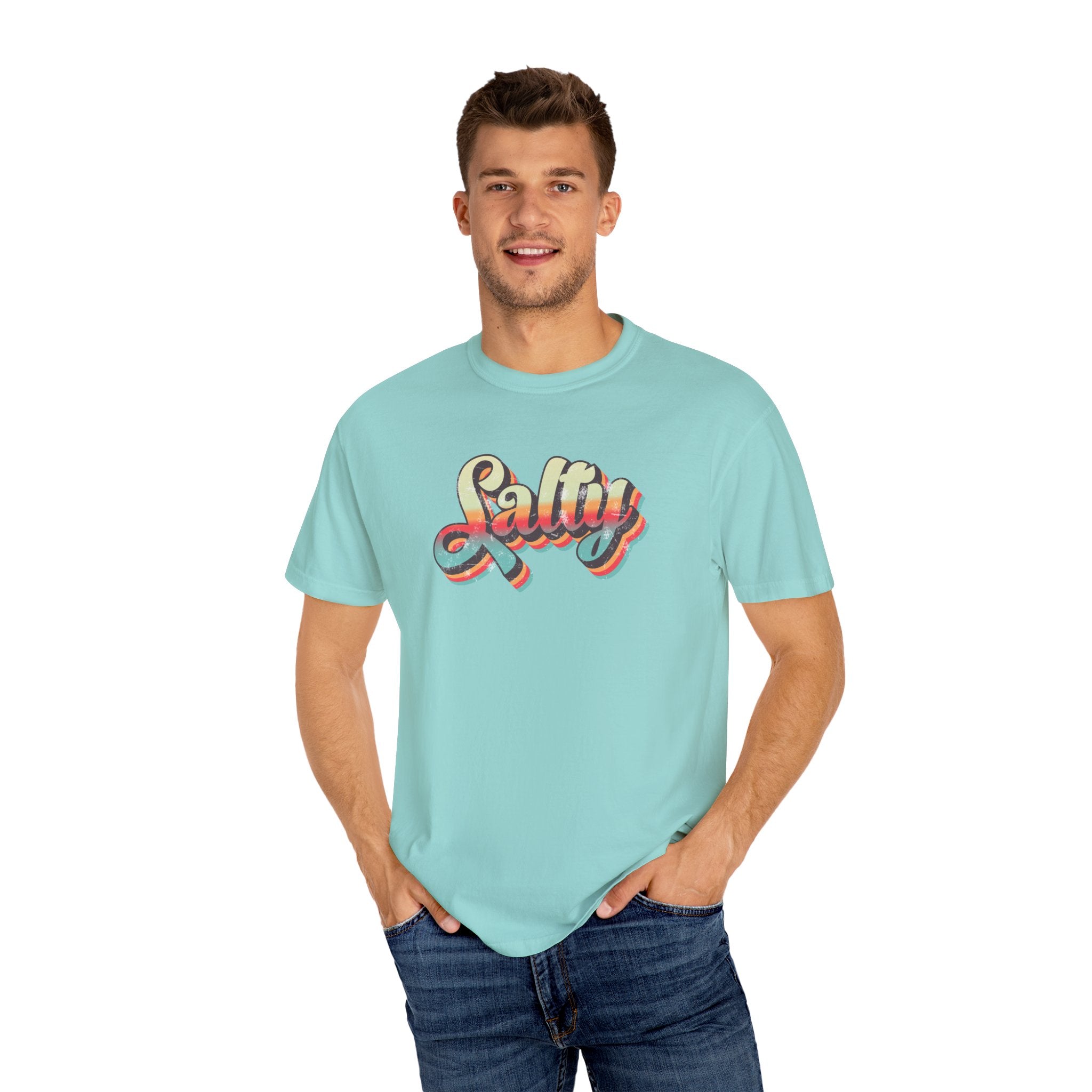 Salty t-shirt - Comfort Colors introduces its garment-dyed t-shirt; a fully customizable tee made 100% with ring-spun cotton. The soft-washed, garment-dyed fabric brings extra coziness to your wardrobe while the relaxed fit makes it an excellent daily choice. The double-needle stitching throughout the tee makes it highly durable while the lack of side-seams helps the shirt retain its tubular shape. .: 100% ring-spun cotton .: Medium fabric (6.1 oz/yd² (206.8 g/m²)) .: Relaxed fit