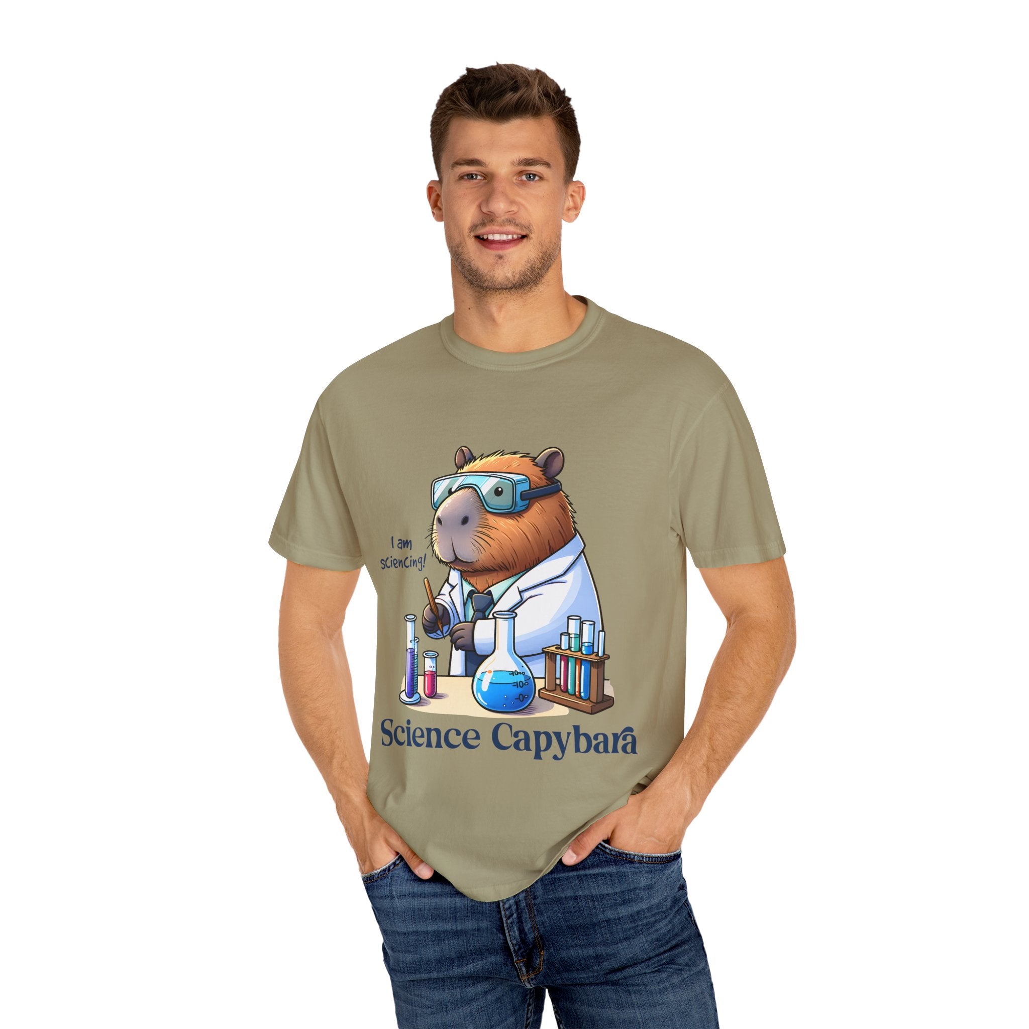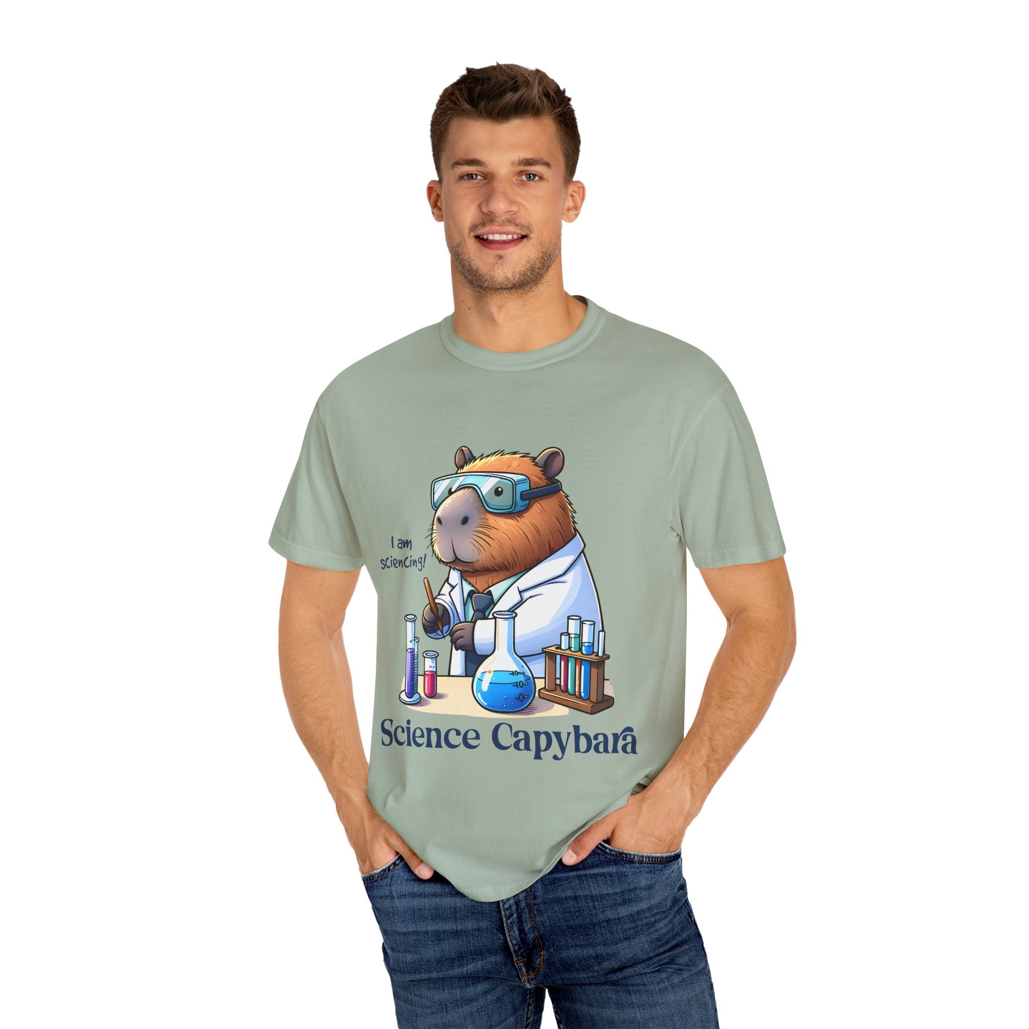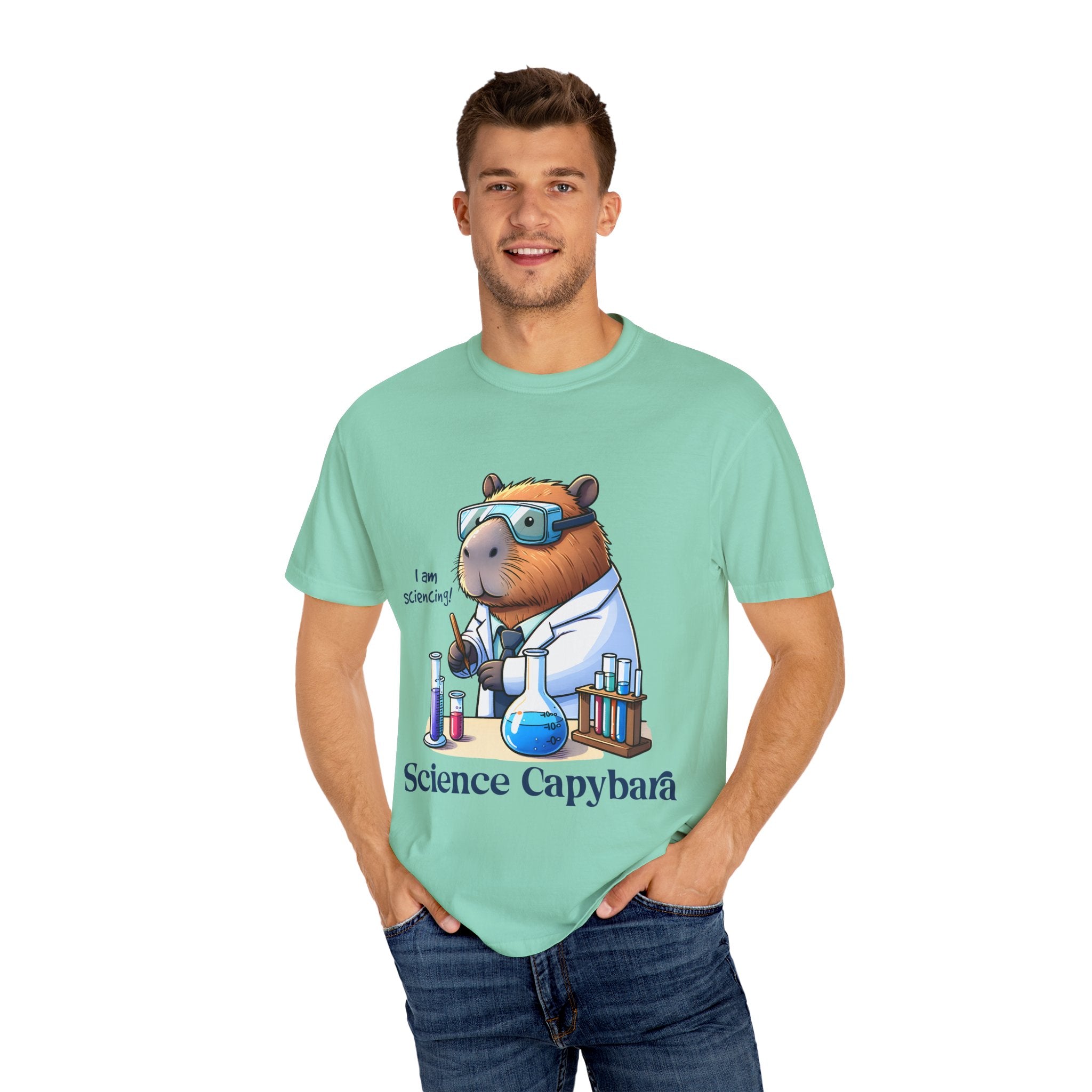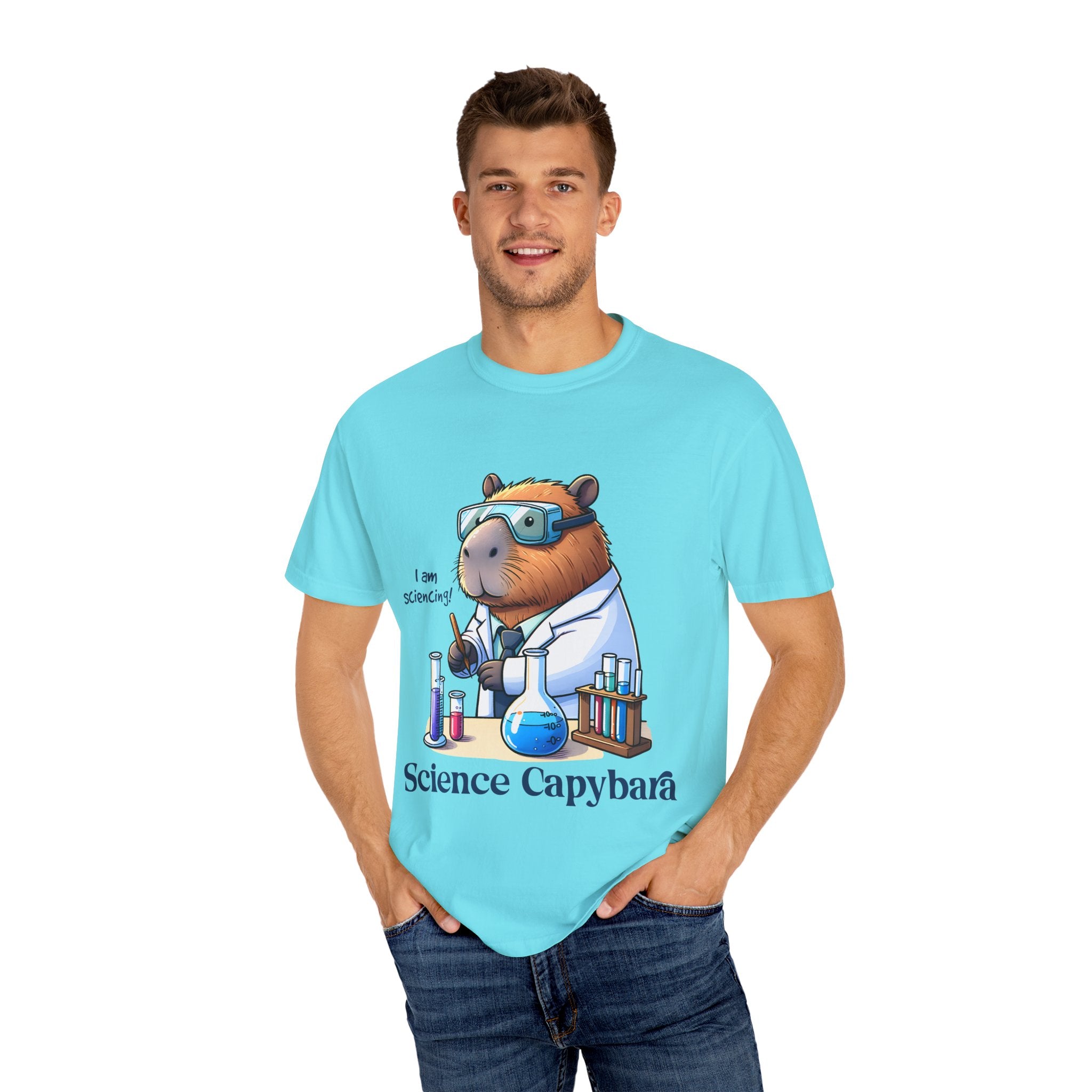 Science Capybara T-shirt, Funny Animal Tee, Cute Science Gift, Unisex Garment-Dyed Shirt, Casual Top, Science Lover Shirt