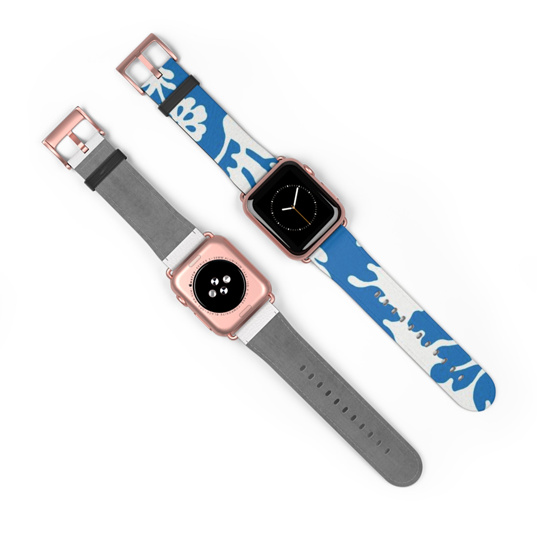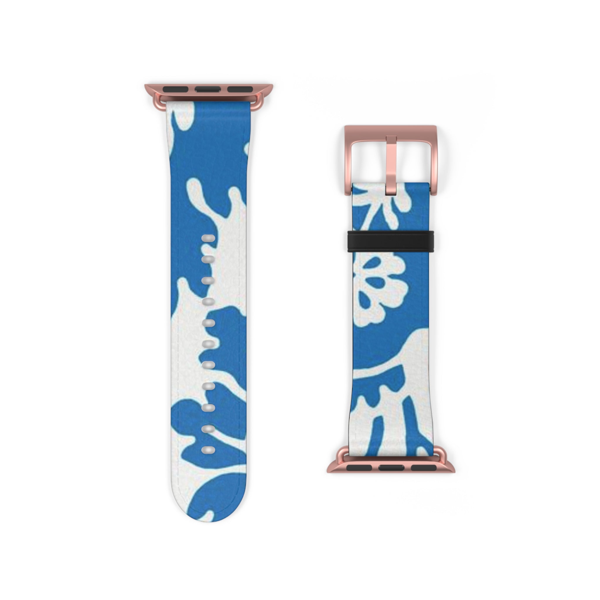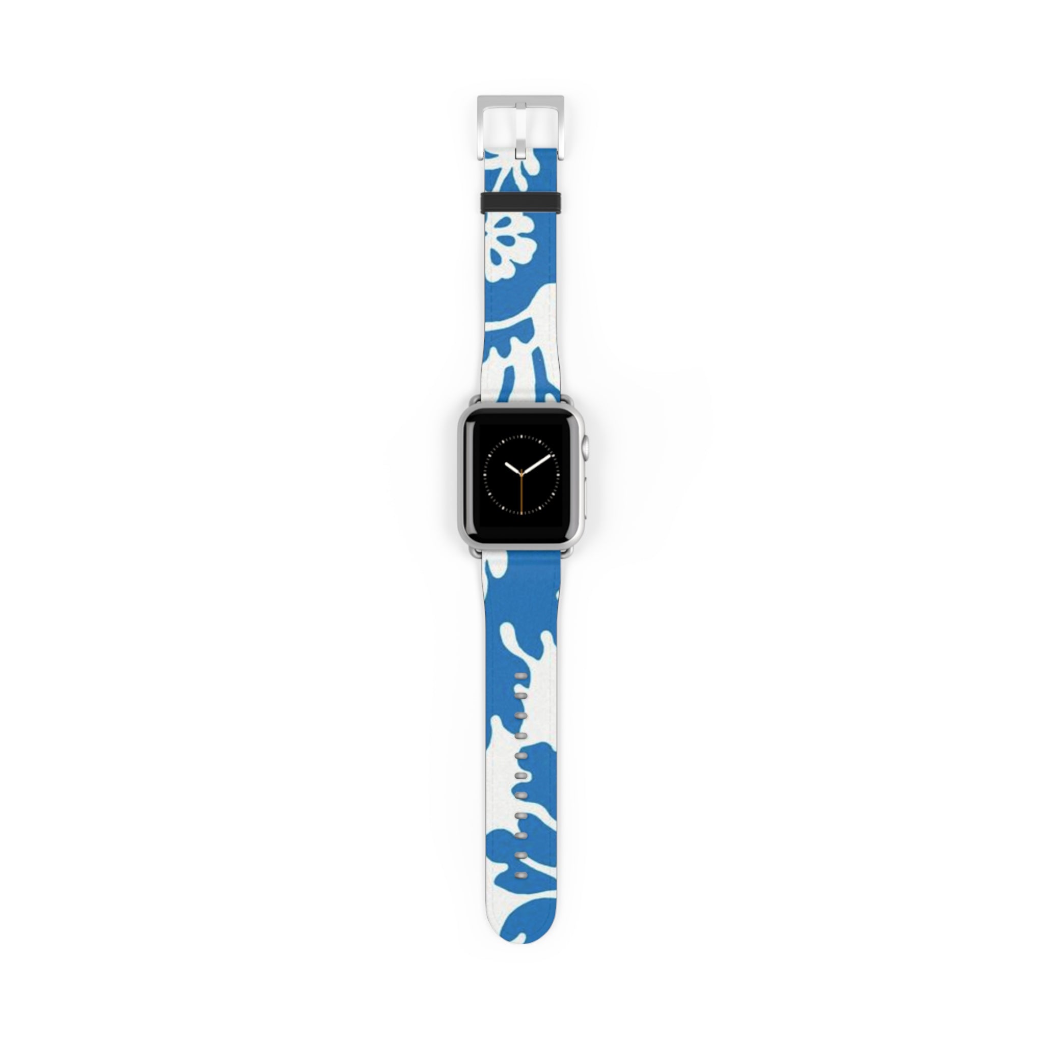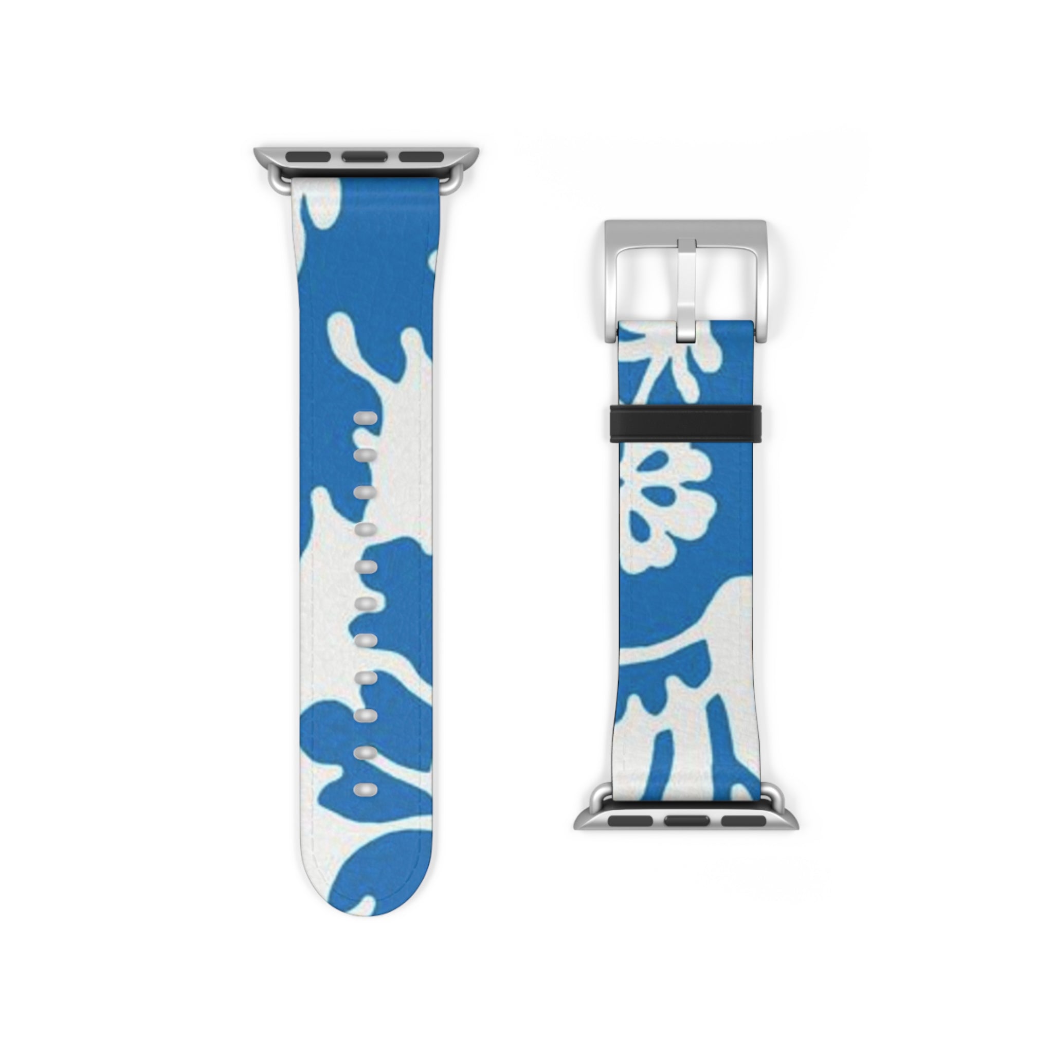 Apple Watch Band Series Ultra and SE Two Sizes Available 38mm-41mm or 42mm-45mm For Women Vegan Faux Leather Blue Floral Classic Design