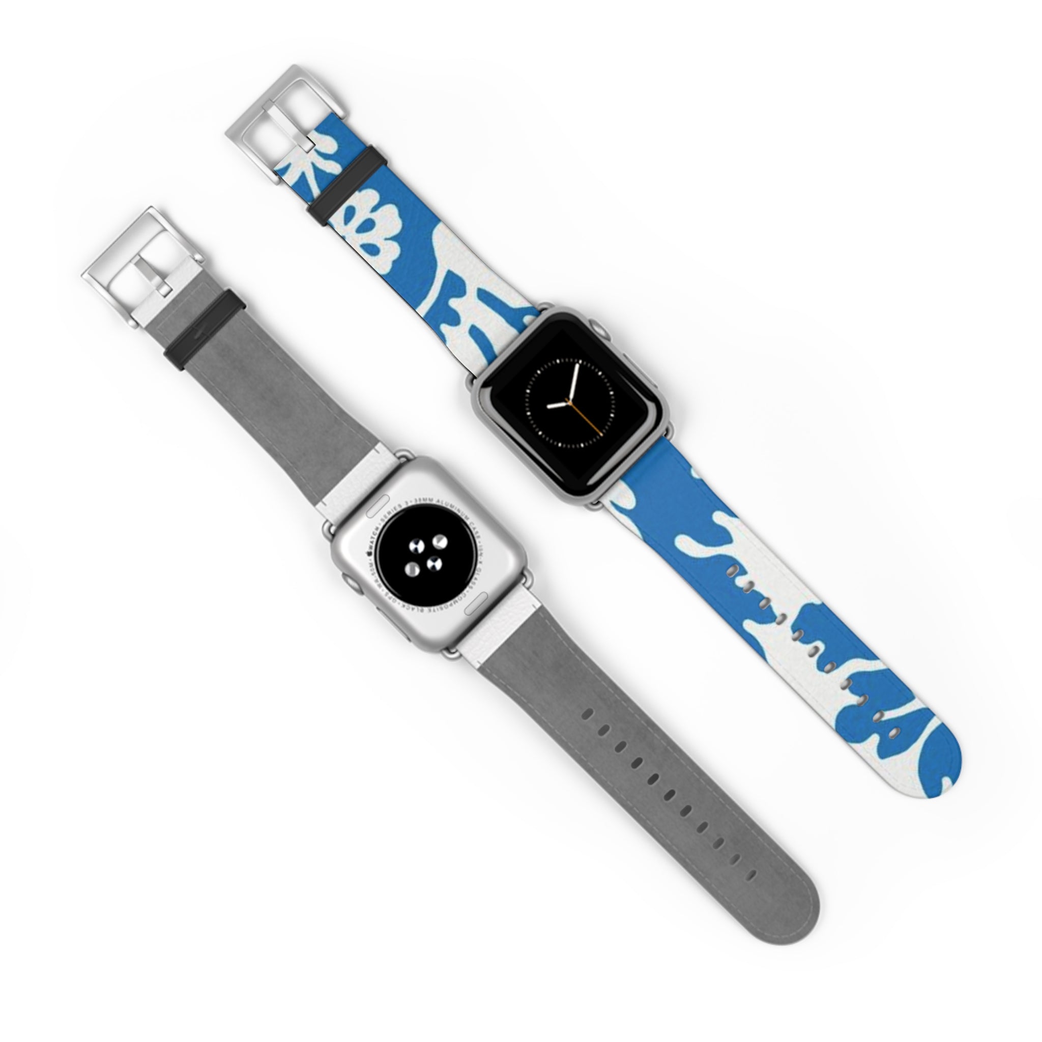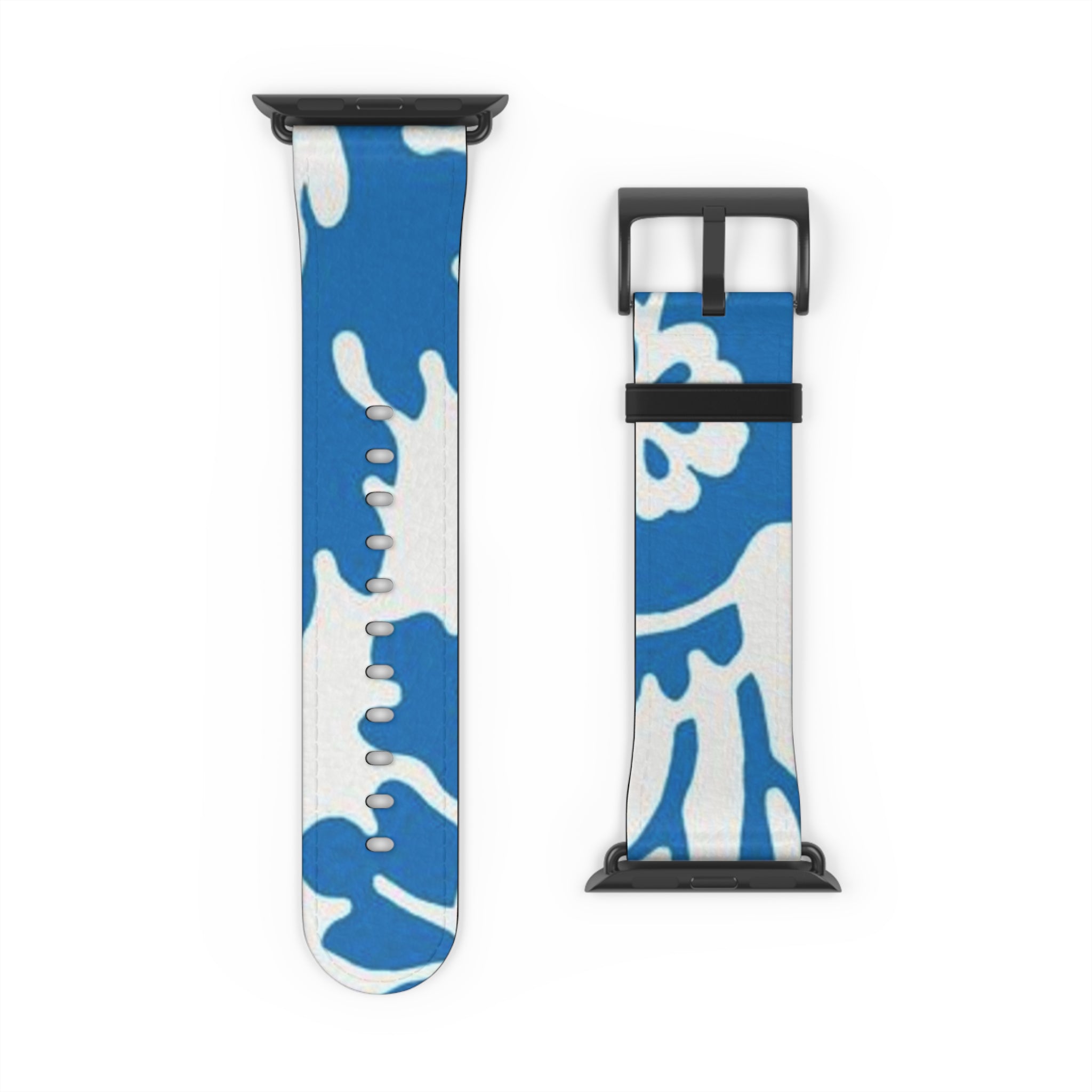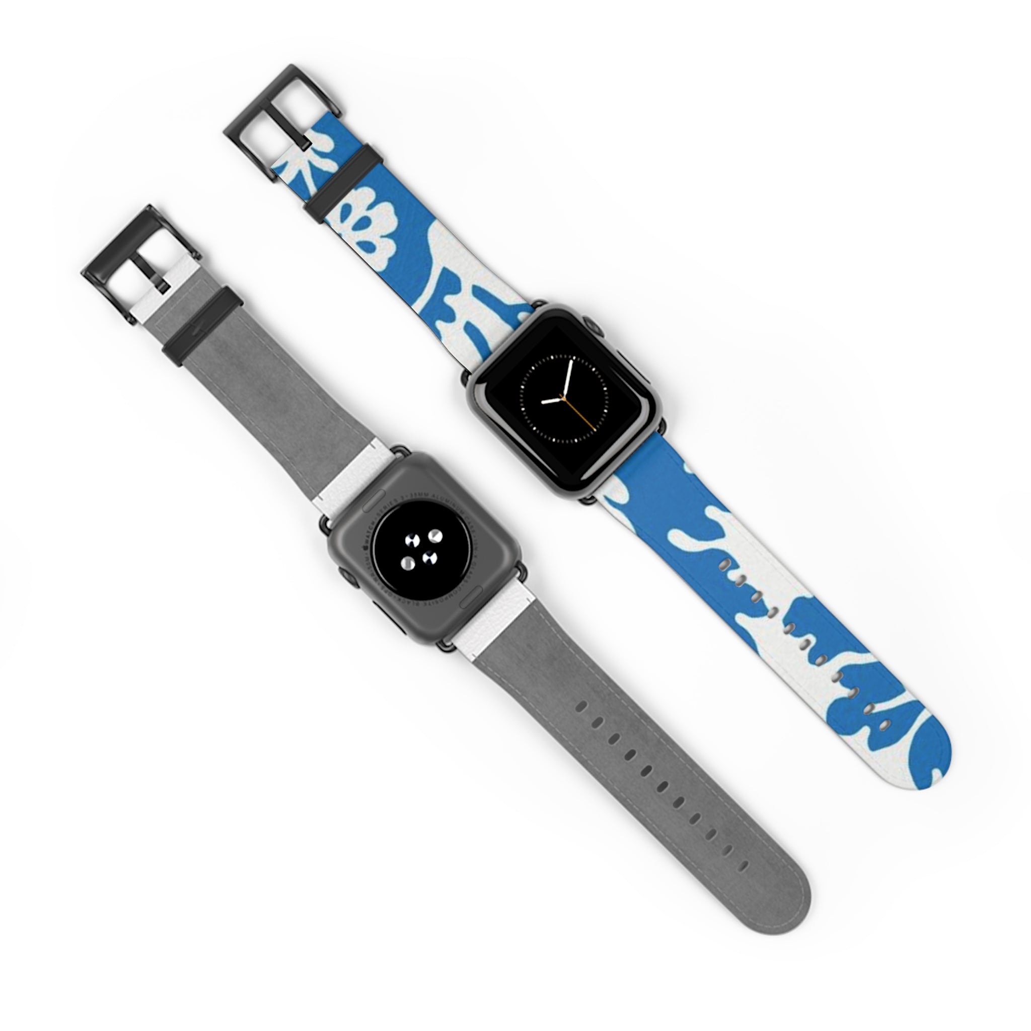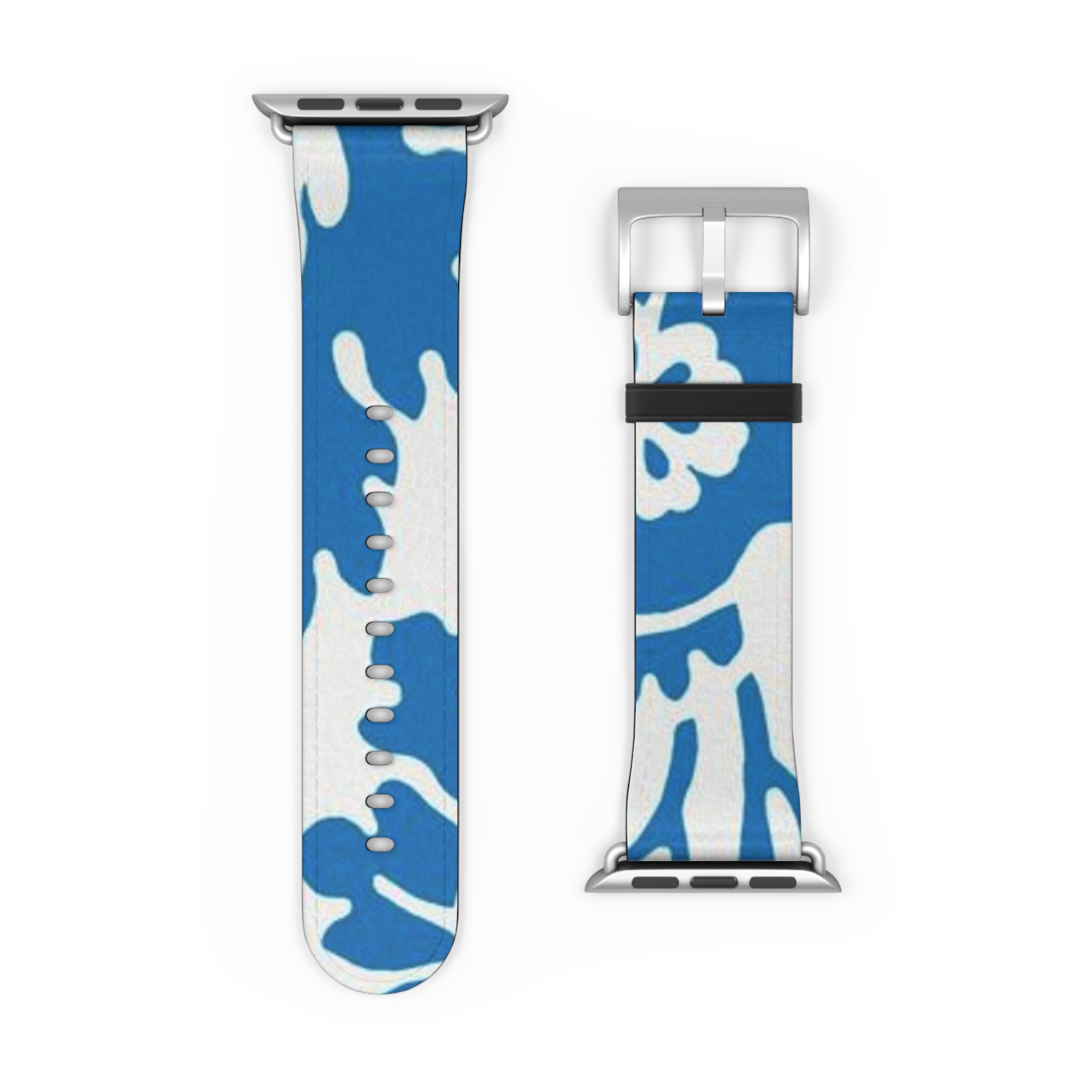 Apple Watch Band Series Ultra and SE Two Sizes Available 38mm-41mm or 42mm-45mm For Women Vegan Faux Leather Blue Floral Classic Design