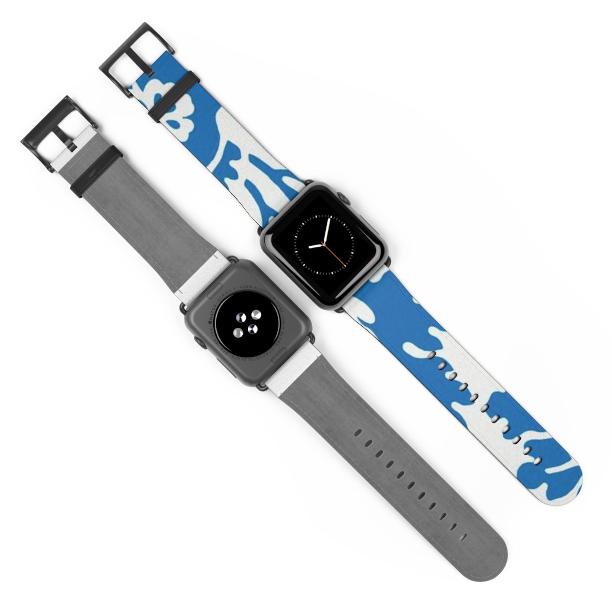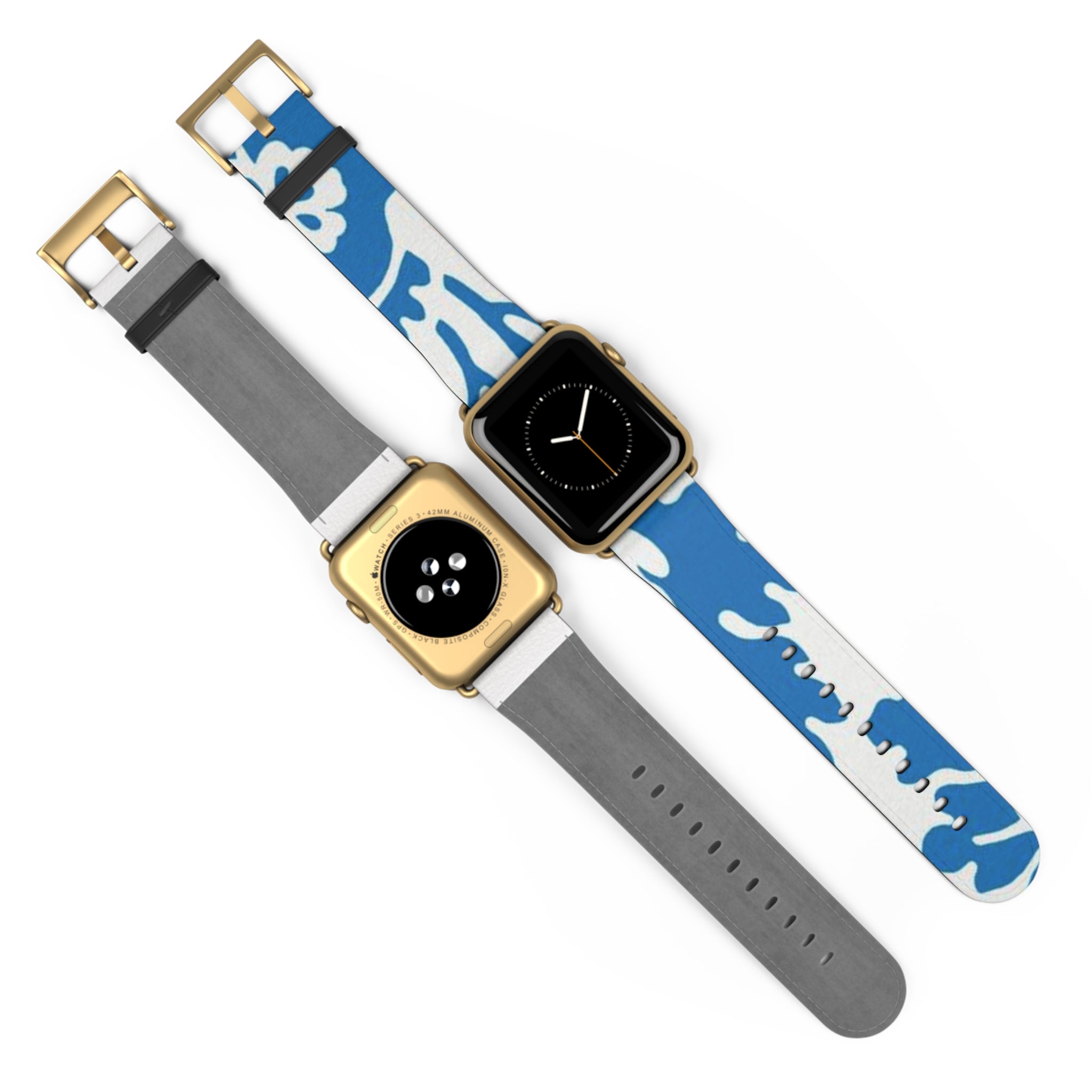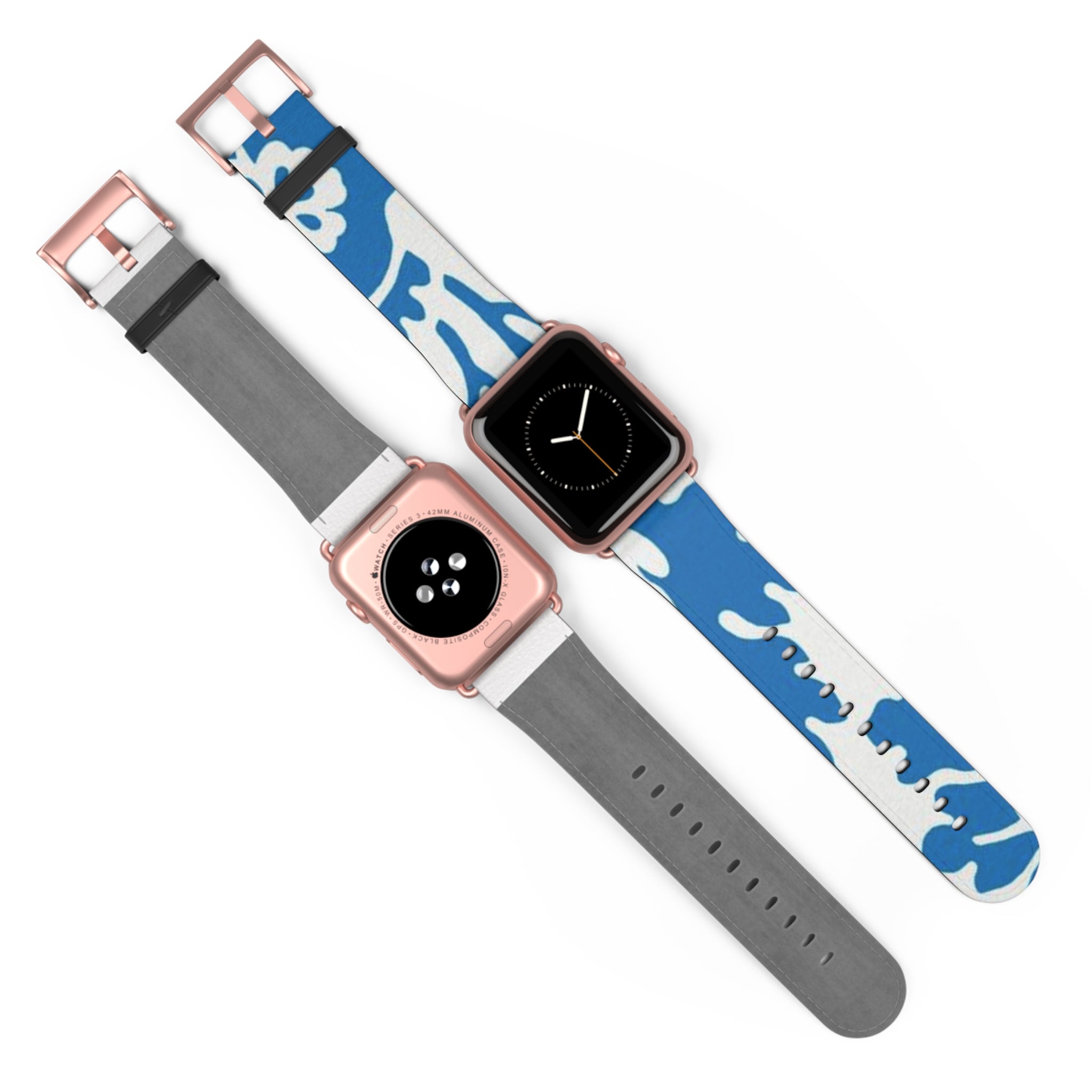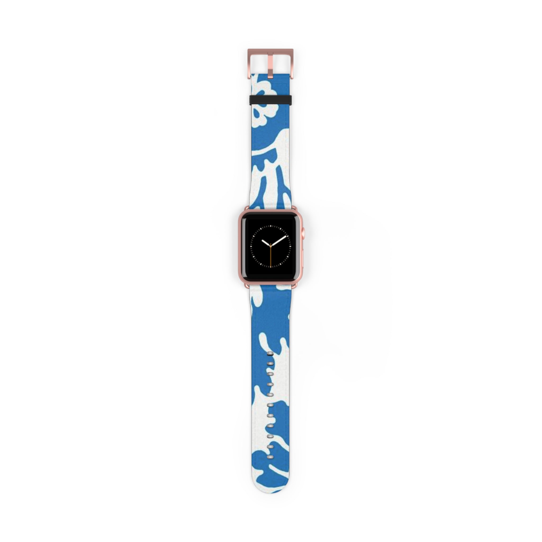 Apple Watch Band Series Ultra and SE Two Sizes Available 38mm-41mm or 42mm-45mm For Women Vegan Faux Leather Blue Floral Classic Design
