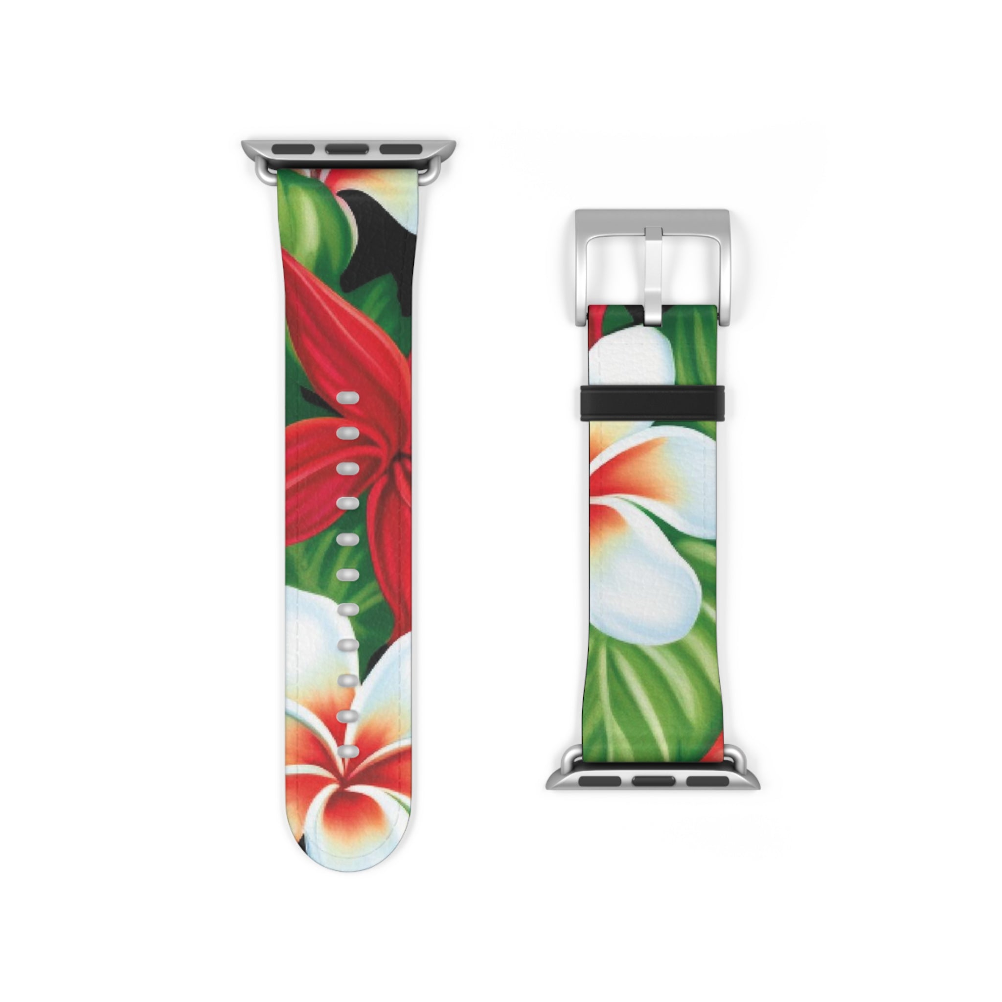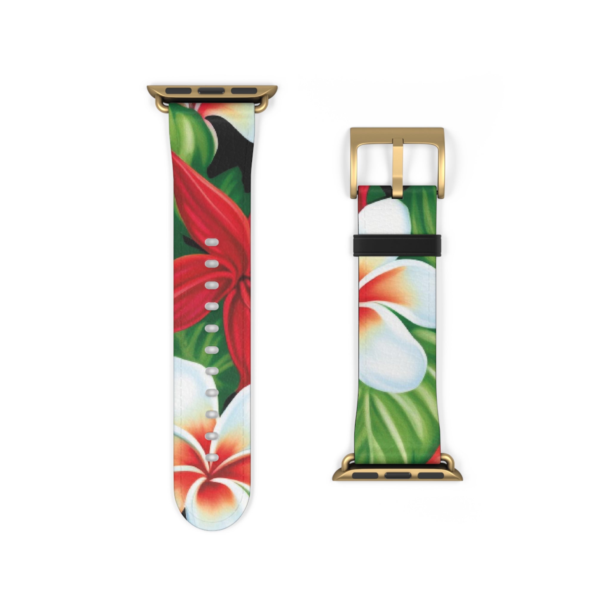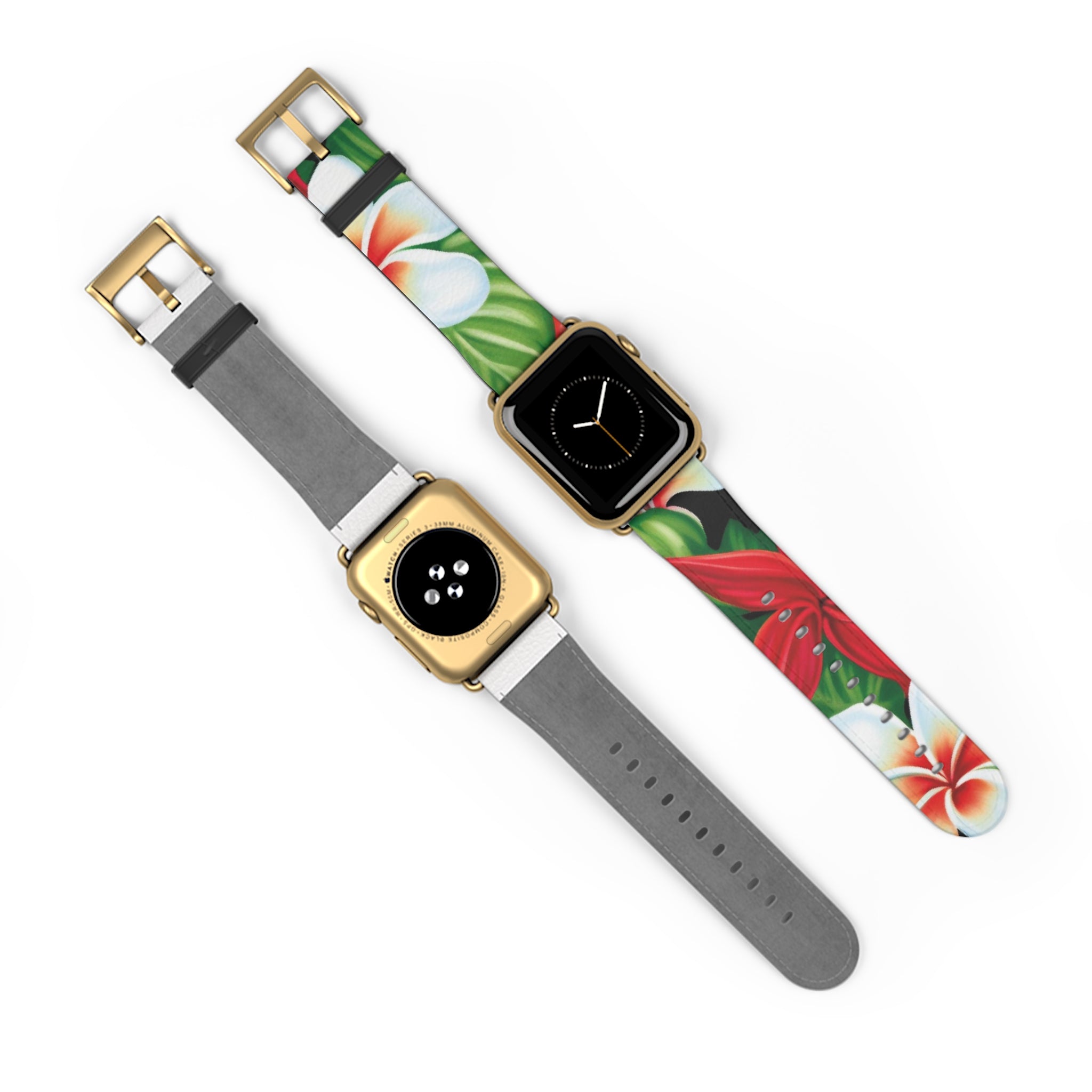 Watch Band Hawaii Plumeria Faux Leather Replacement Watch Band Gift for Her