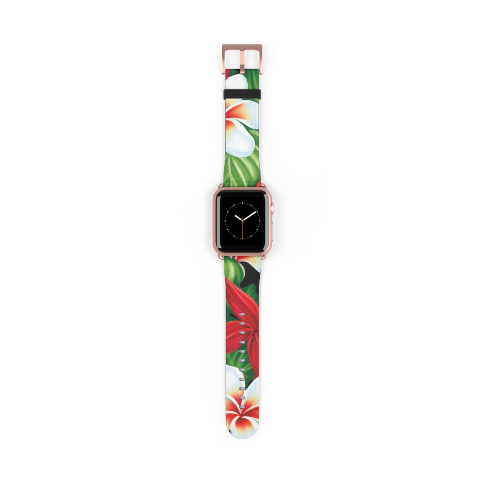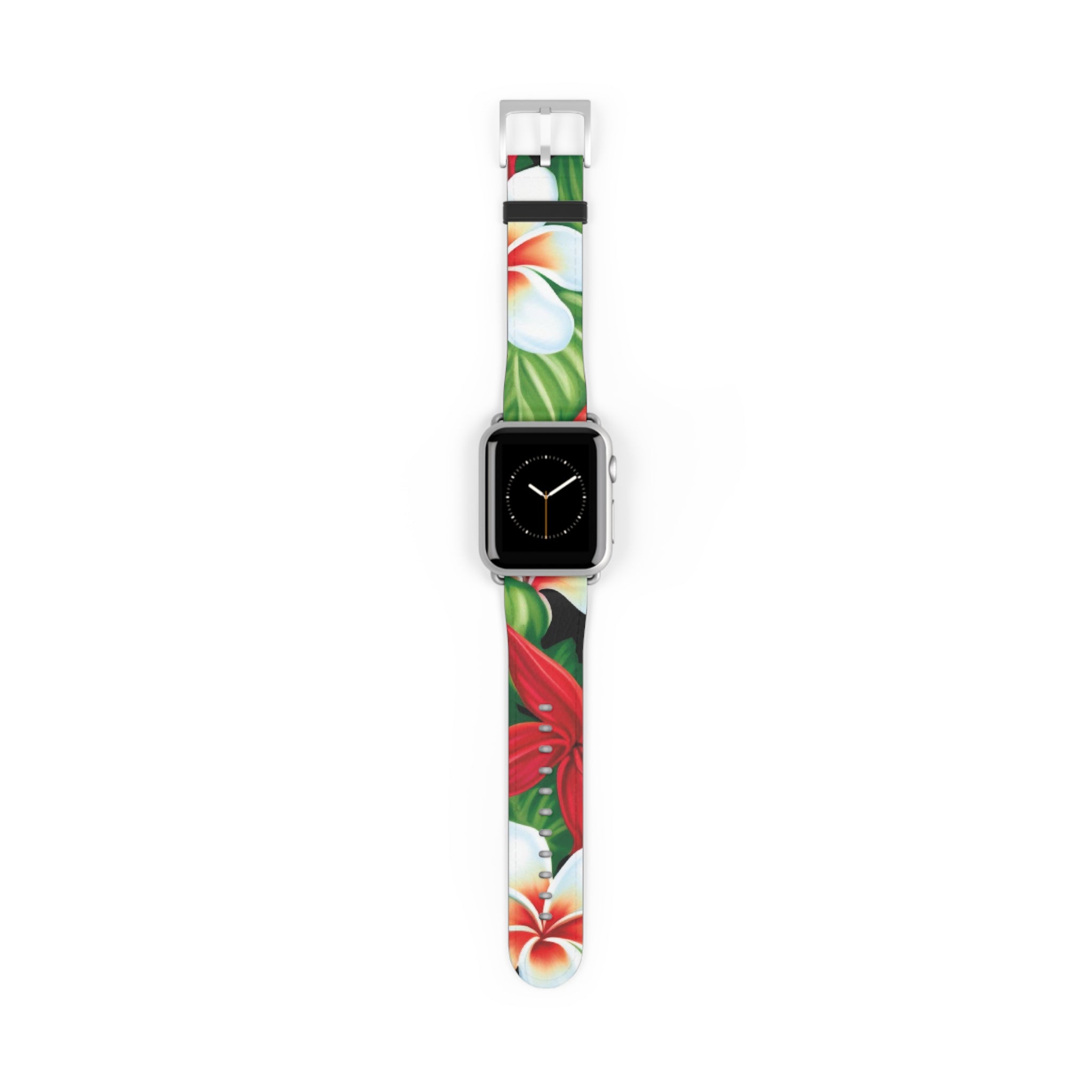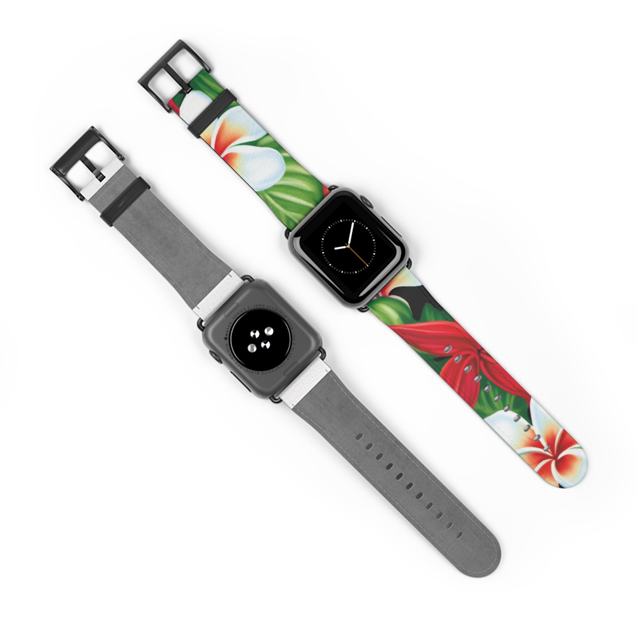 Watch Band Hawaii Plumeria Faux Leather Replacement Watch Band Gift for Her