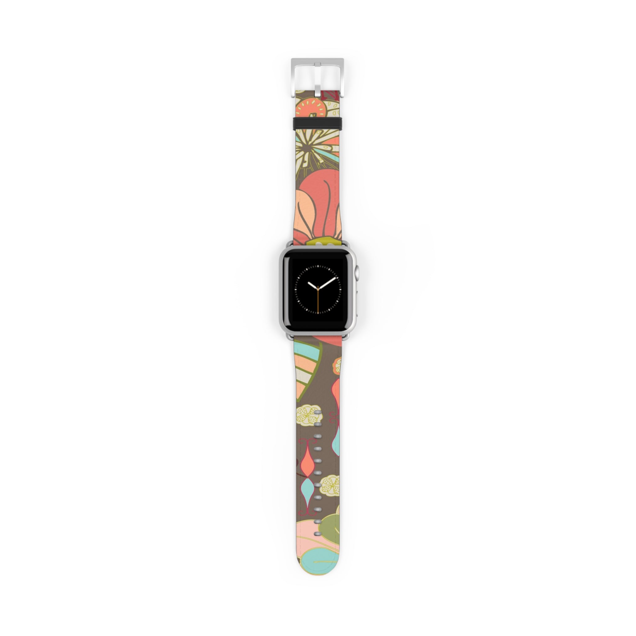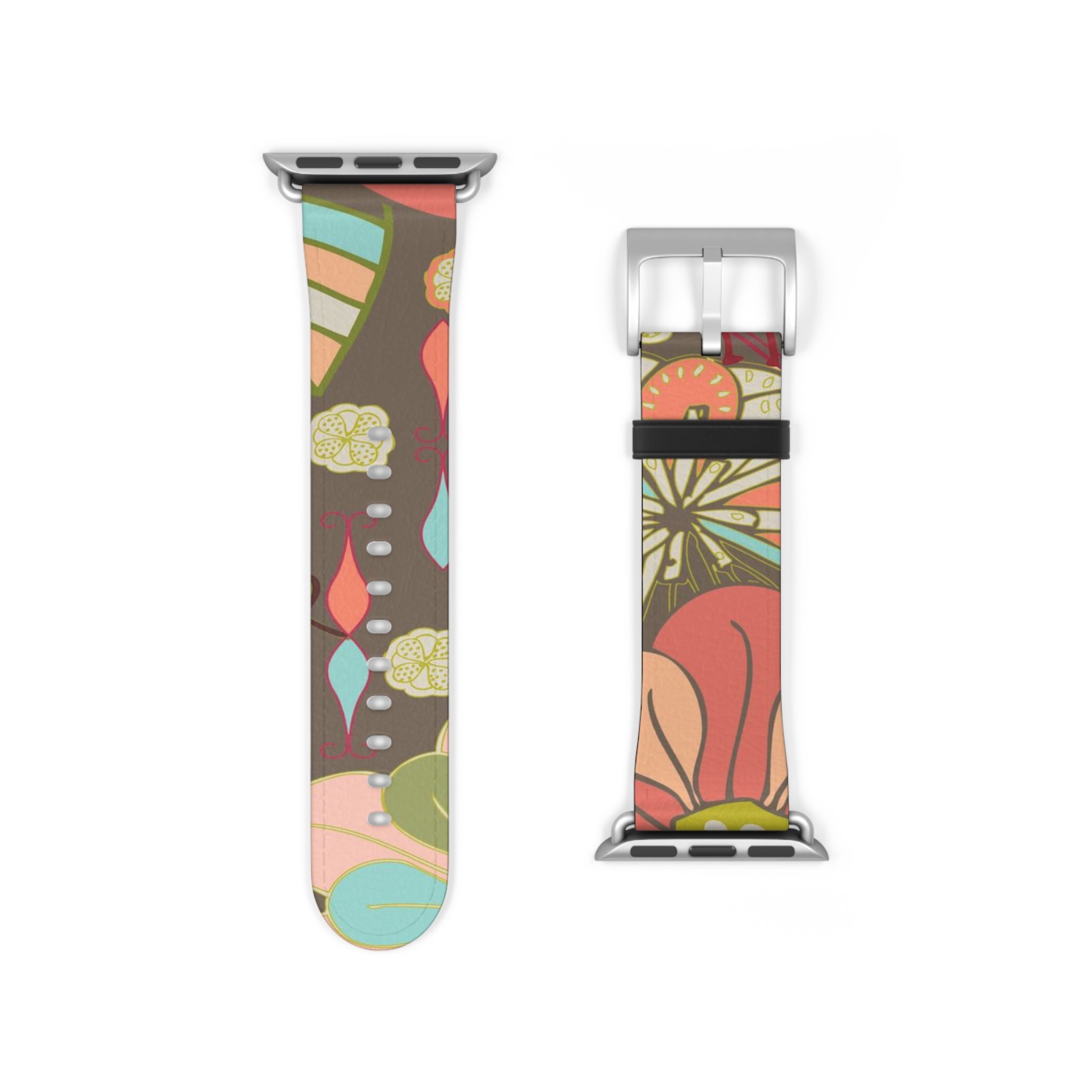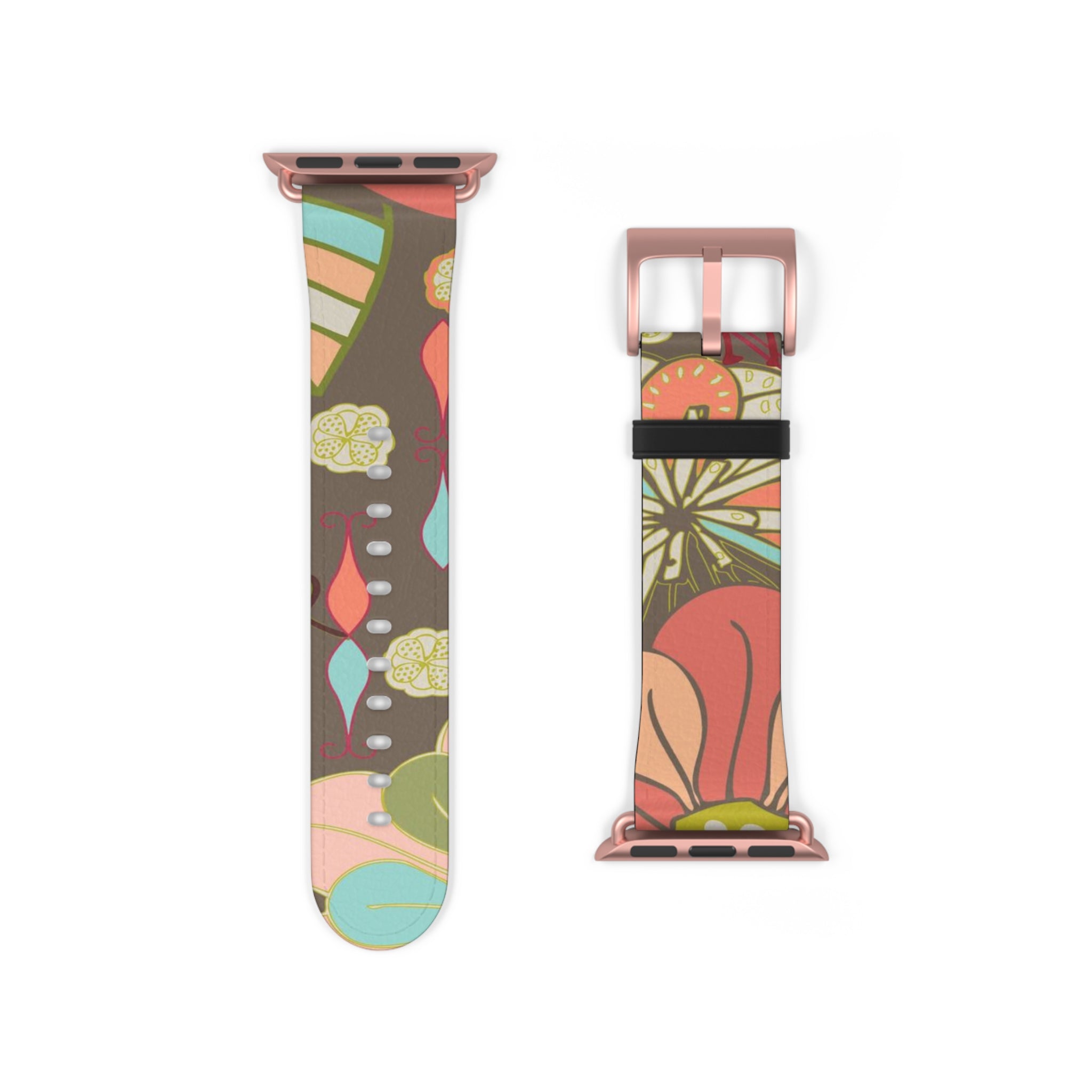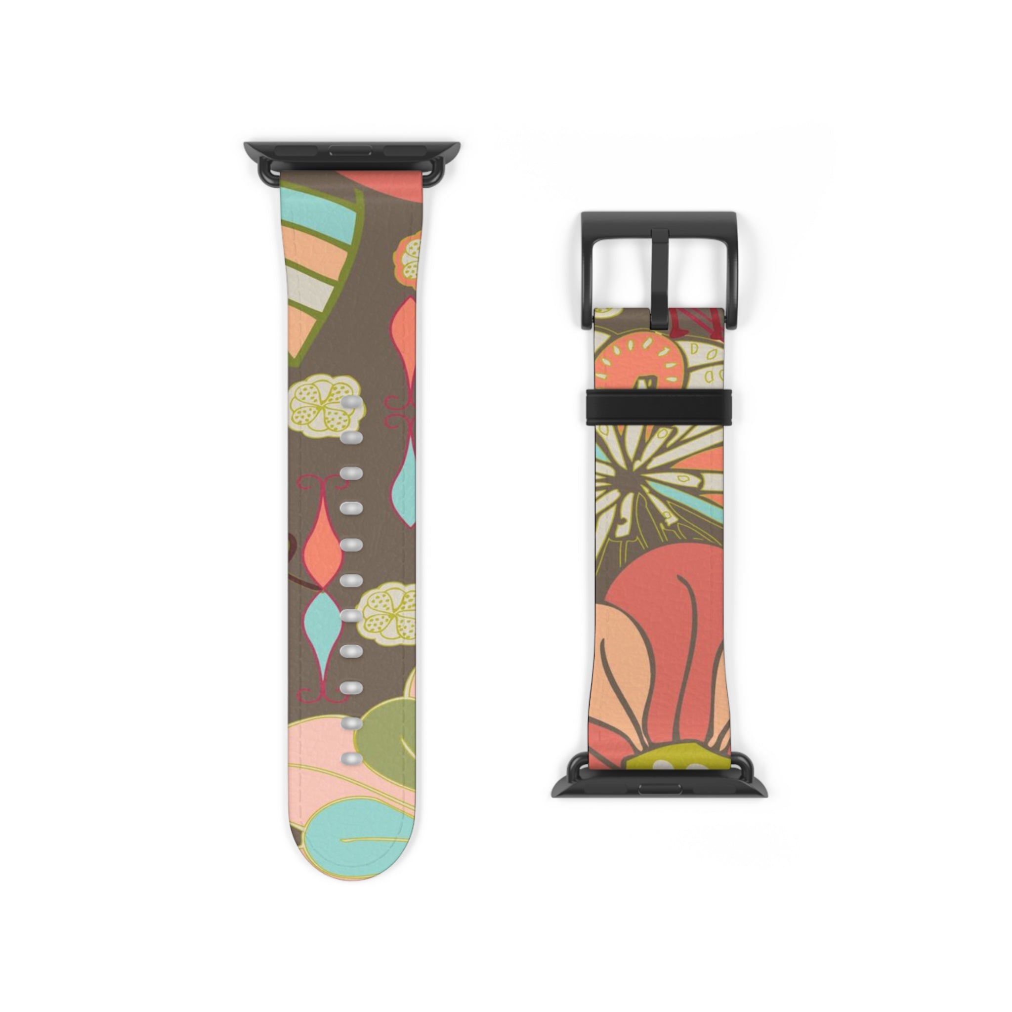 Apple Watch Band Series Ultra and SE Two Sizes Available 38mm-41mm or 42mm-45mm For Women Vegan Faux Leather Floral Brown Boho Design