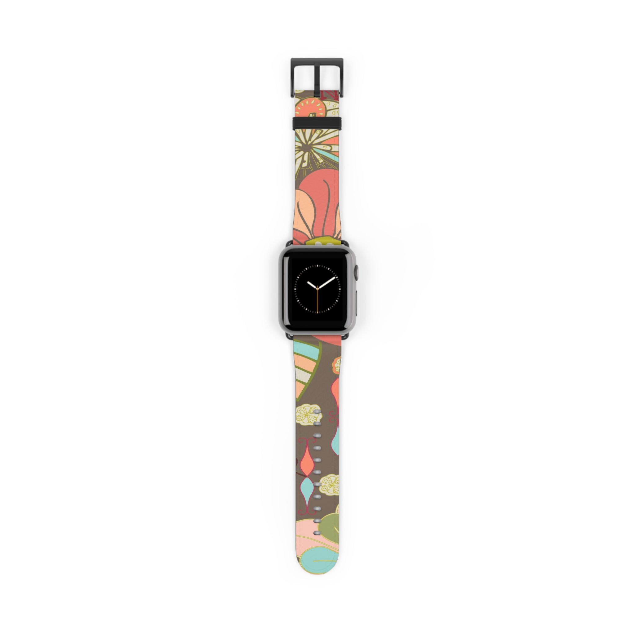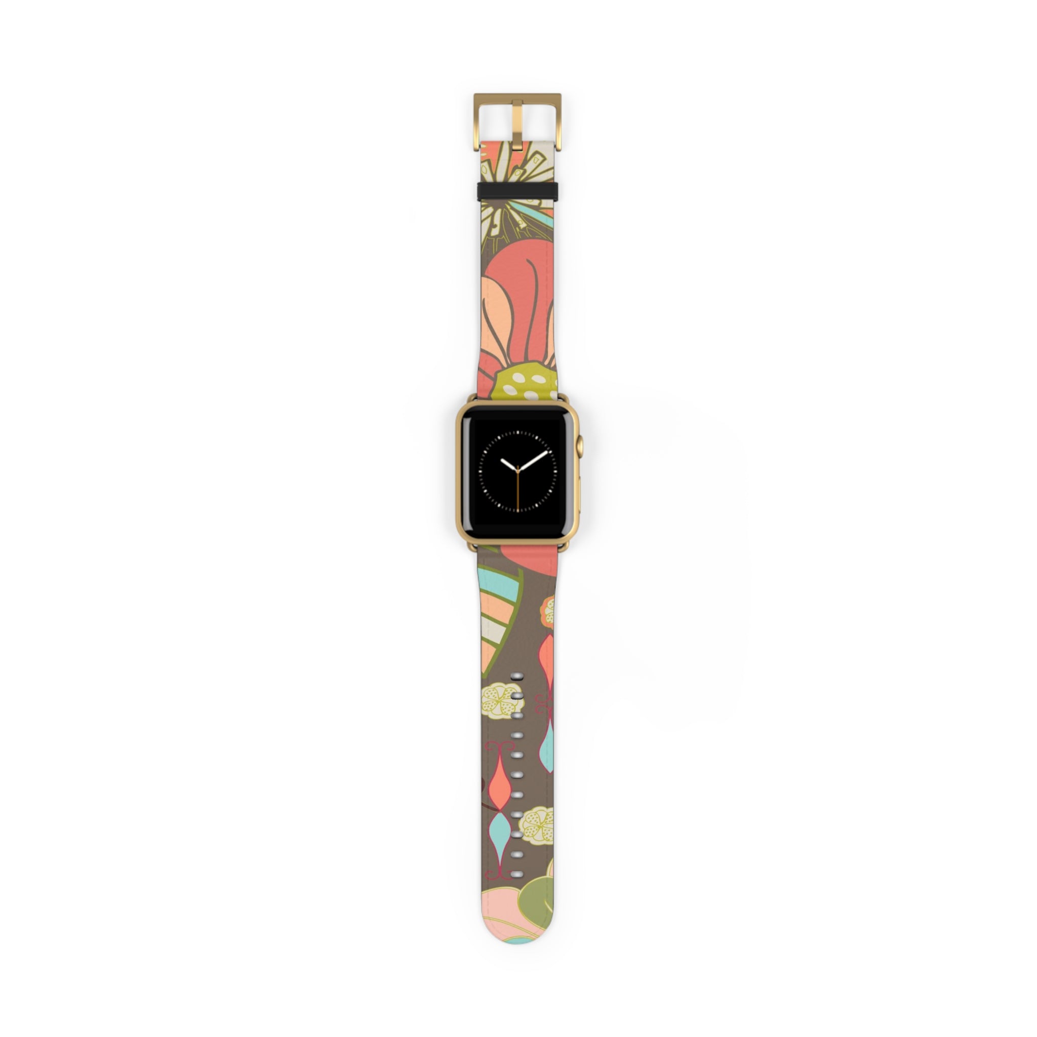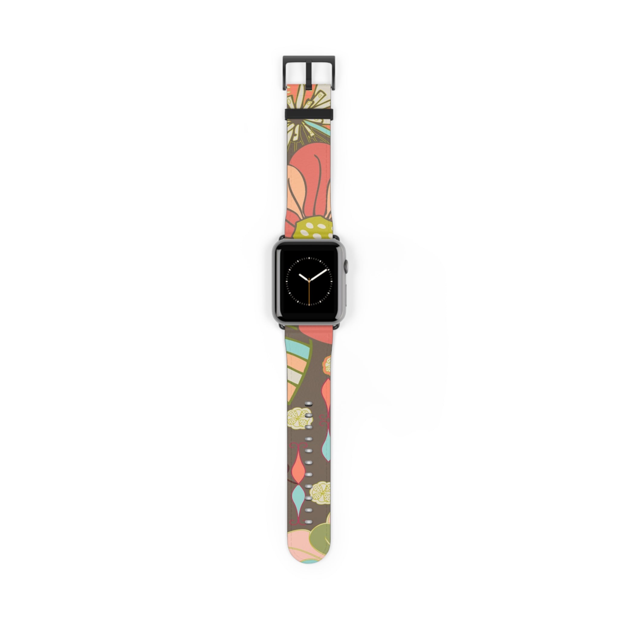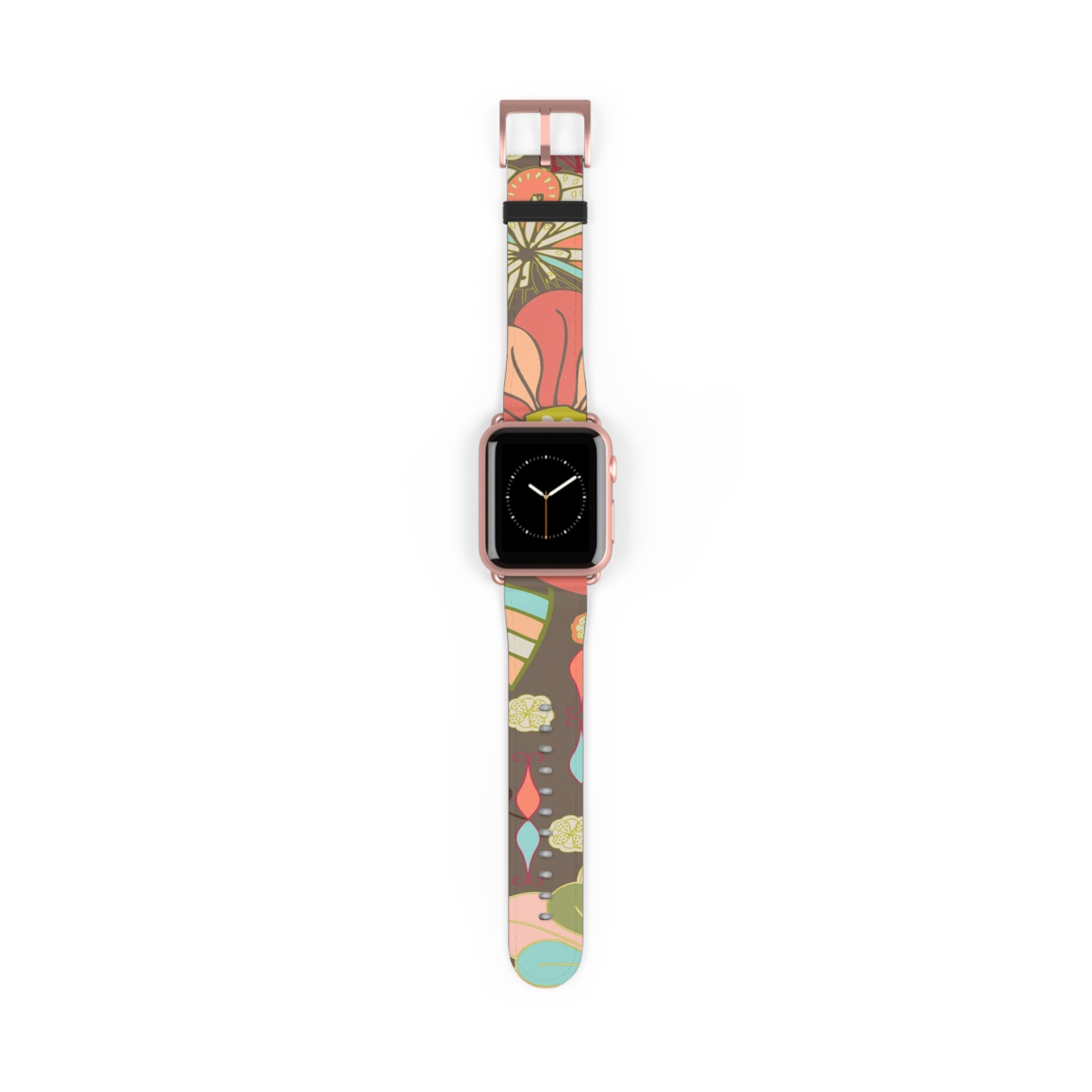 Apple Watch Band Series Ultra and SE Two Sizes Available 38mm-41mm or 42mm-45mm For Women Vegan Faux Leather Floral Brown Boho Design