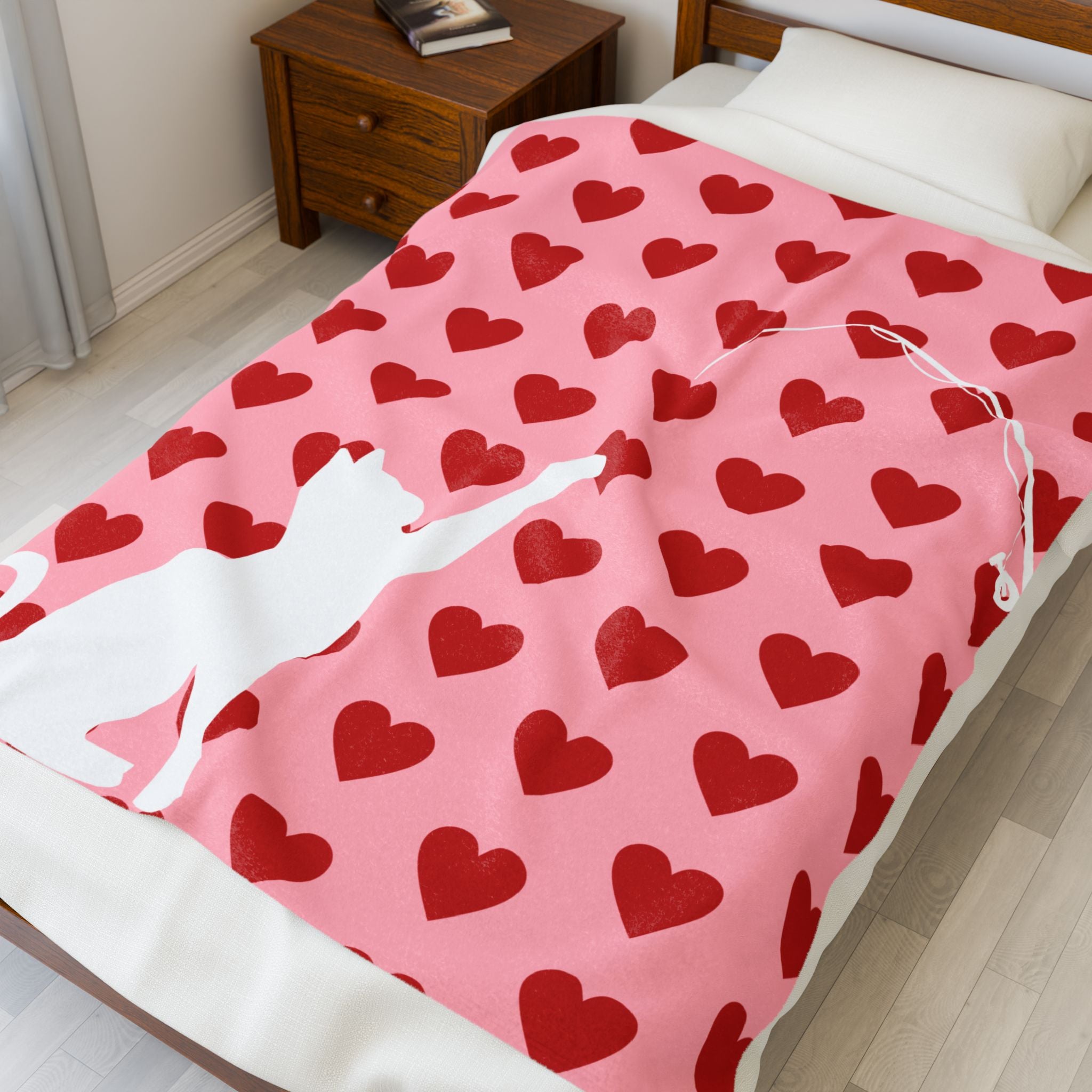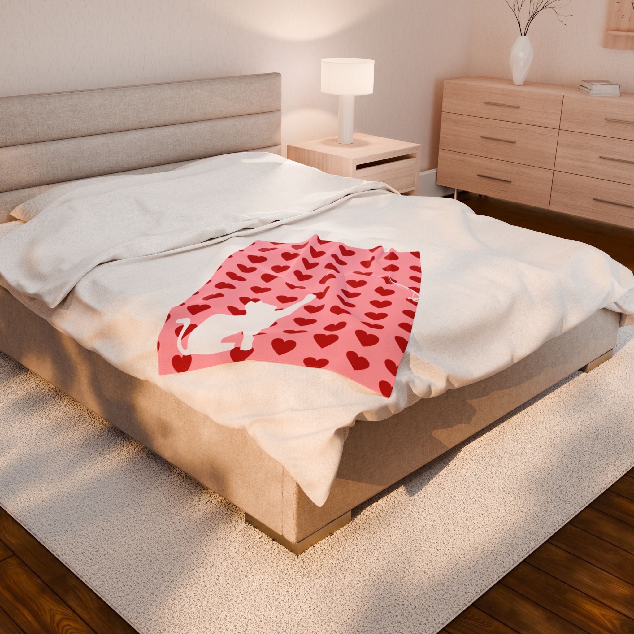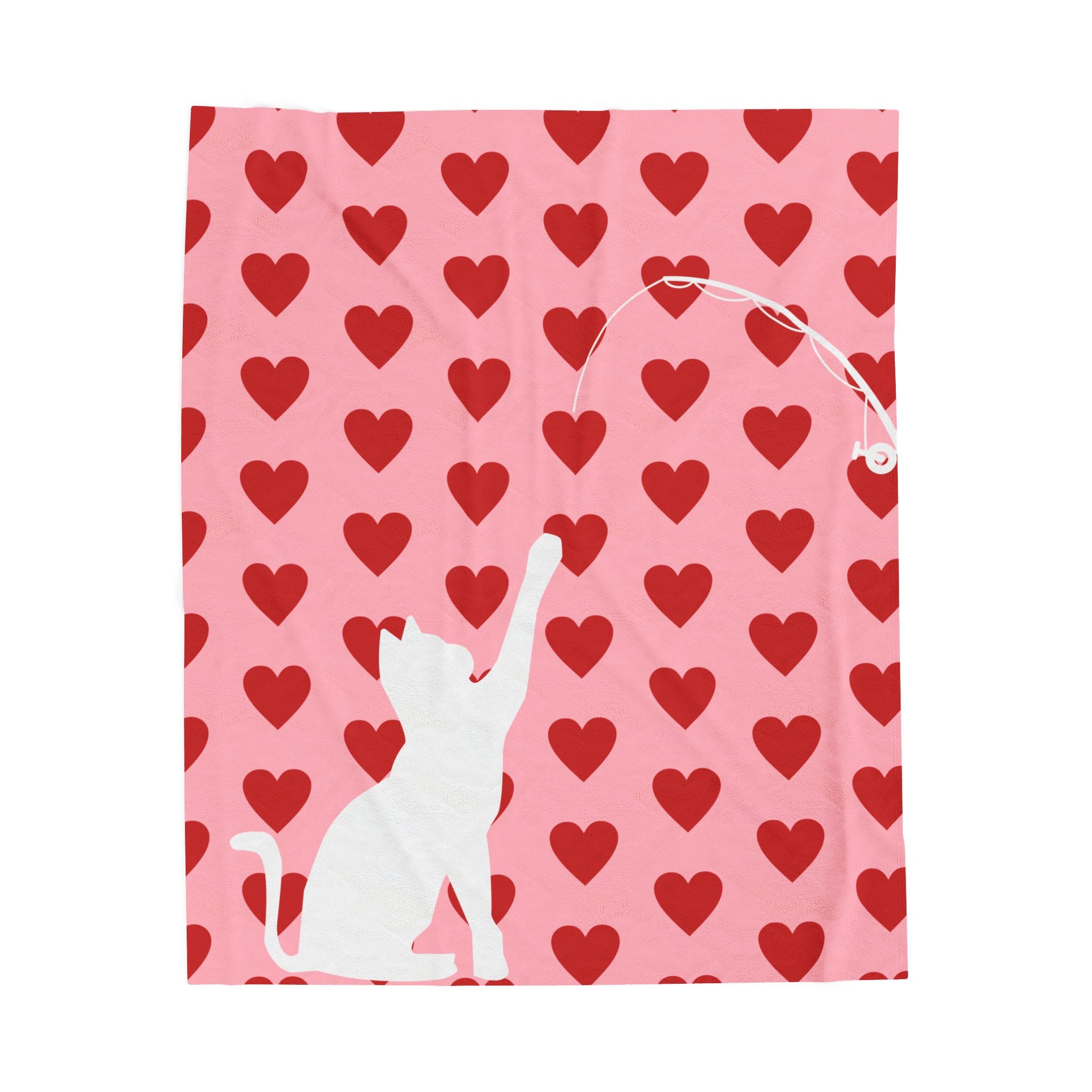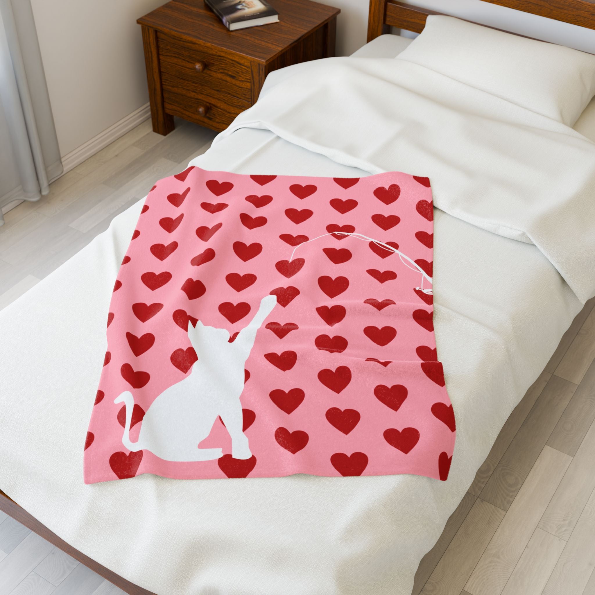 Cat Hearts Blanket, Cozy, Valentine's Decor, Soft Throw, Pet Lover Home Decor, Velveteen Plush, Gift