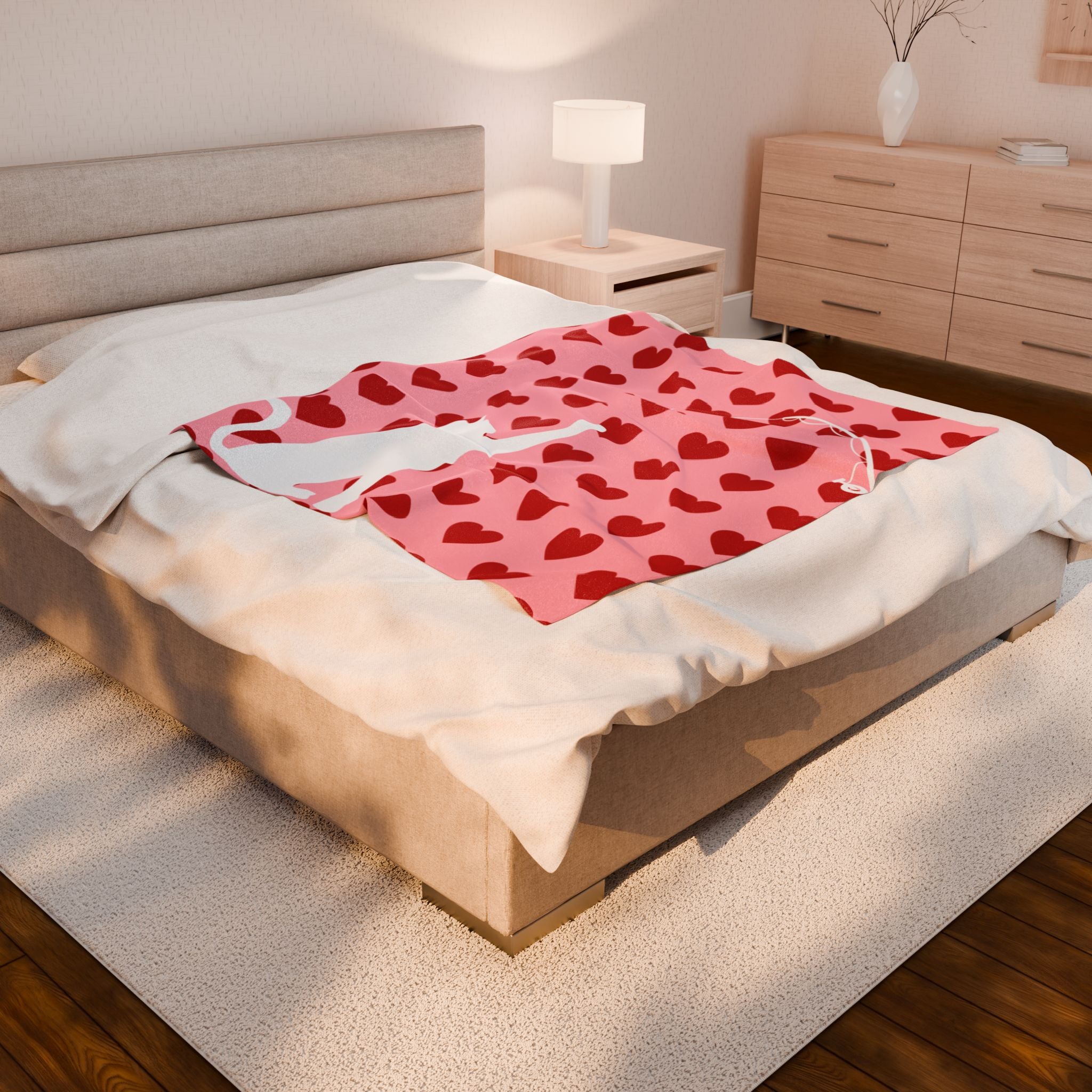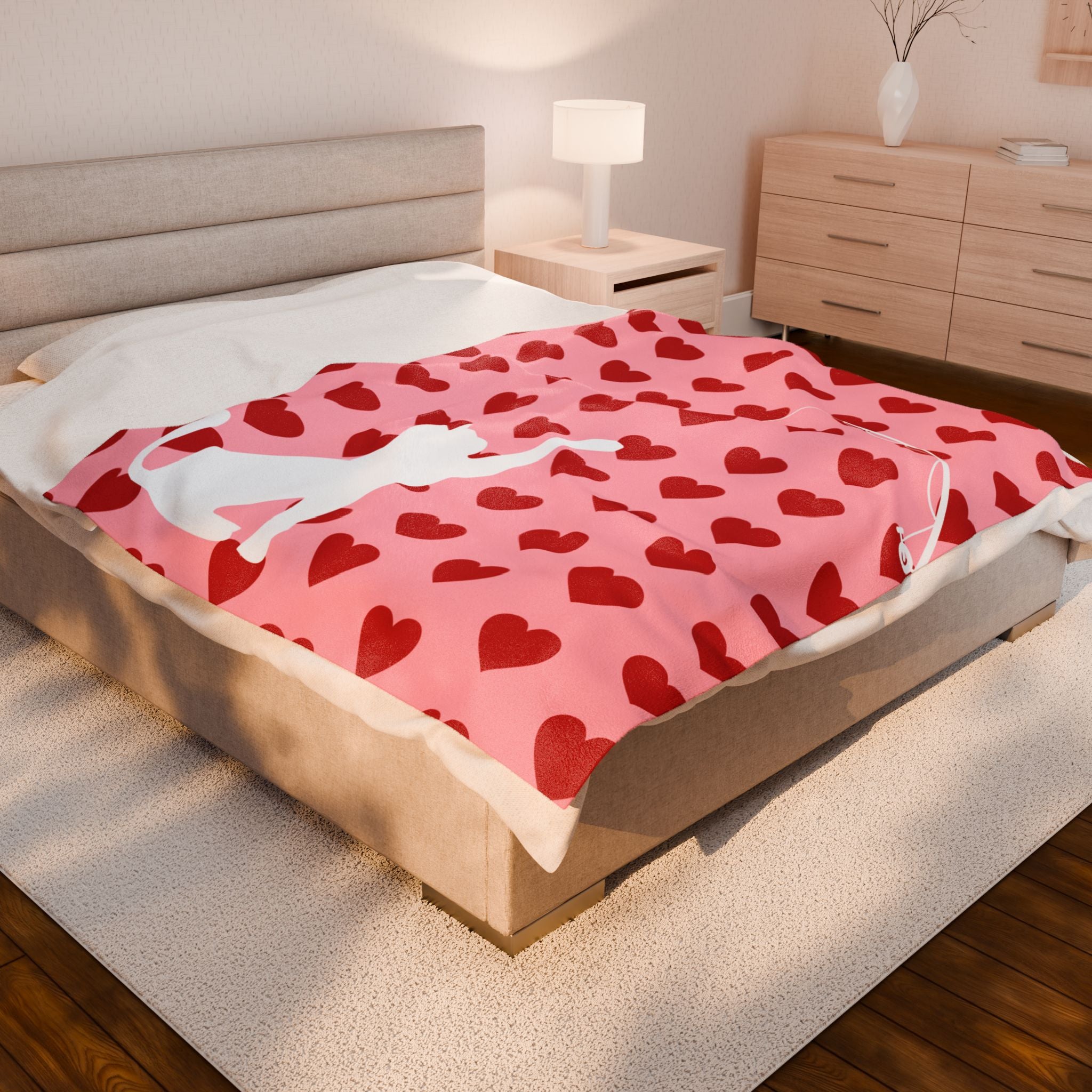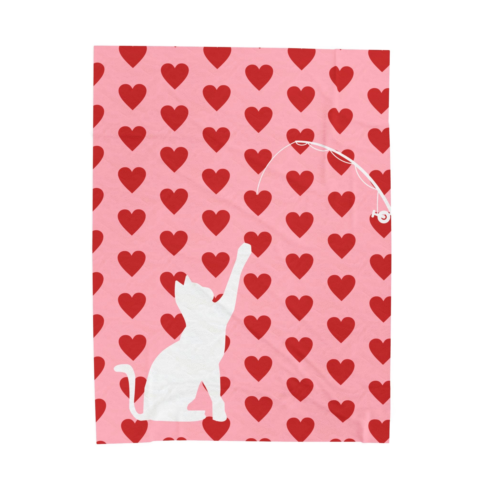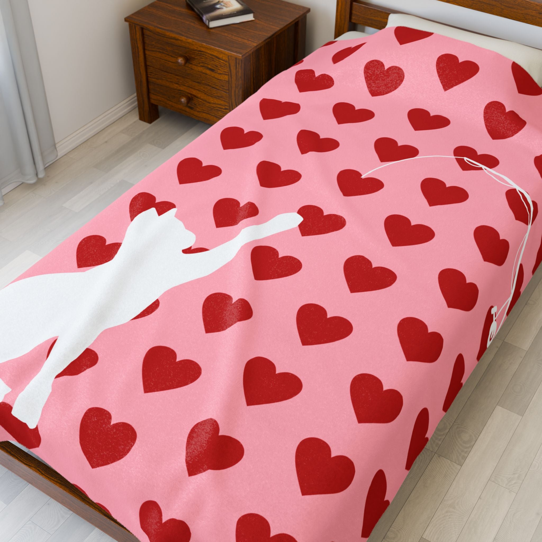 Cat Hearts Blanket, Cozy, Valentine's Decor, Soft Throw, Pet Lover Home Decor, Velveteen Plush, Gift
