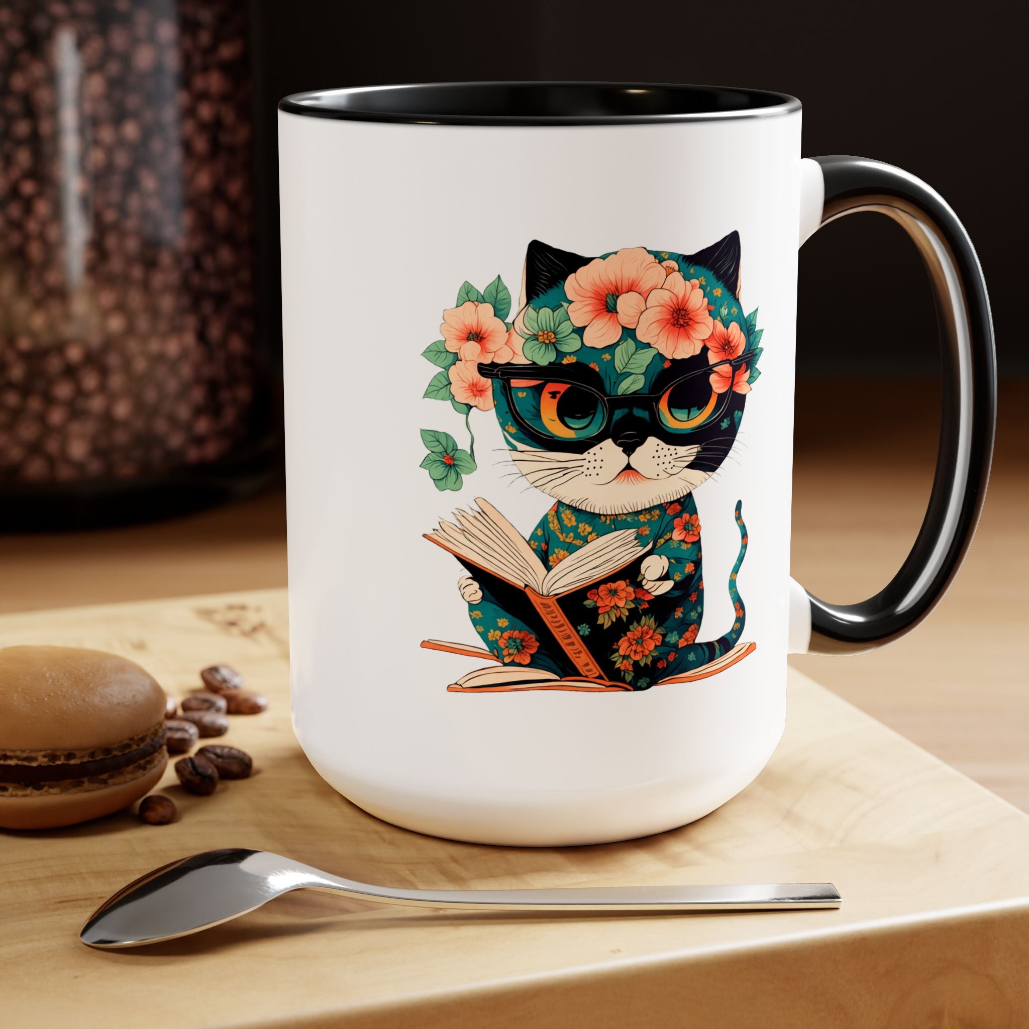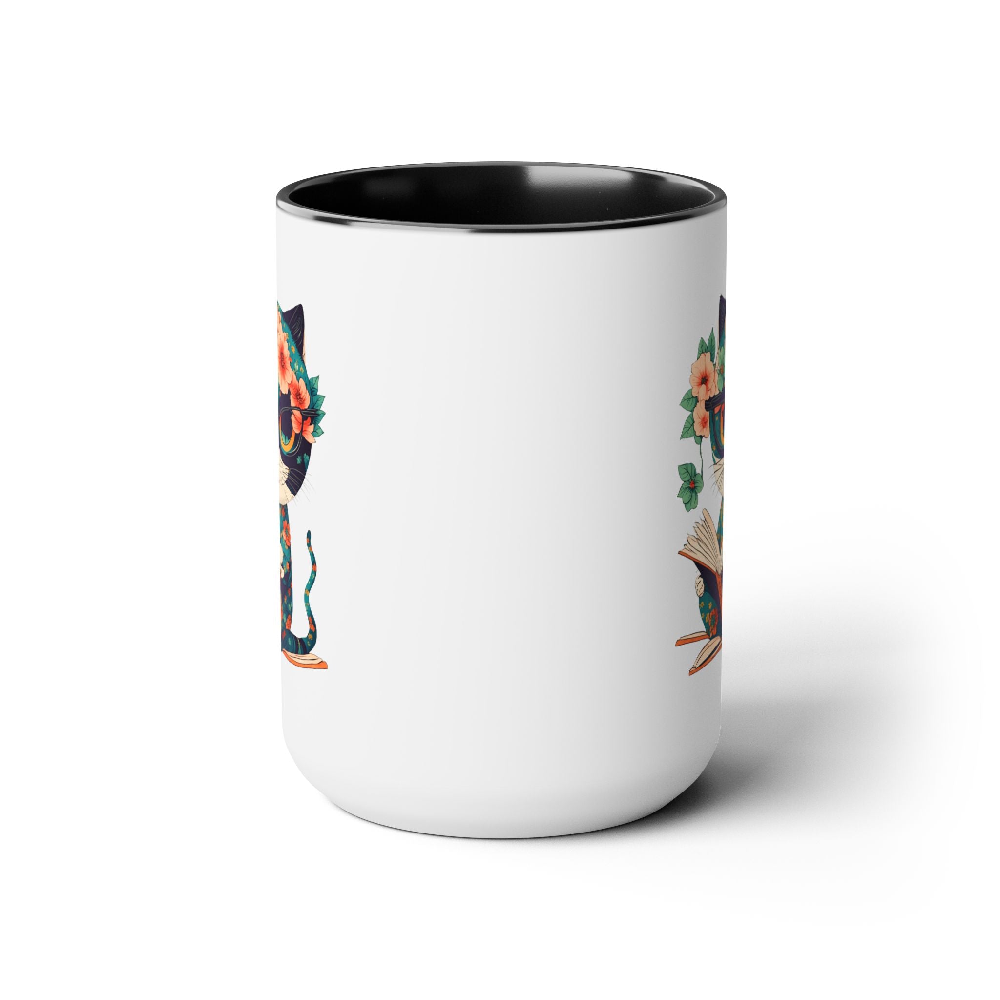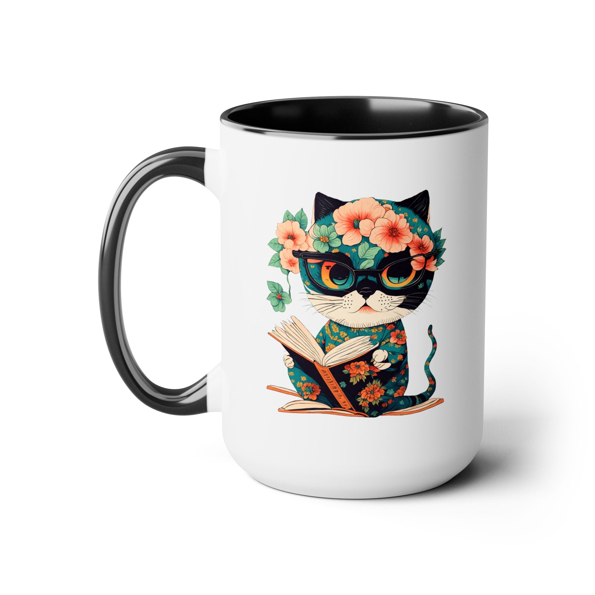 Coffee Mugs, 15oz Aloha Cat Reading a Book