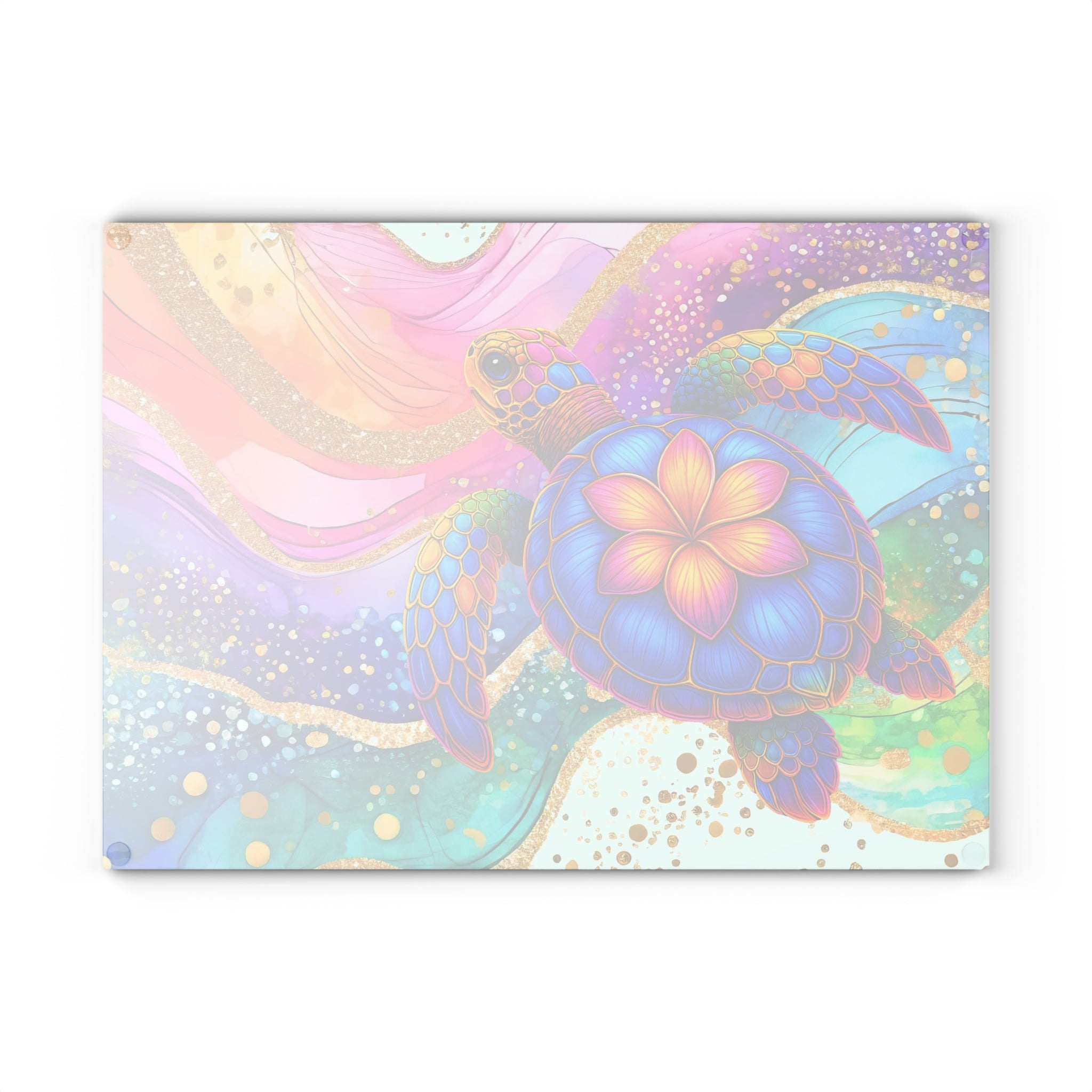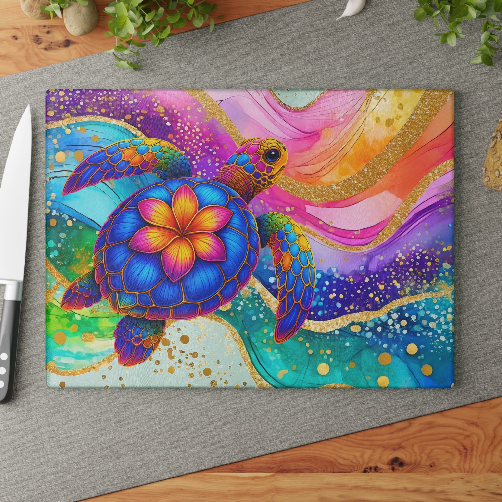 Colorful Sea Turtle Glass Cutting Board | Tropical Ocean Artwork