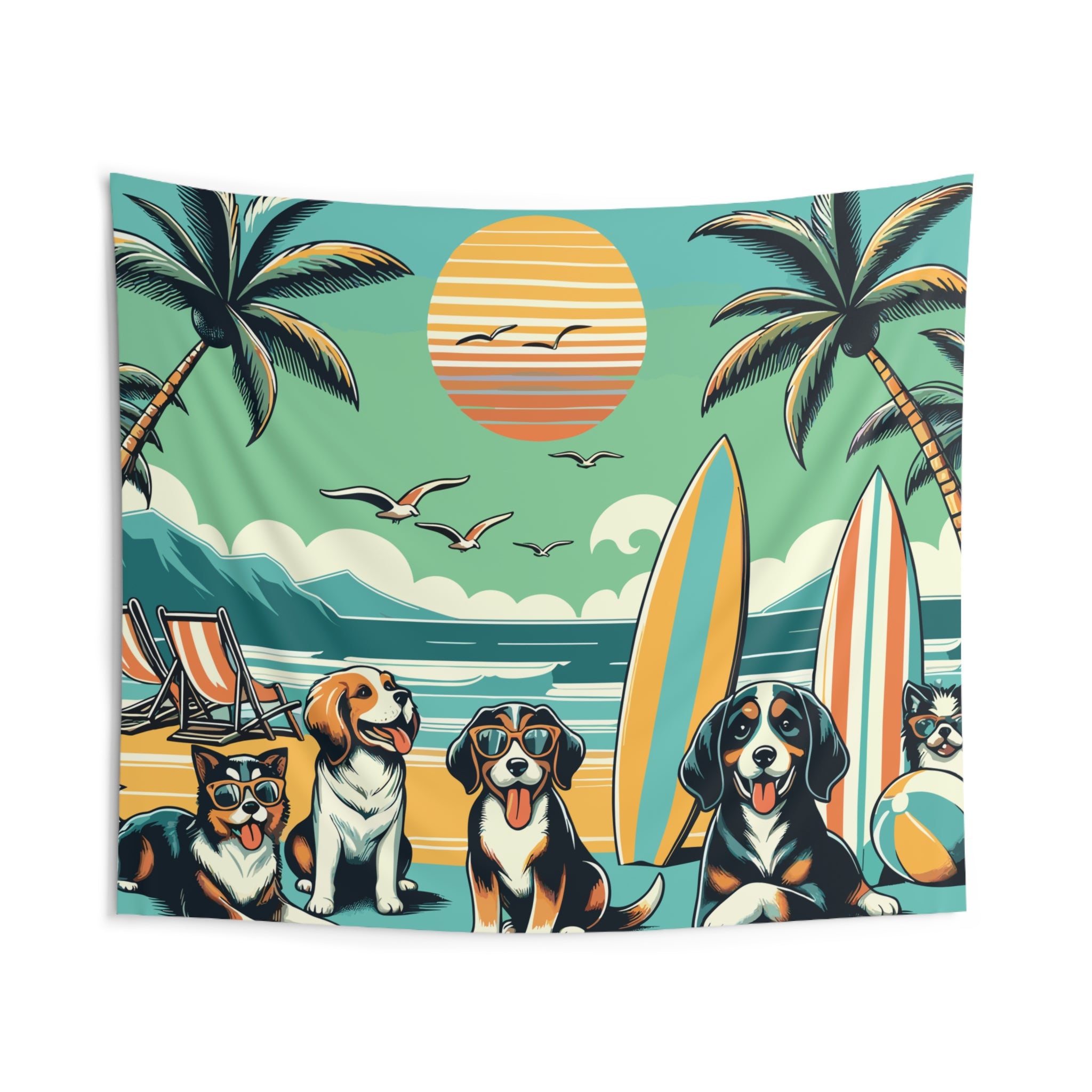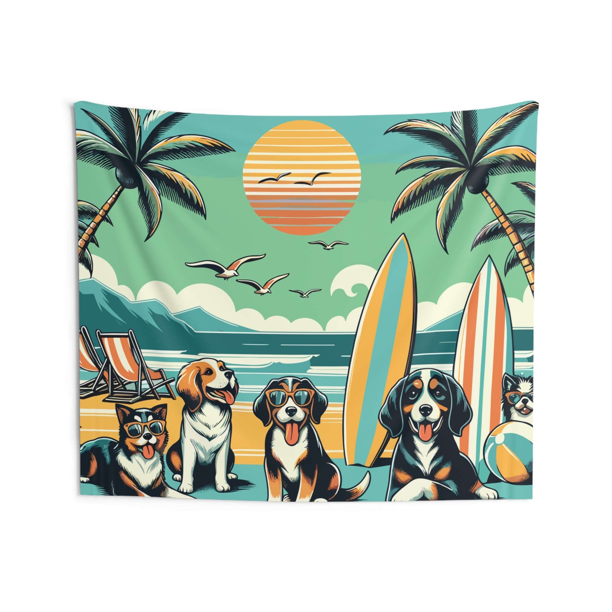 Dogs at the Beach Indoor Wall Tapestry Tropical Wall Decor for Bedroom Living Room or College Dorm Room