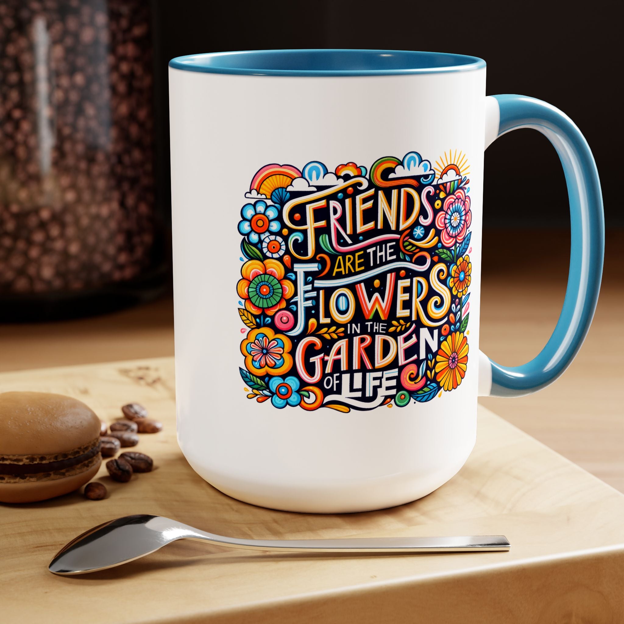 Friends Coffee Mug Two-Tone Coffee Mug, 15oz Be My Valentine Red Heart Flowers Design