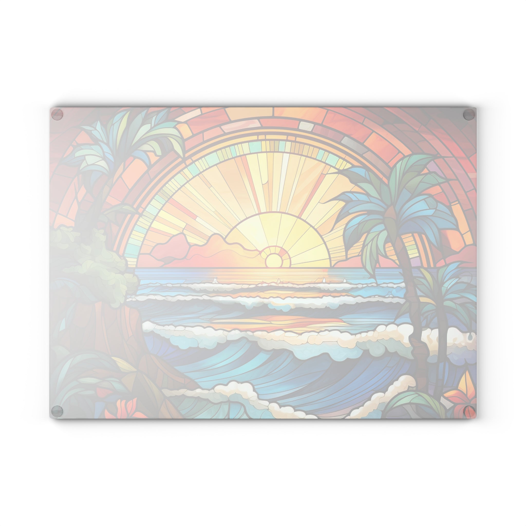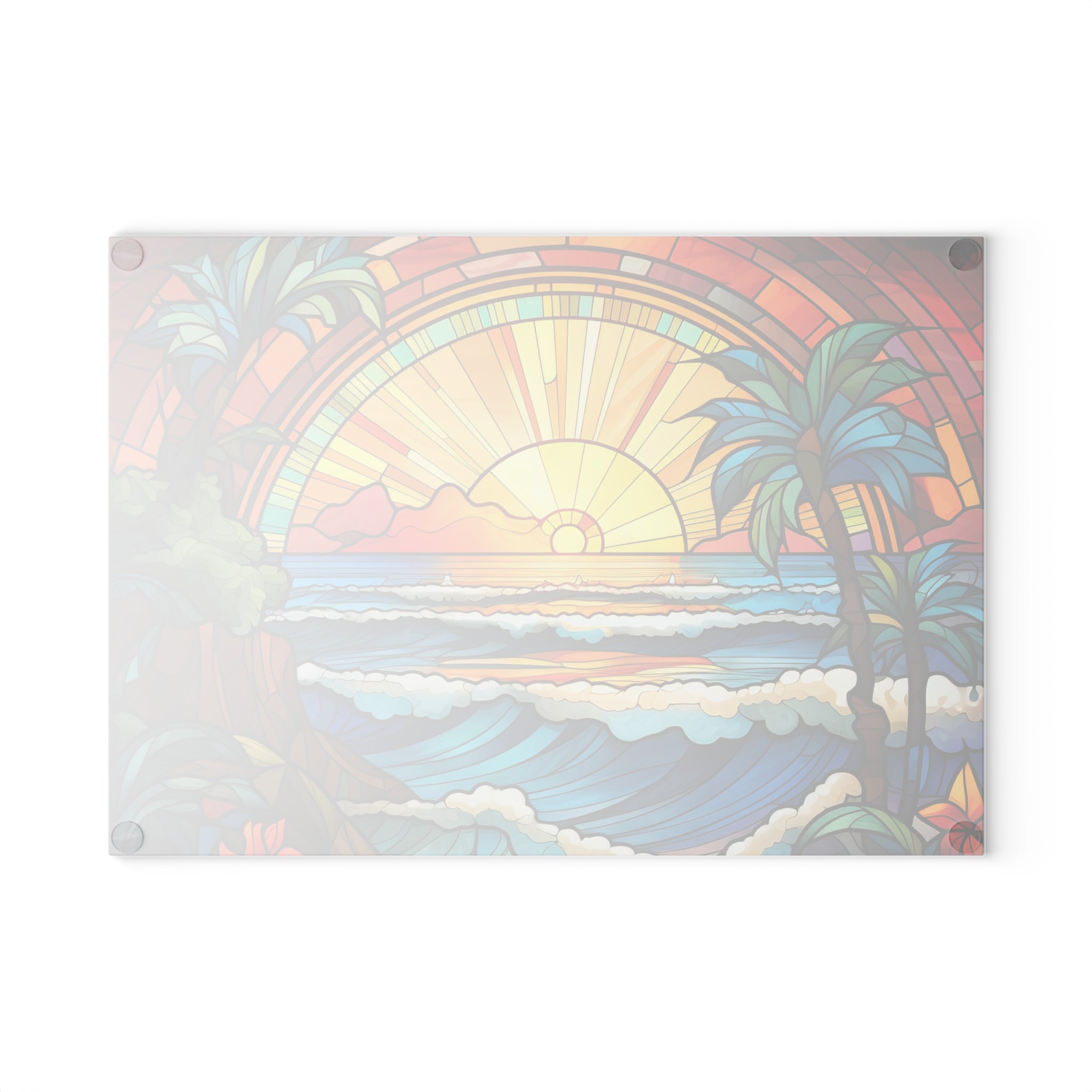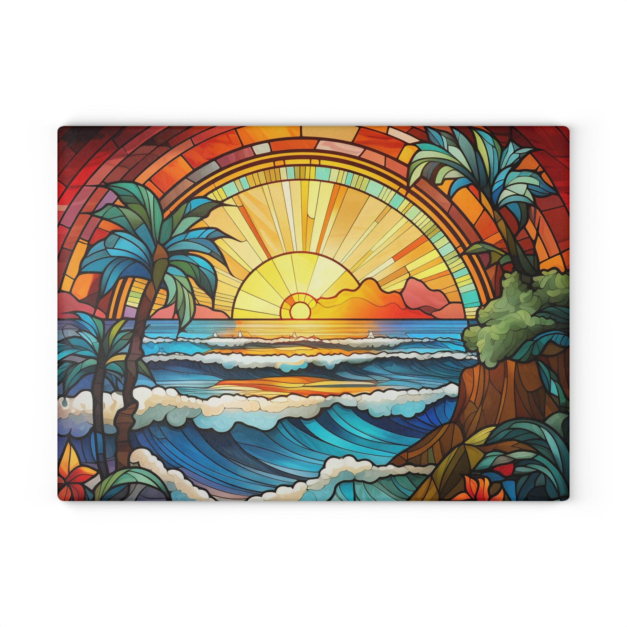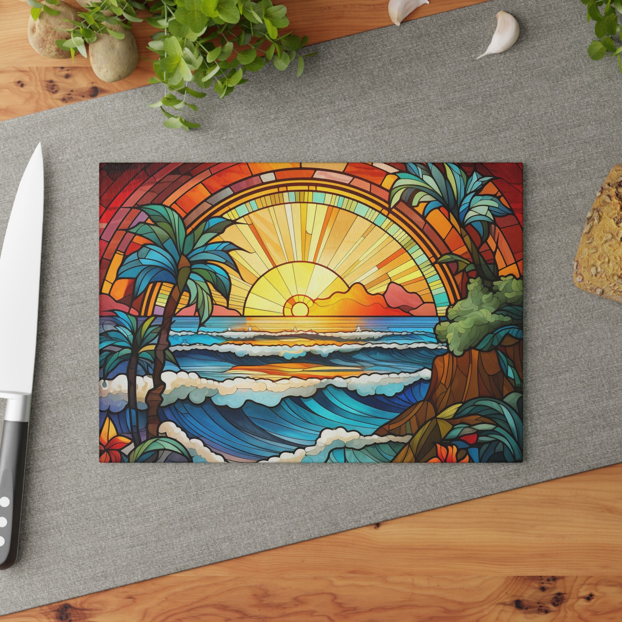 Glass Cutting Board Beach Sun and Flower Perfect Housewarming Gift