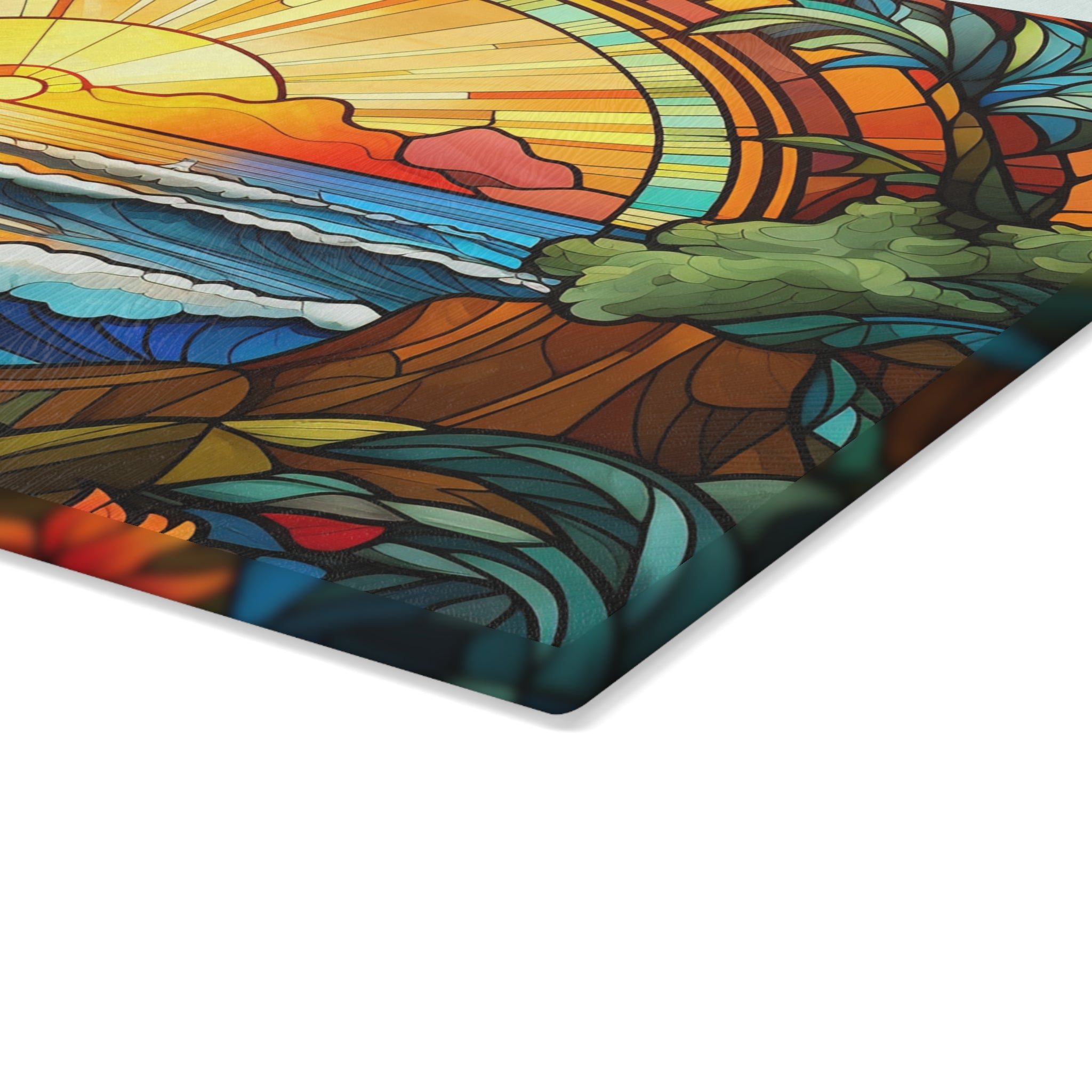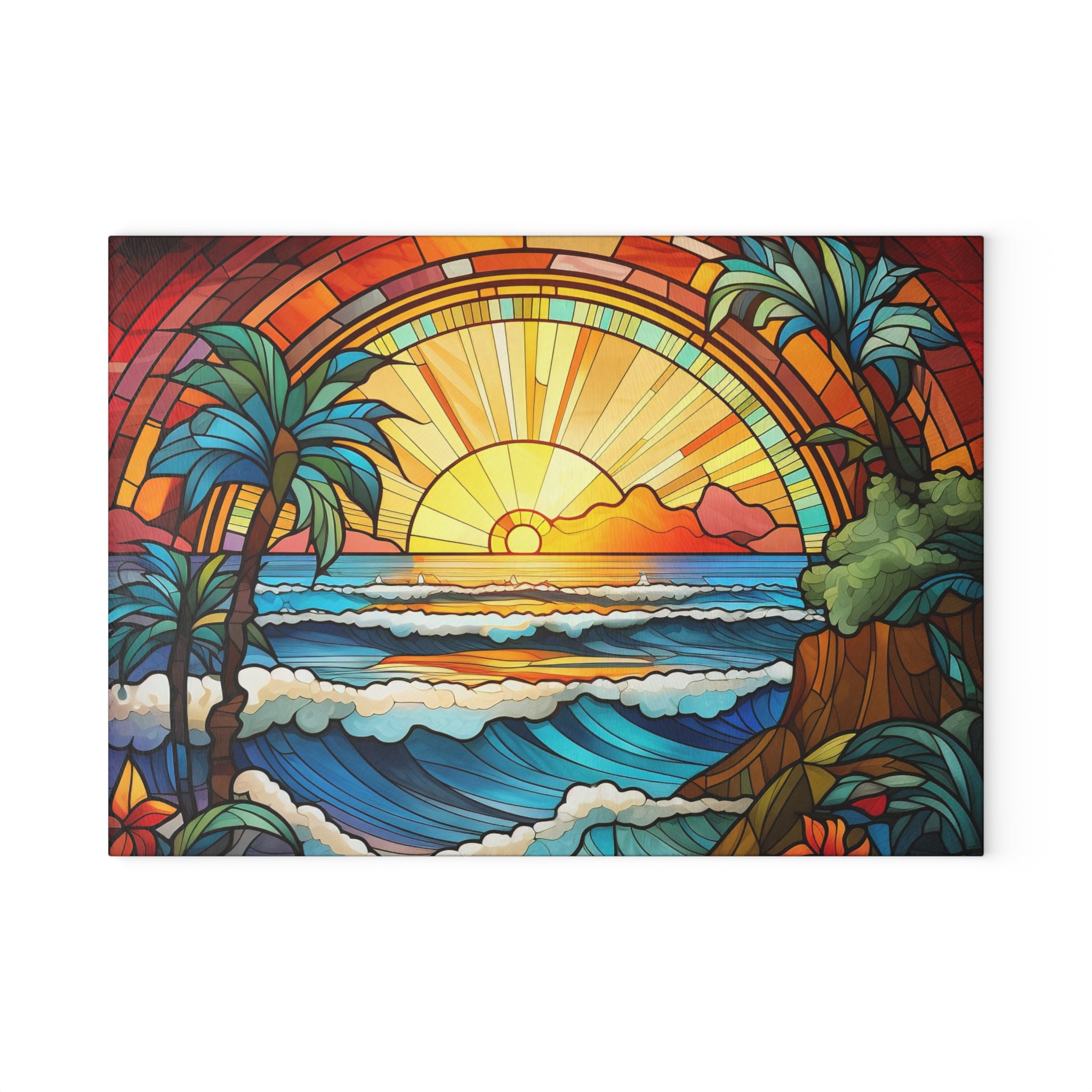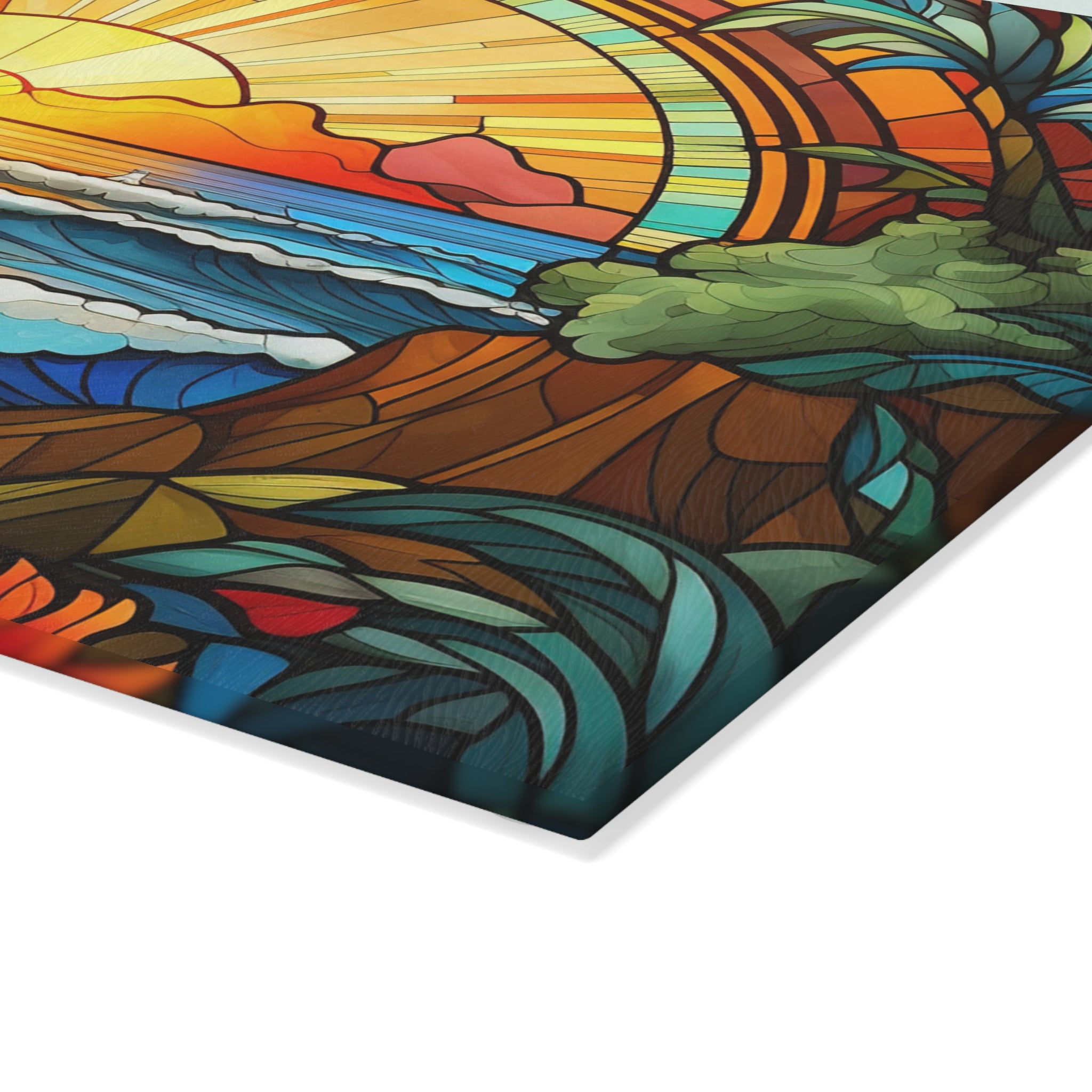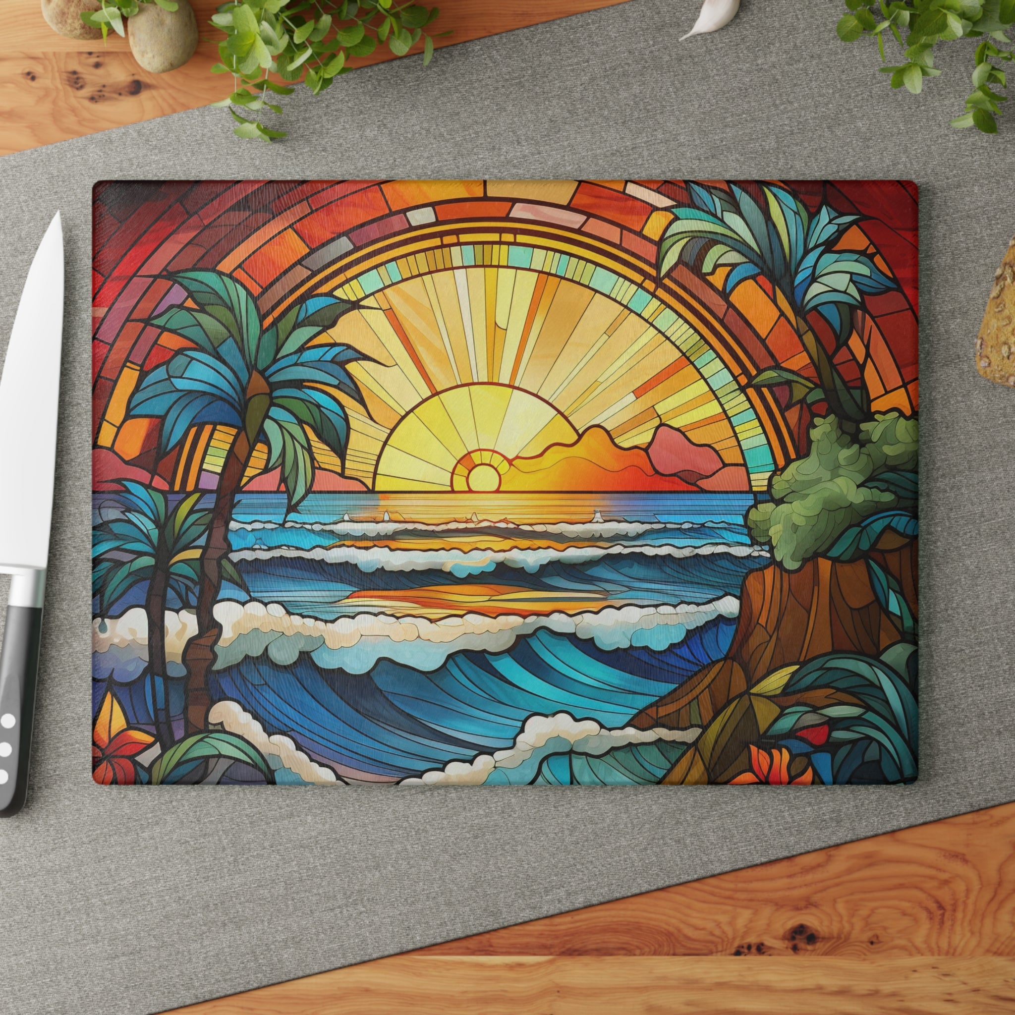Glass Cutting Board Beach Sun and Flower Perfect Housewarming Gift