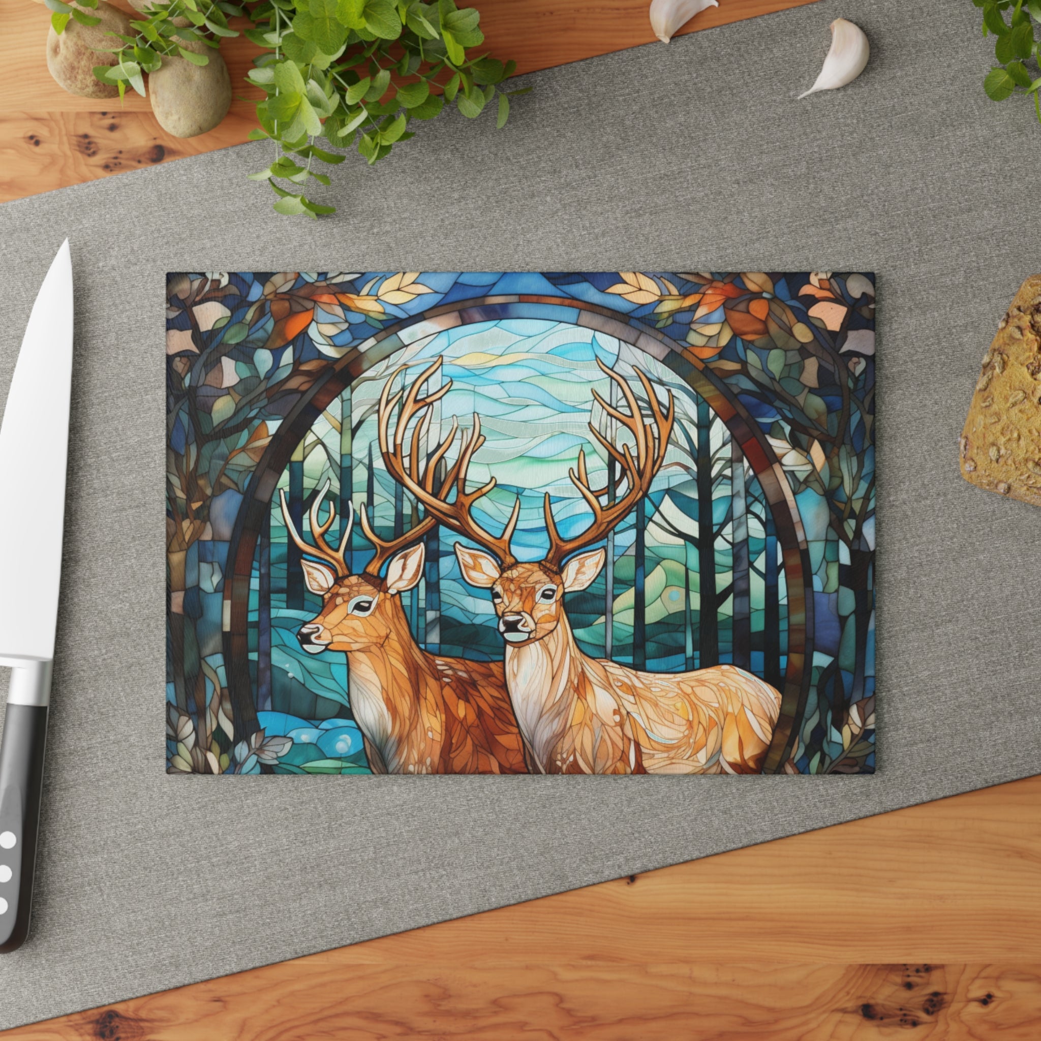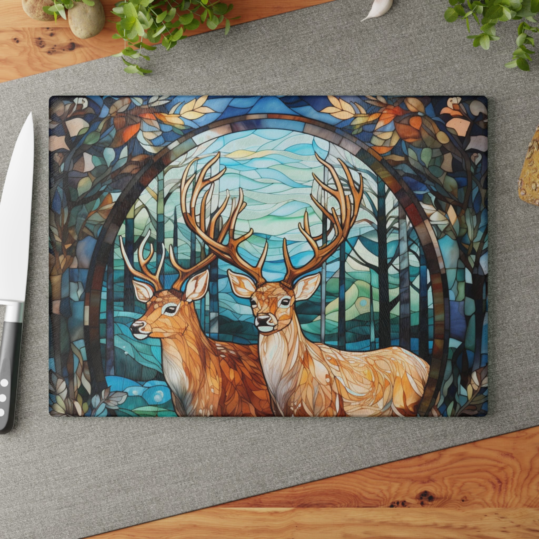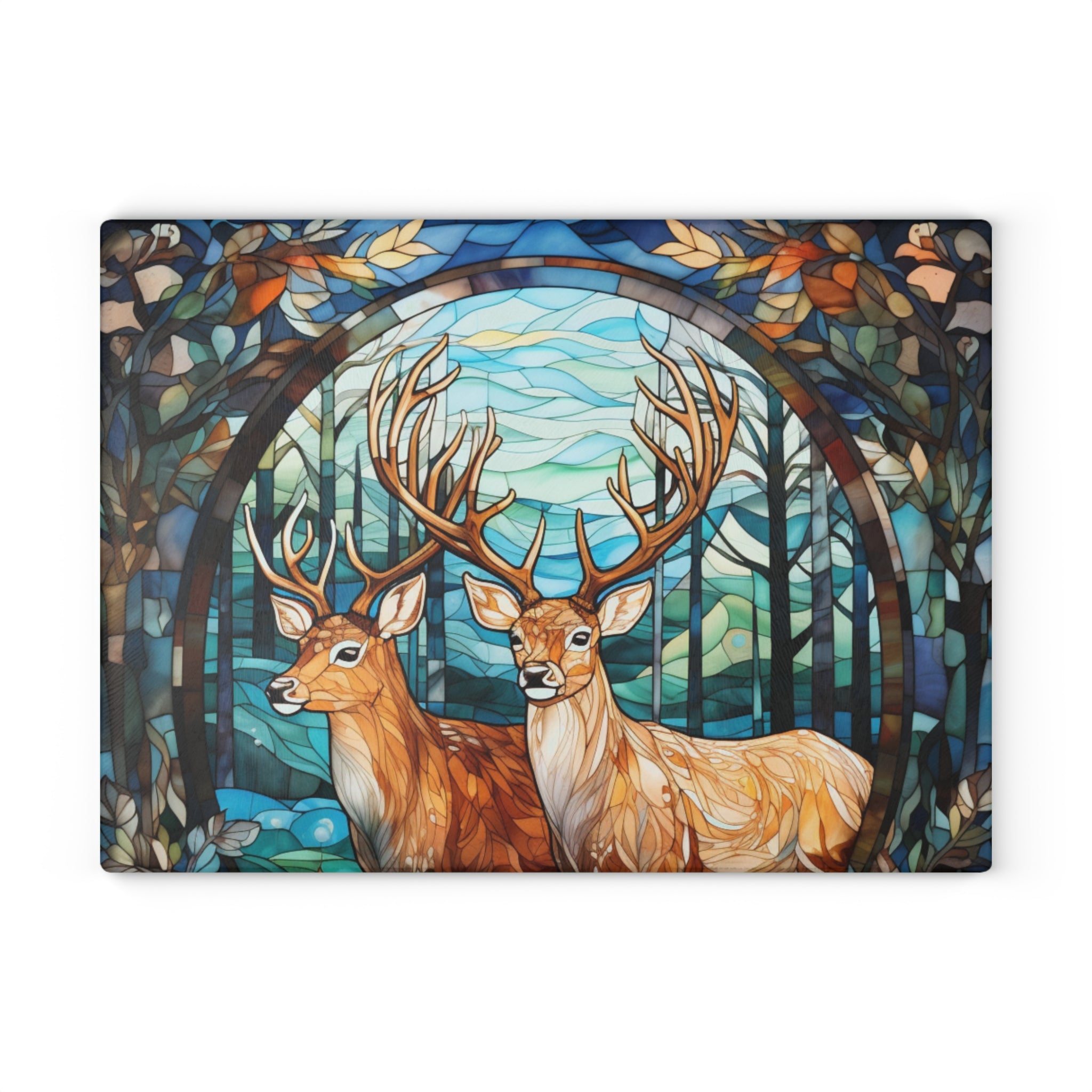 Glass Cutting Board Deer Wildlife Fall Stained Glass Christmas Gift or Perfect Housewarming Gift