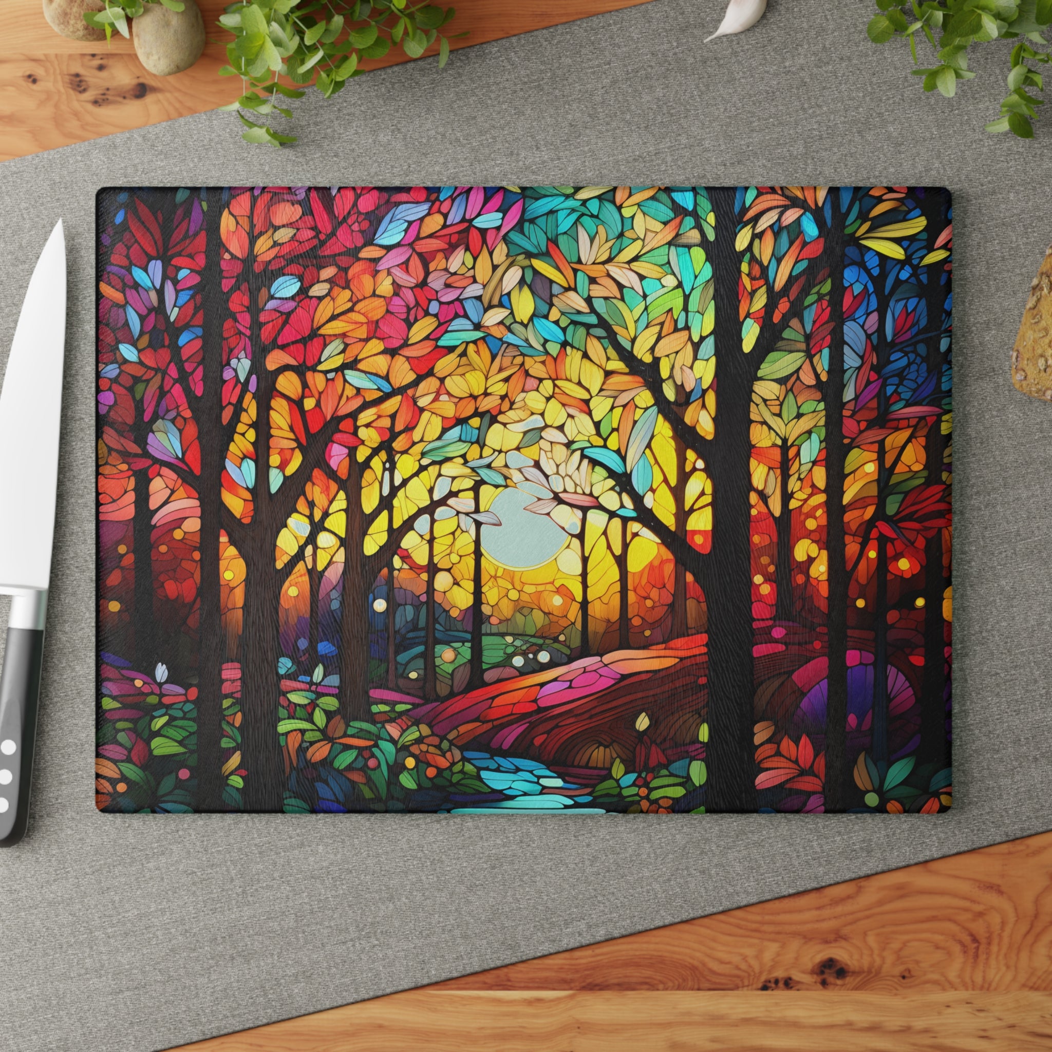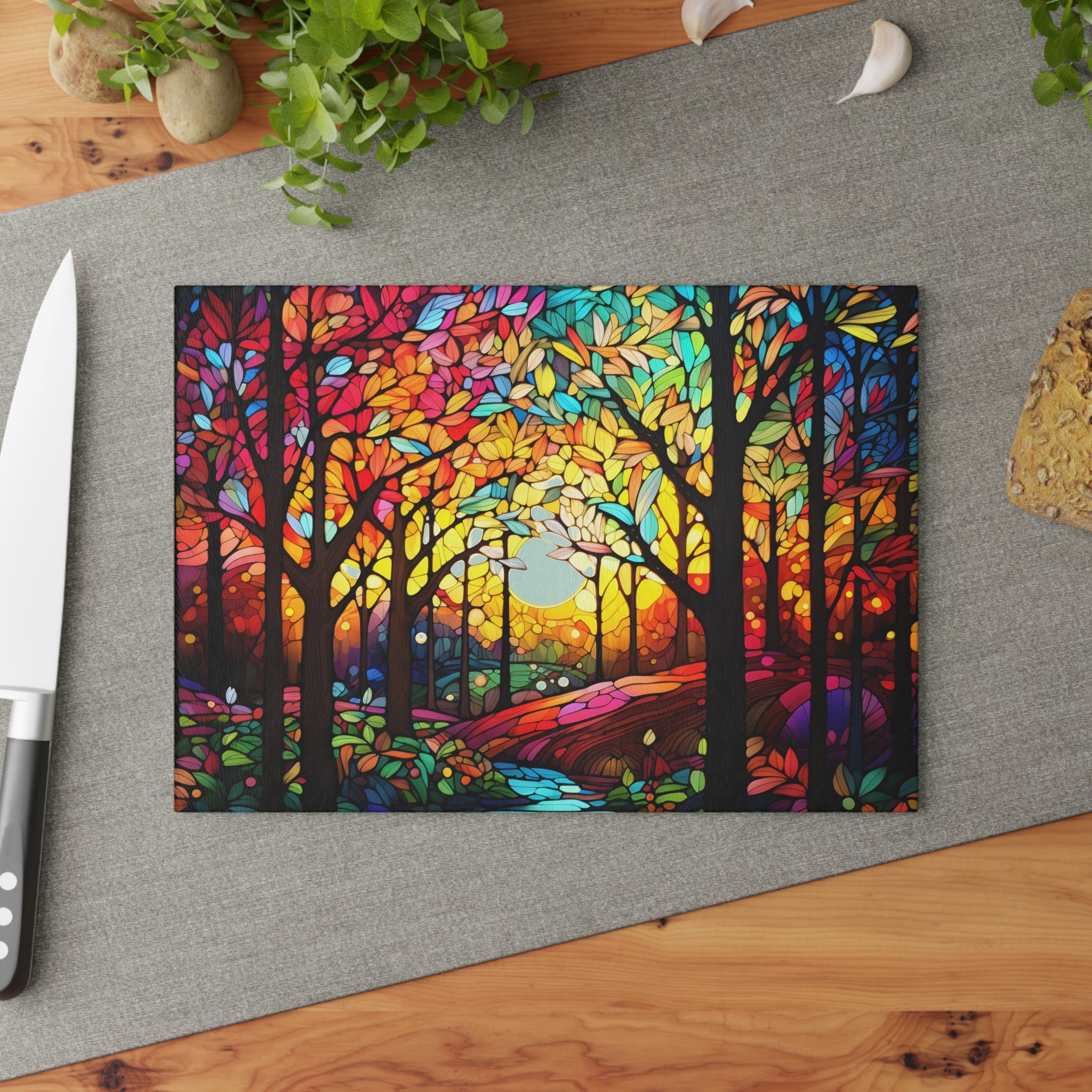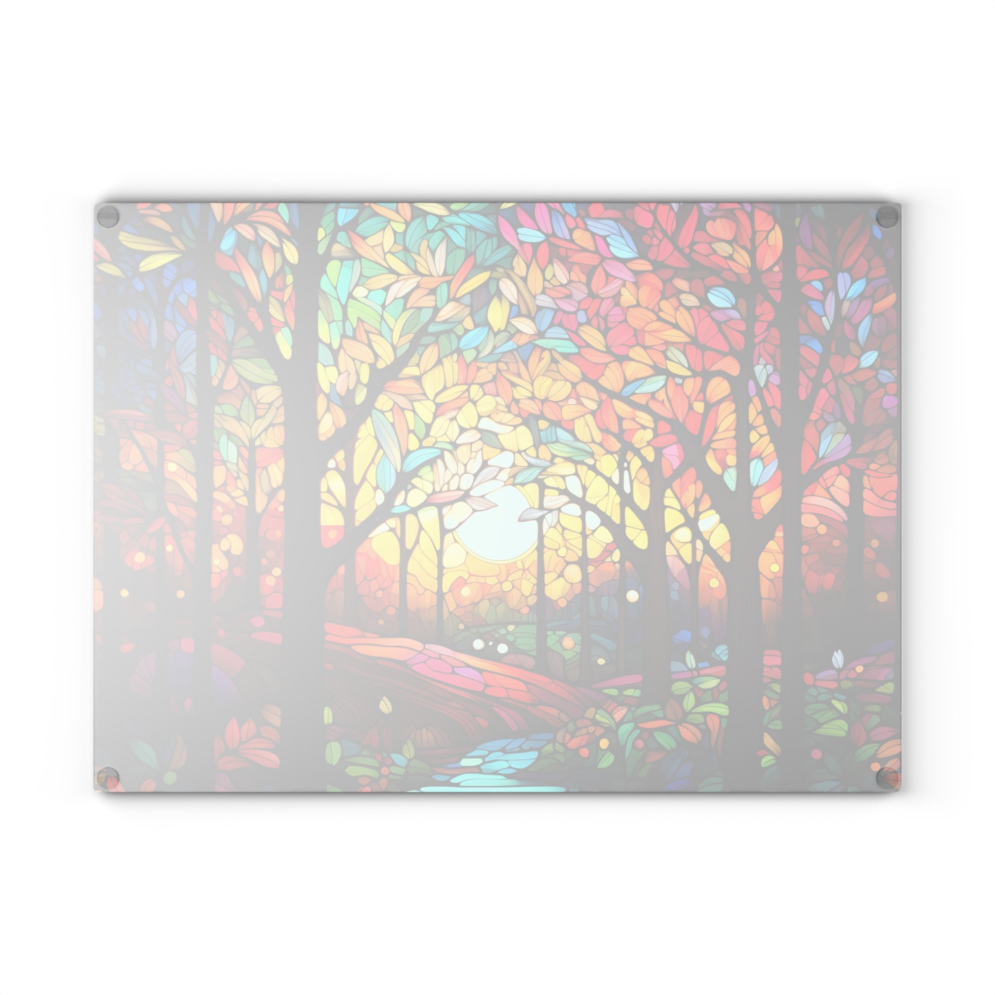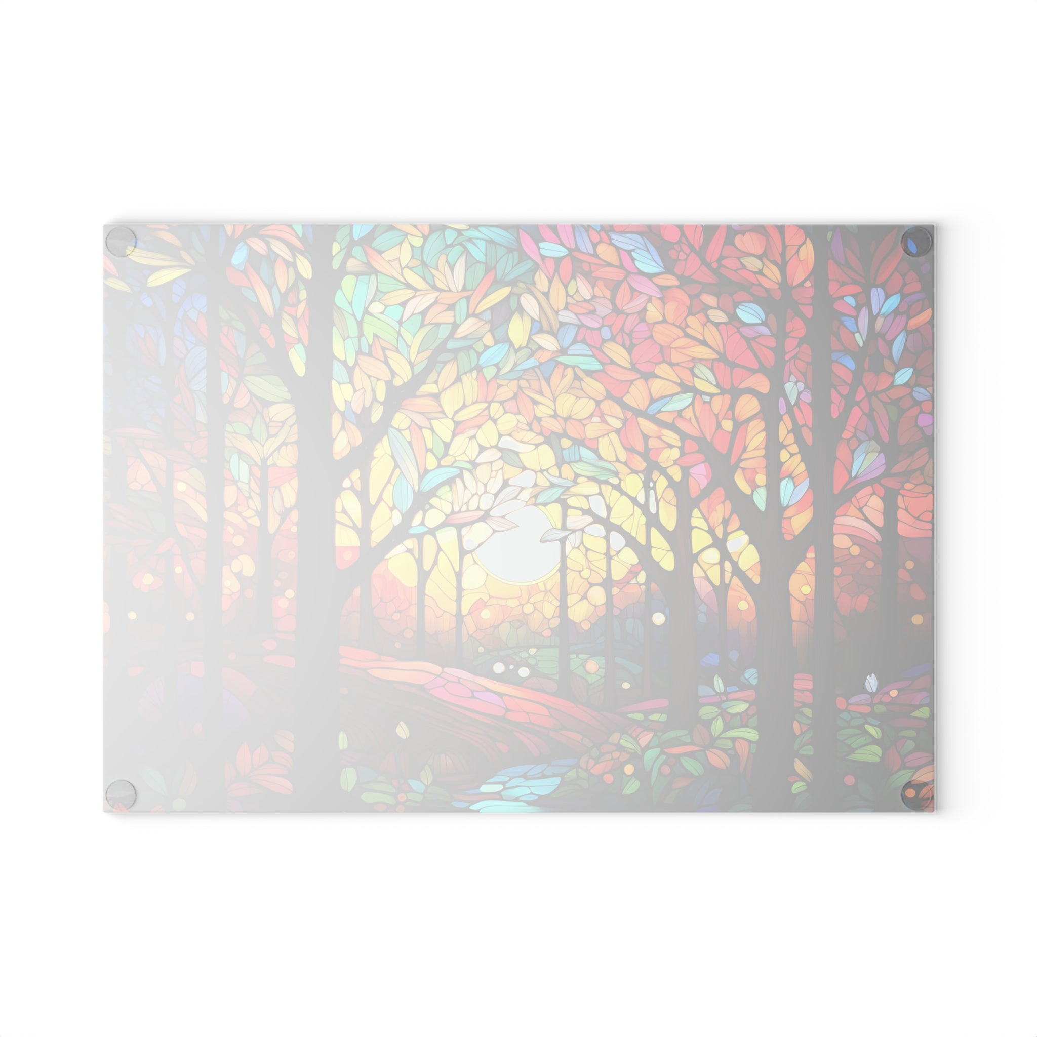 Glass cutting board. What a beautiful custom glass cutting board! Perfect for any kitchen, this board is made of tempered glass, making it durable and long lasting. The textured surface is perfect for chopping, slicing, and dicing, making meal preparation a breeze. Plus, the four rubber dots on the bottom add an extra level of stability. This board is a must-have for any kitchen!