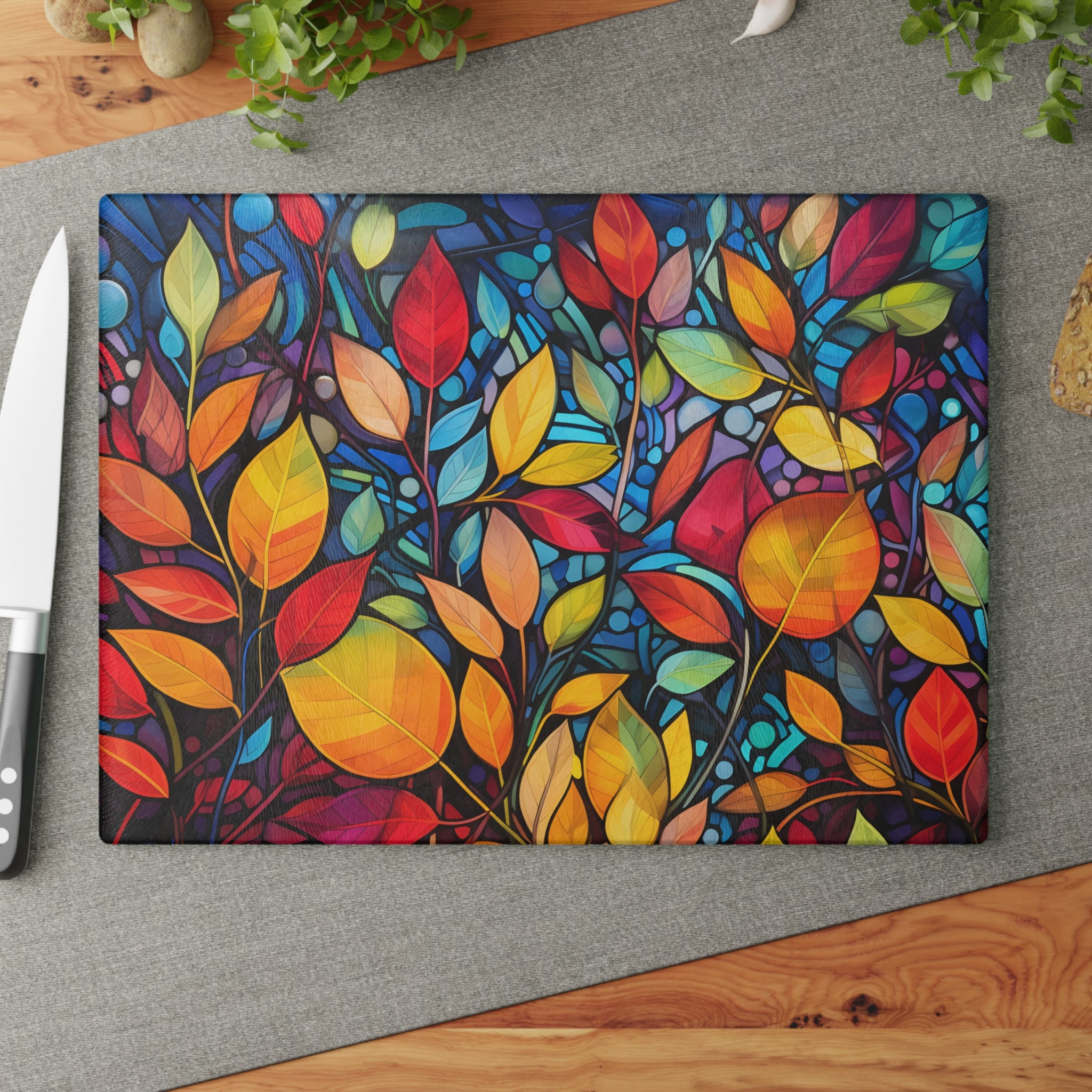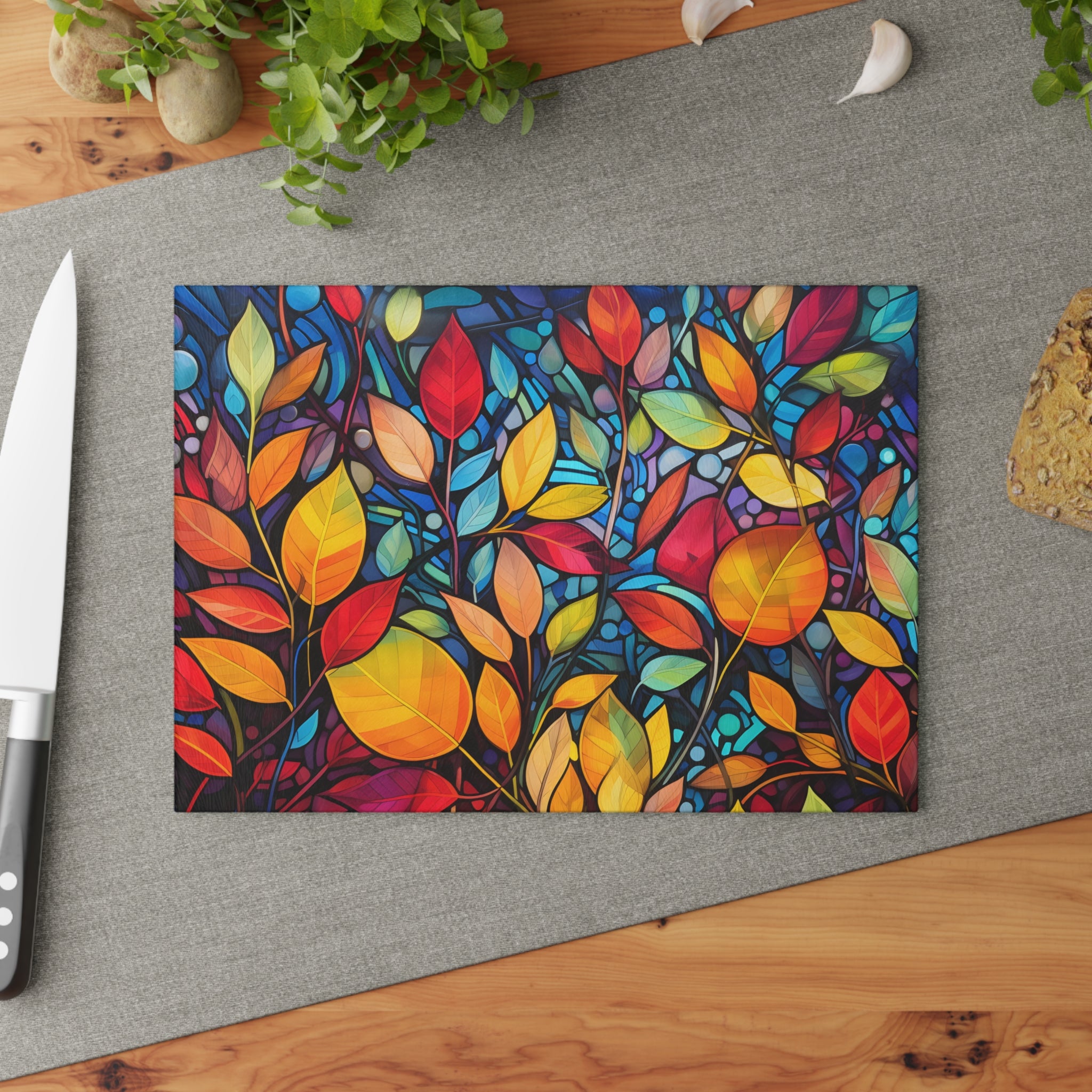 Glass Cutting Board Fall Leaves