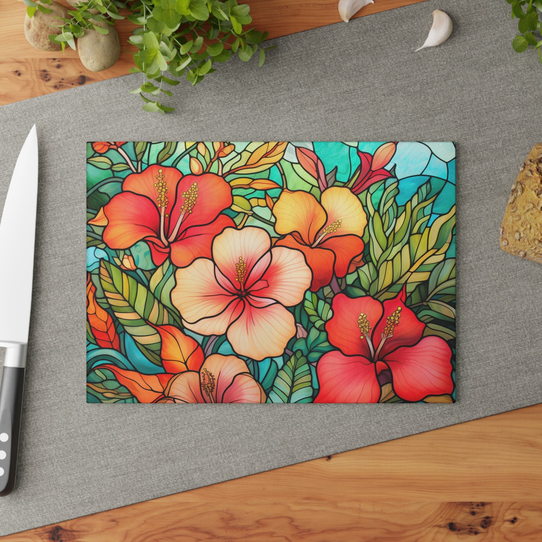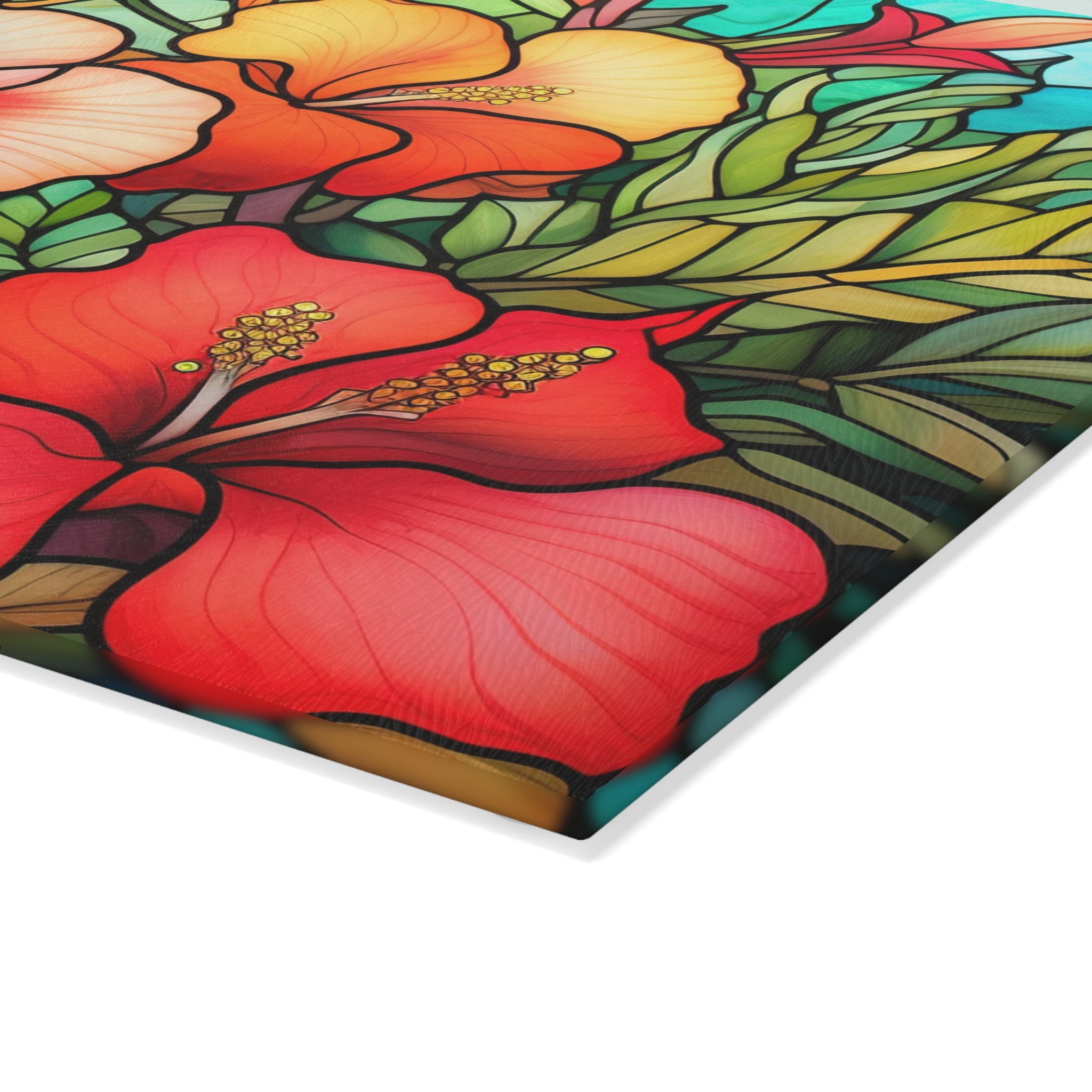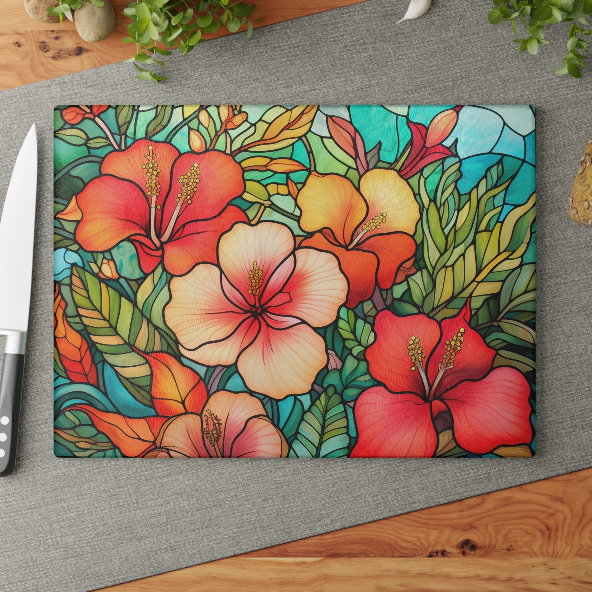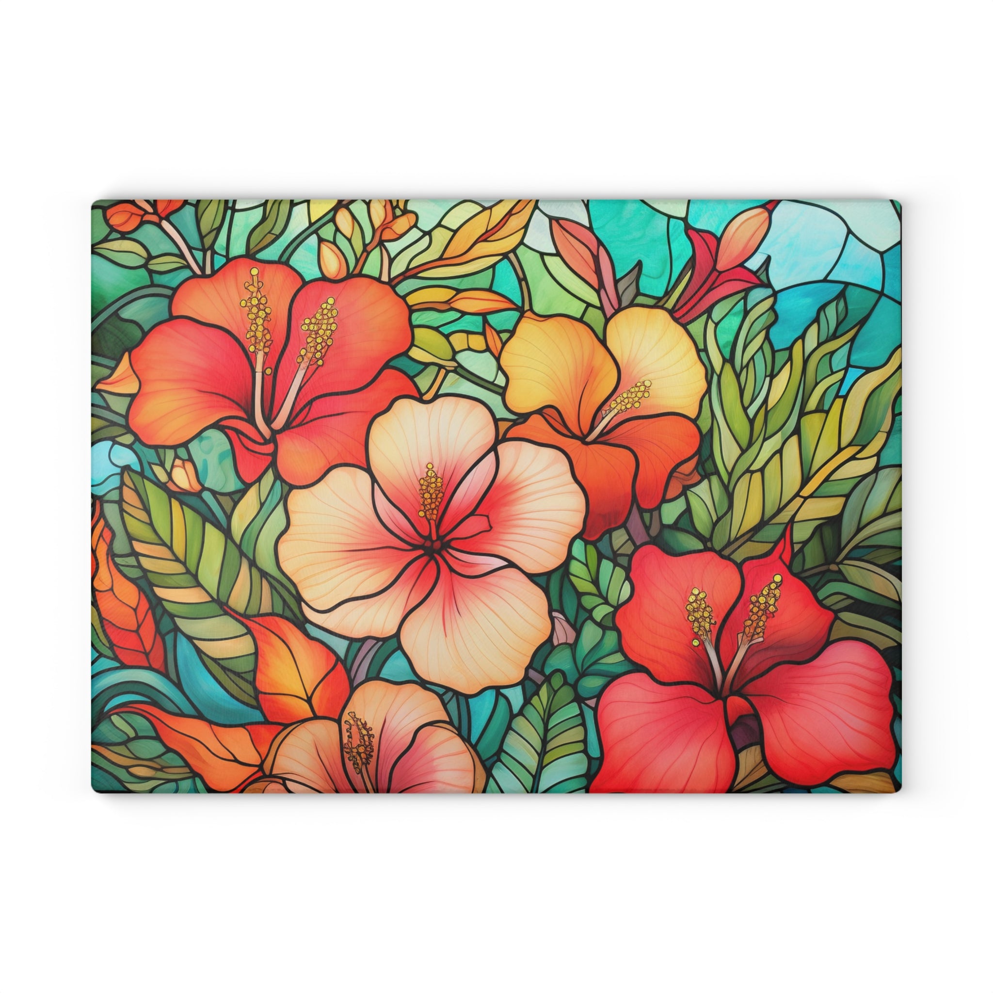 Glass Cutting Board Stained Glass Hawaii Tropical Flowers Christmas Gift Wedding Gift or Perfect Housewarming Gift