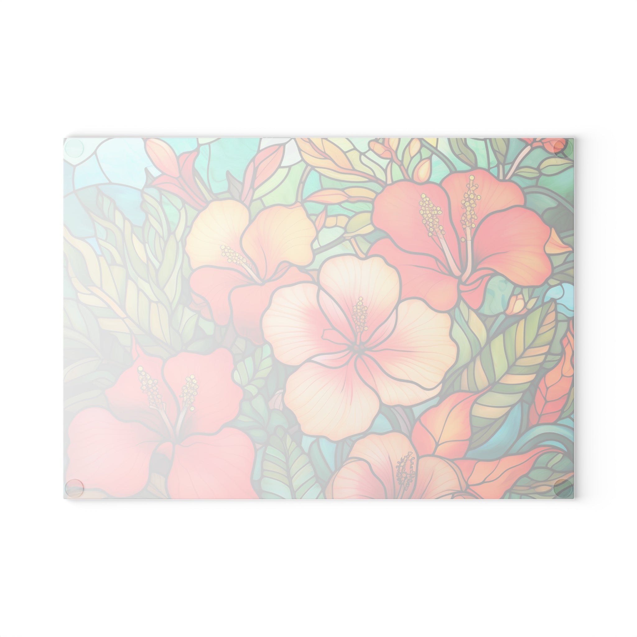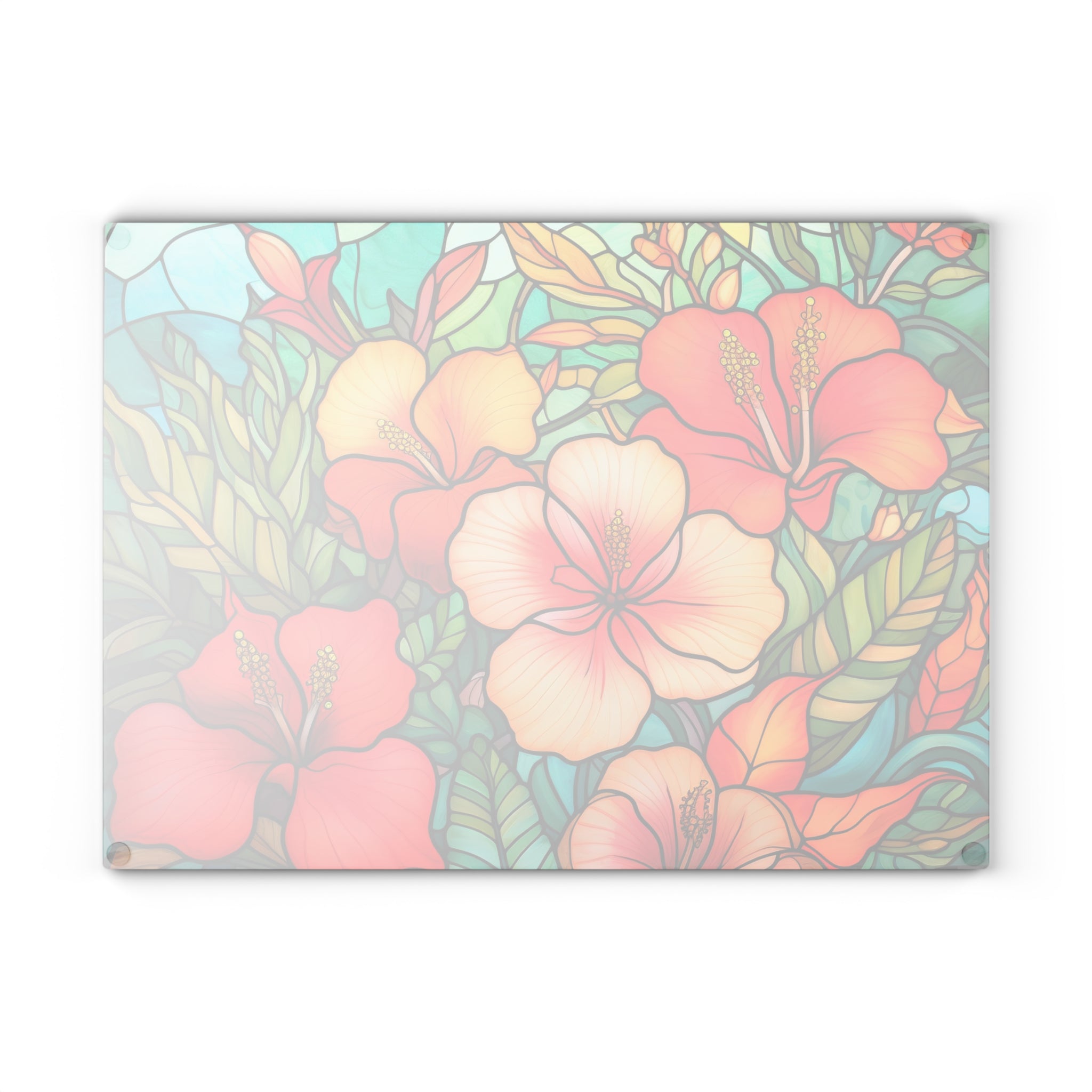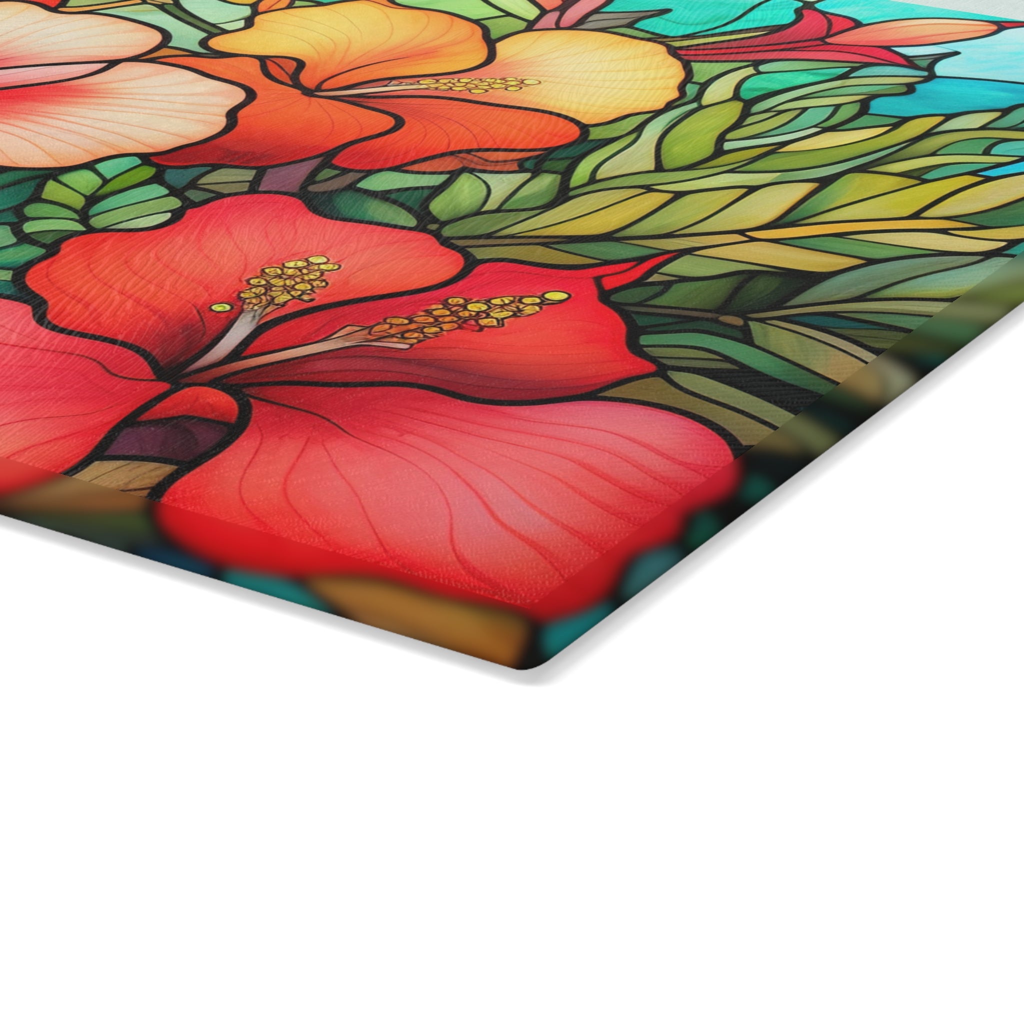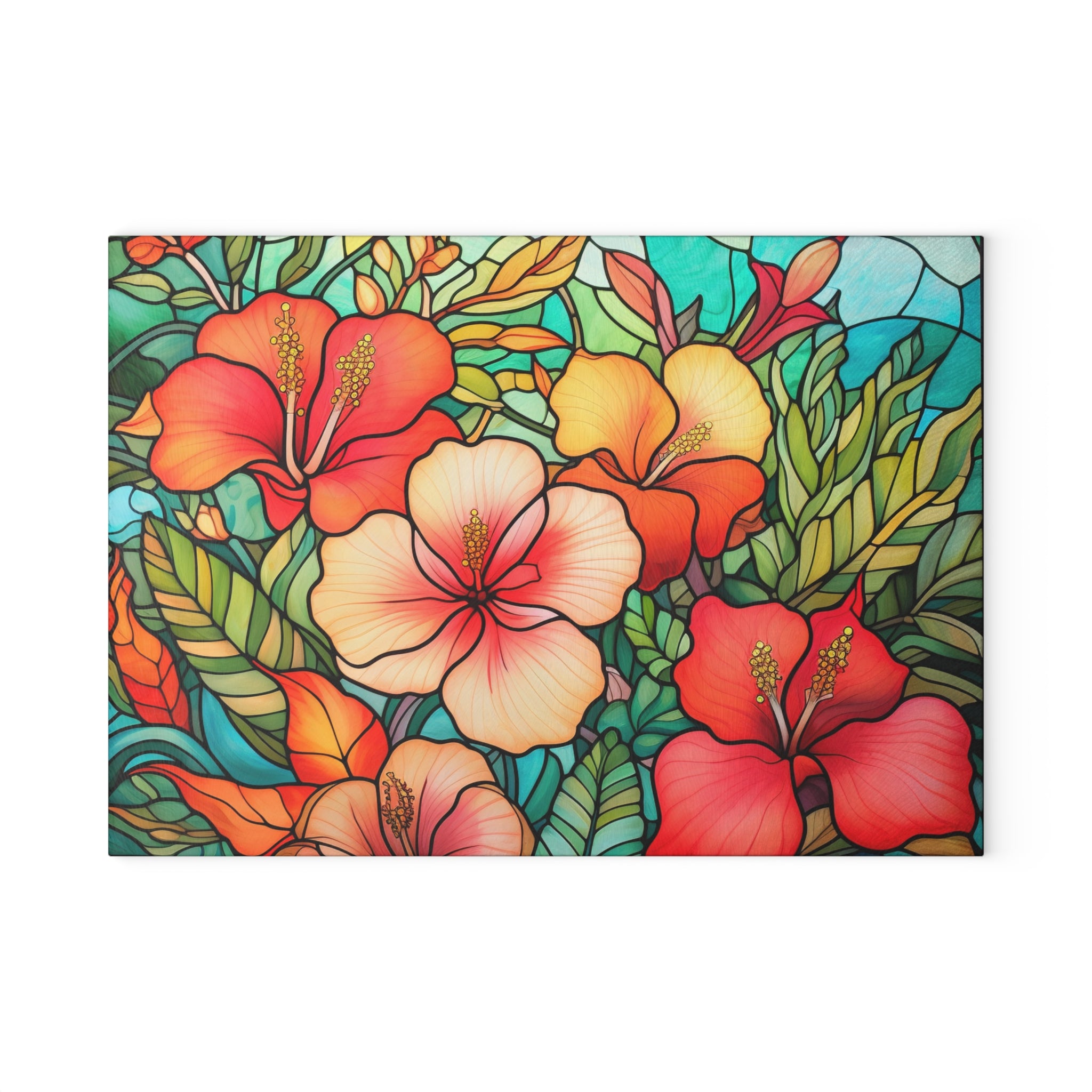 Glass Cutting Board Stained Glass Hawaii Tropical Flowers Christmas Gift Wedding Gift or Perfect Housewarming Gift
