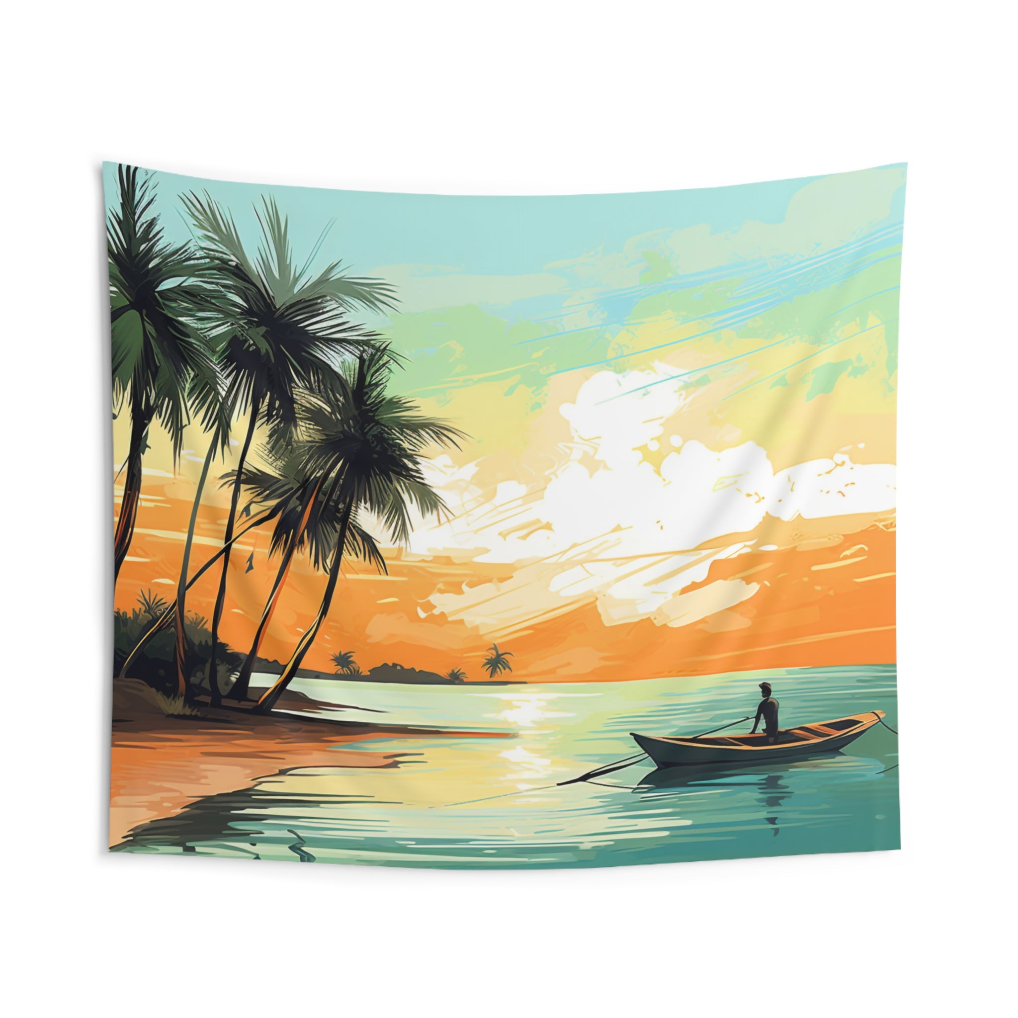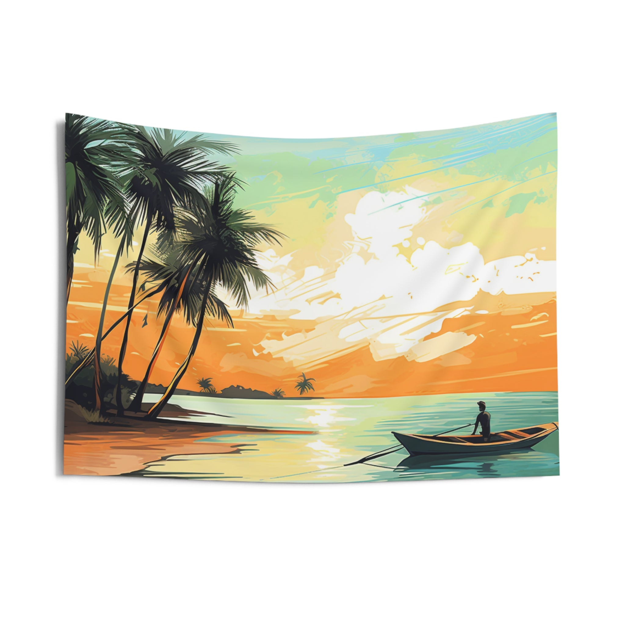 Tropical Sunset Indoor Wall Tapestry Beach Wall Decor for Bedroom Living Room or College Dorm Room