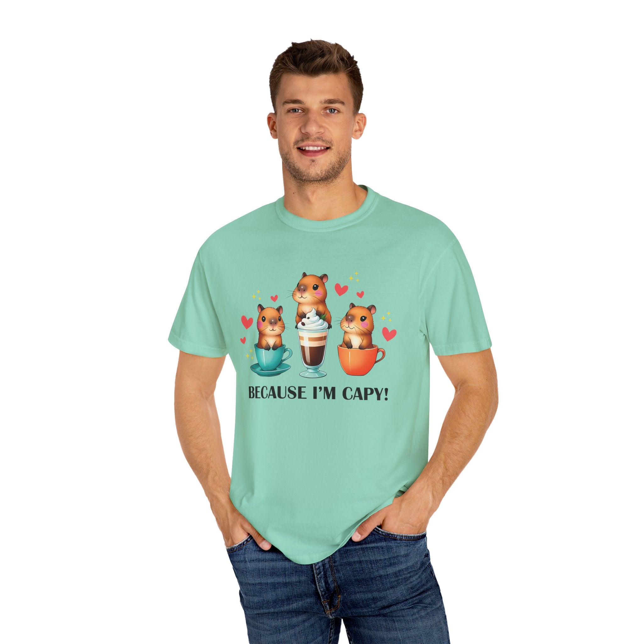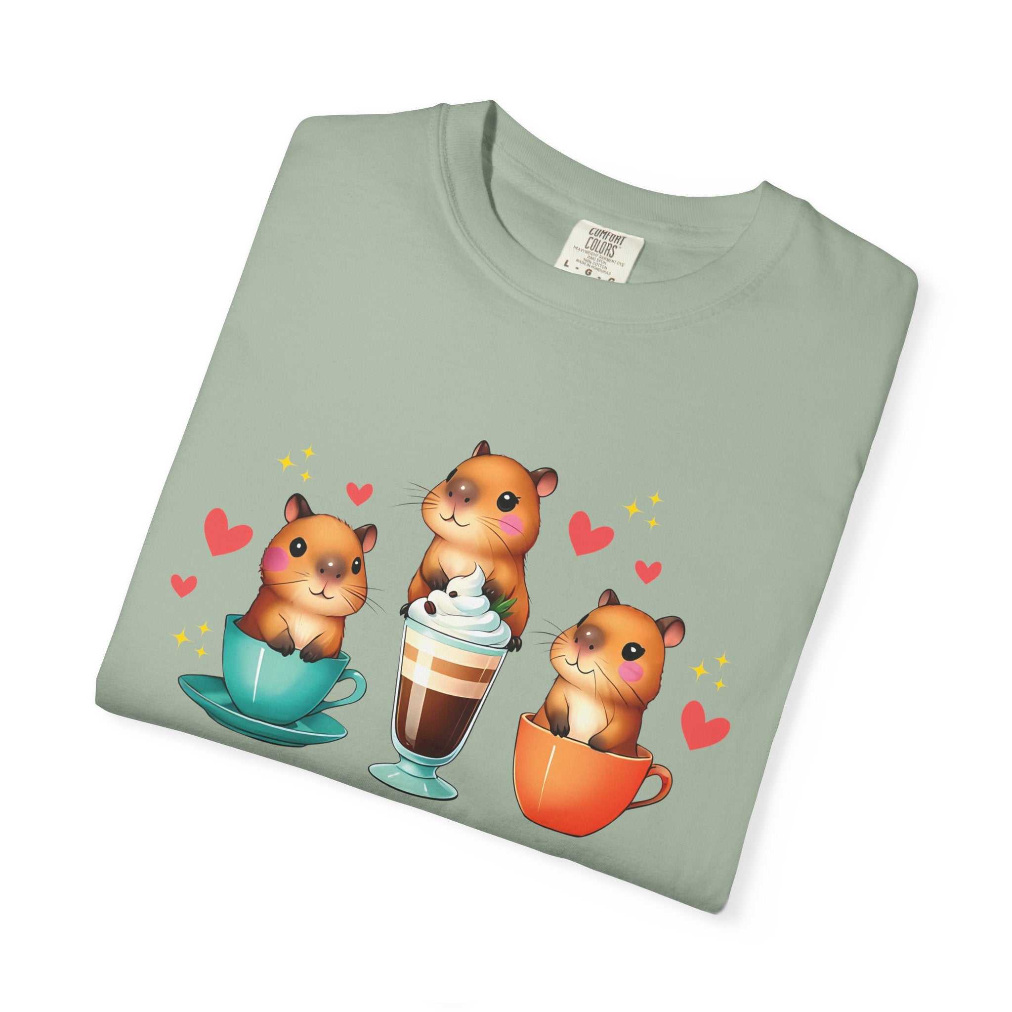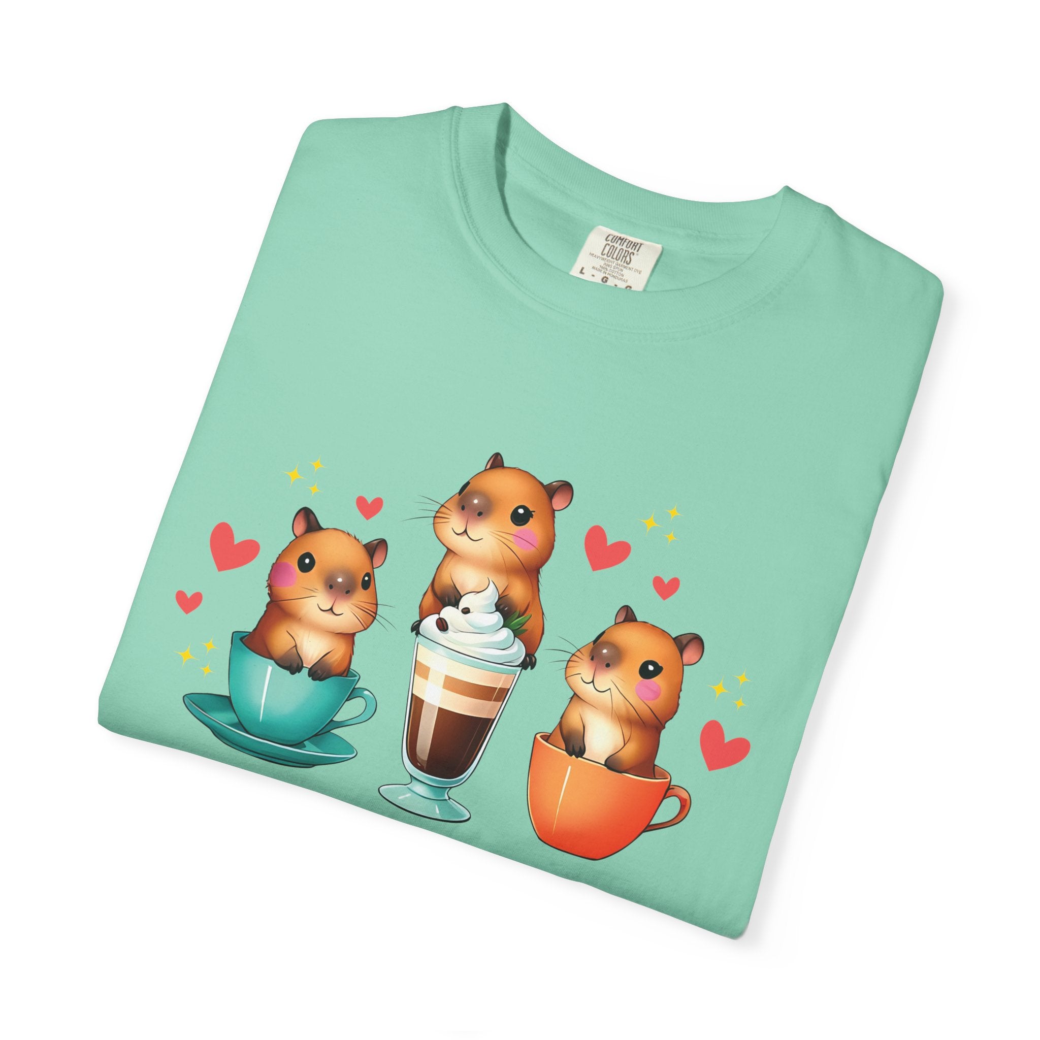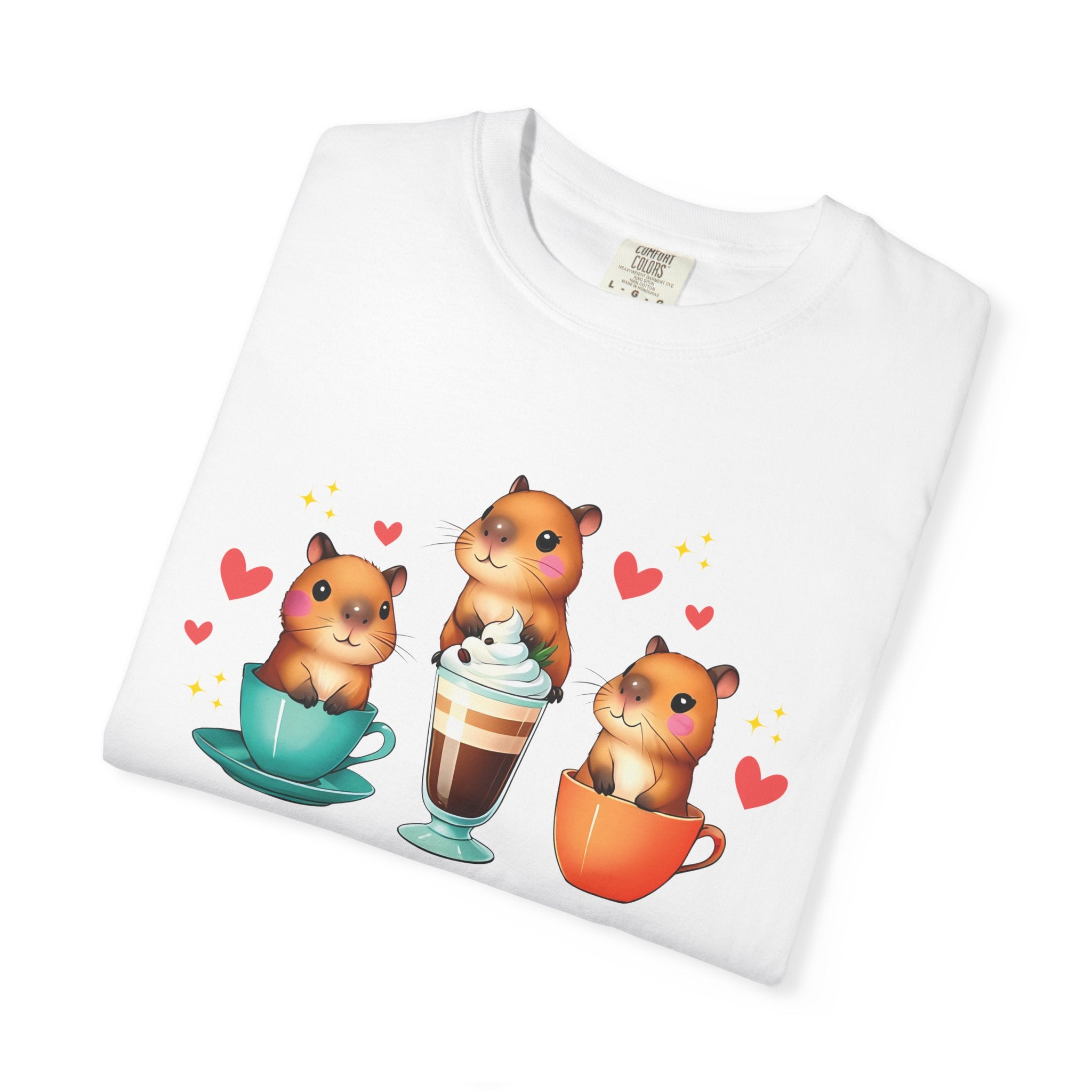 Valentine Cute Capybara Cappuccino of Unisex Garment-Dyed T-shirt
